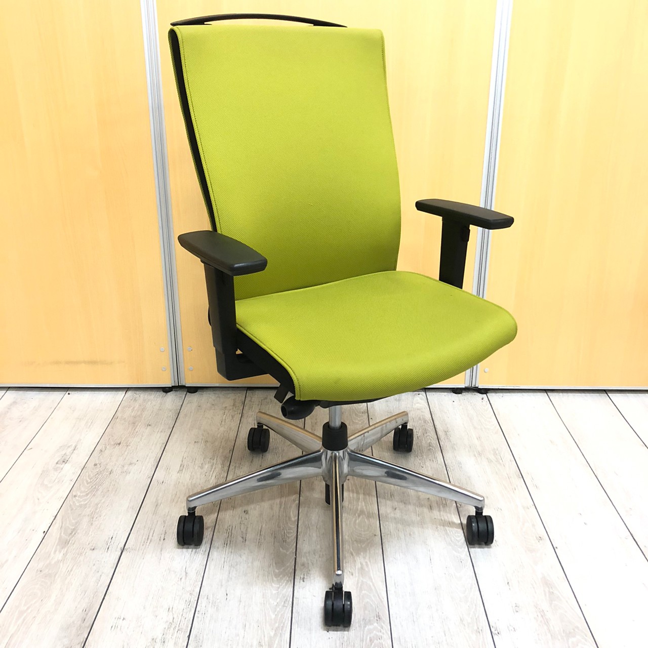 【Y】【最適な圧力で腰にフィット!】■コクヨ製 プントチェア 可動肘付 ライトグリーン ■ワンランク上の快適クッション!サーキュラーバリューCO2削減量の算出について