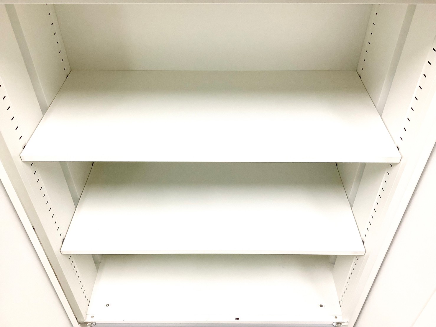 棚の高さは自由に調整できるので、ファイル、書類、備品等々、自由に置くことができます。