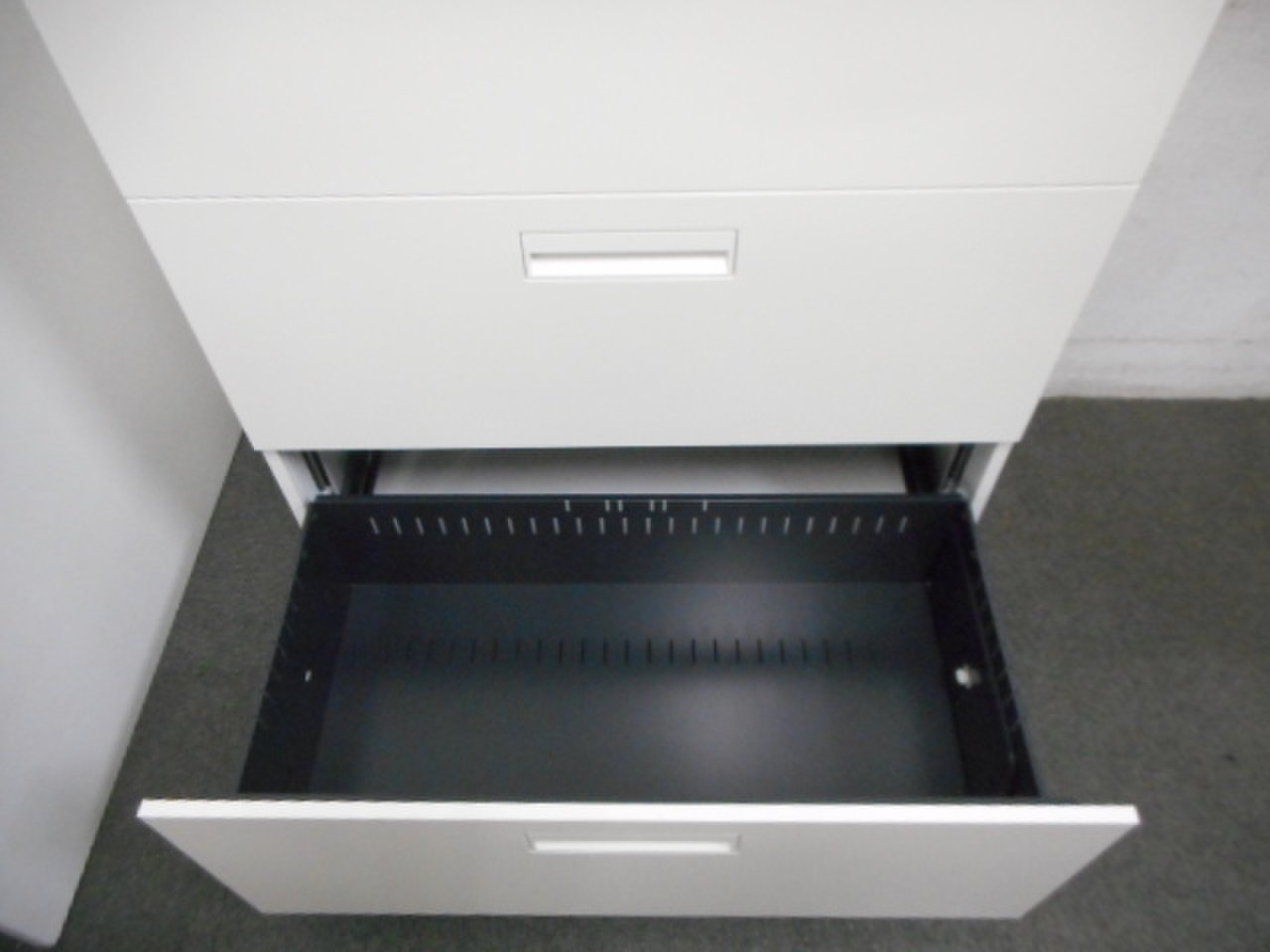 - 一部不具合ありそ引出の開閉不可、施錠不可、棚板無しといったの書庫の本来の効用を果たすための機能以外の一部が使用不可(例、扉、引出の開閉がしづらいなどがある。 )