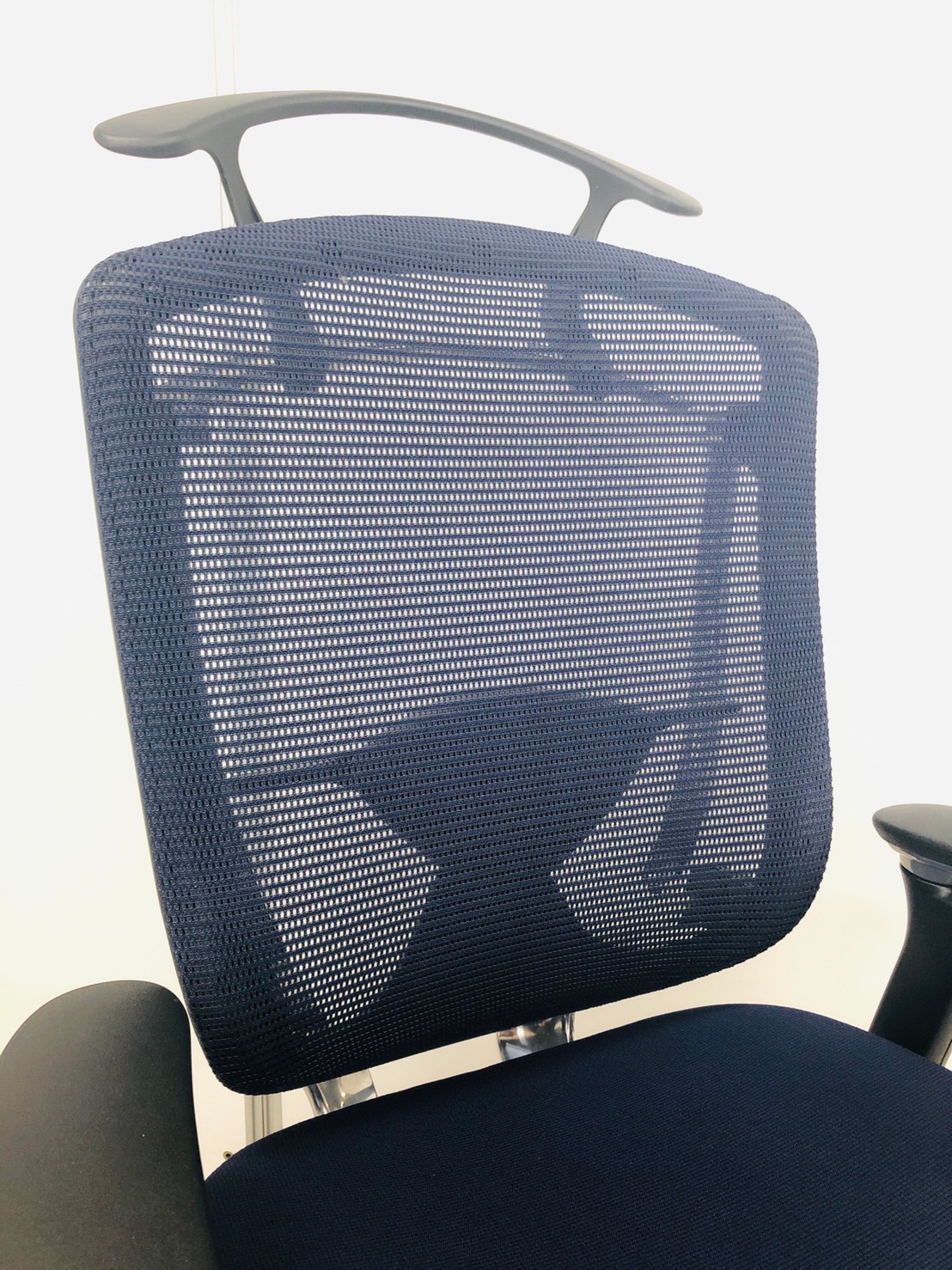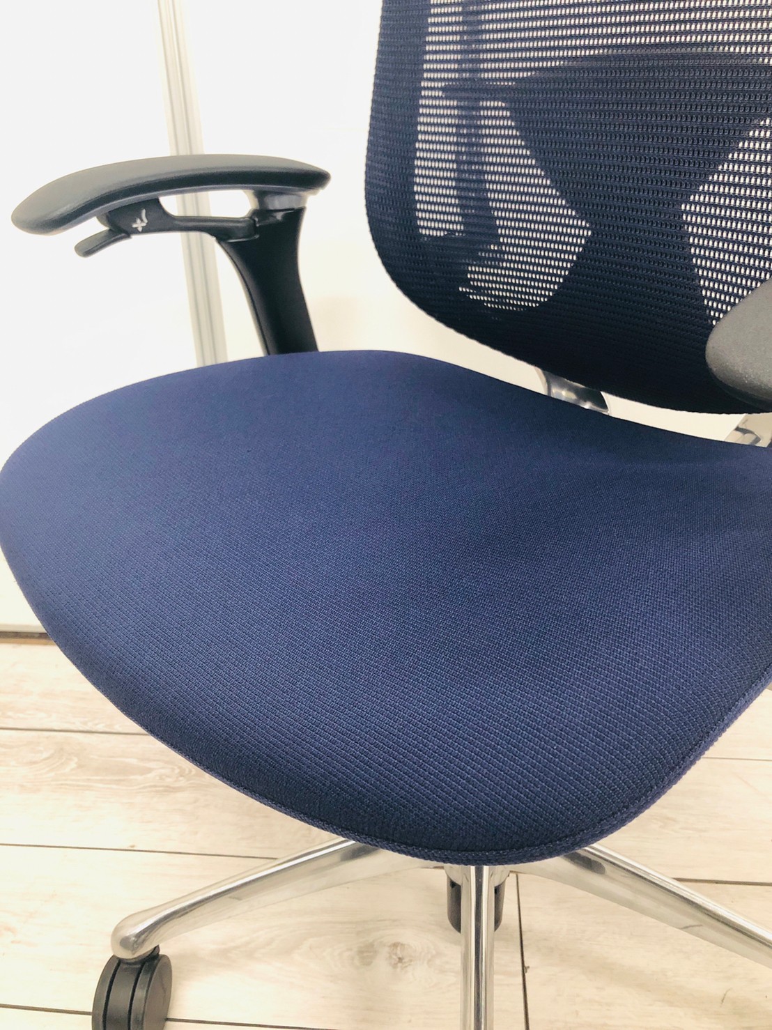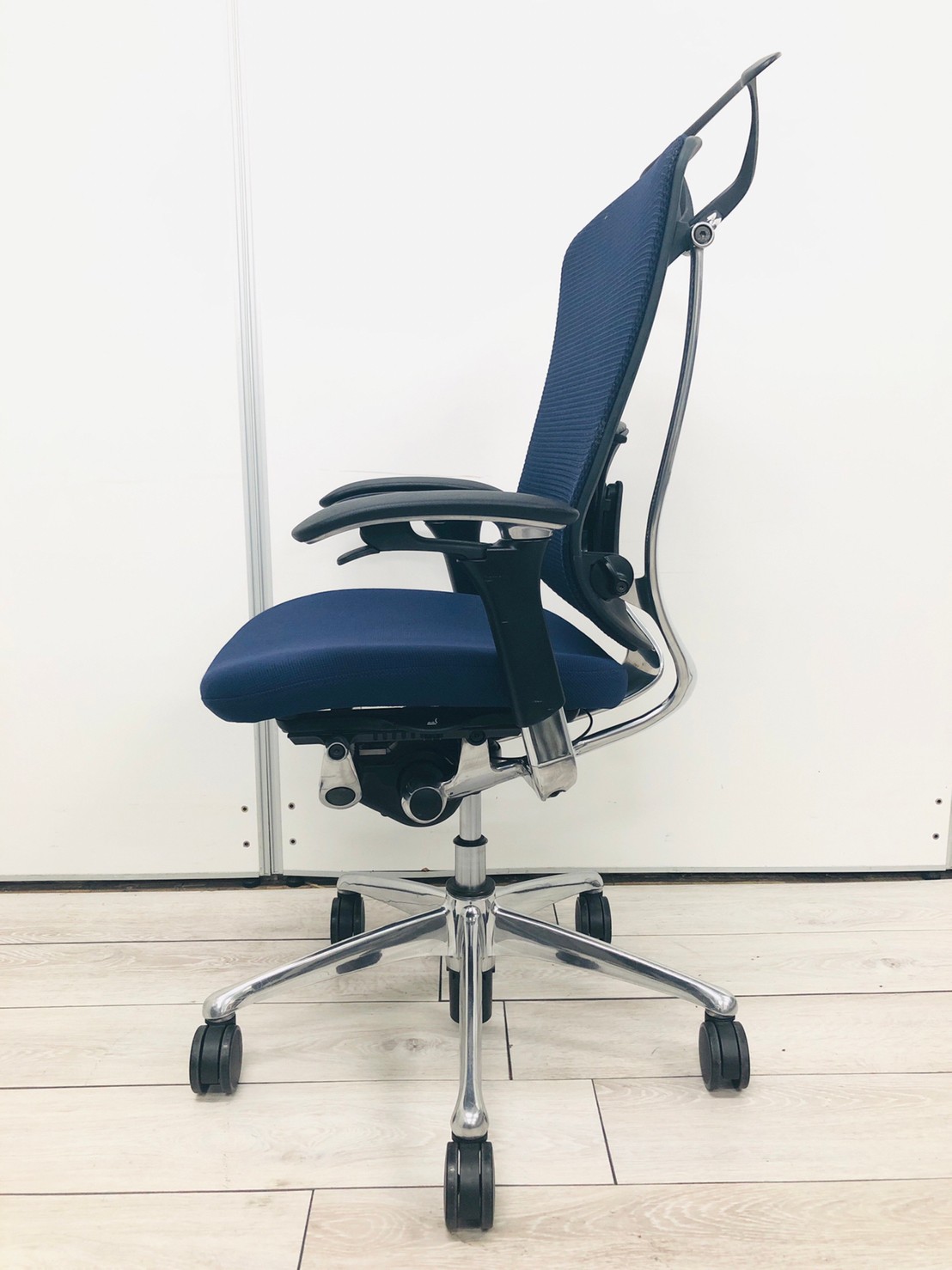 【オカムラ製の最高級チェアが残り1脚限りです!!】オフィスバスターズ 東大阪店 オカムラ製 コンテッサ シリーズ ダークブルー アジャストアーム※可動肘 背/座面メッシュ ランバー 世界で認められた革新的タスクチェア!人間工学に基づいた快適な座り心地を実現! 肘付きハイバックチェア!! 中古 外部倉庫品