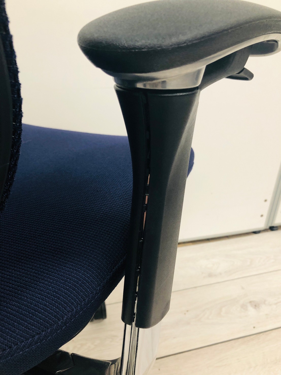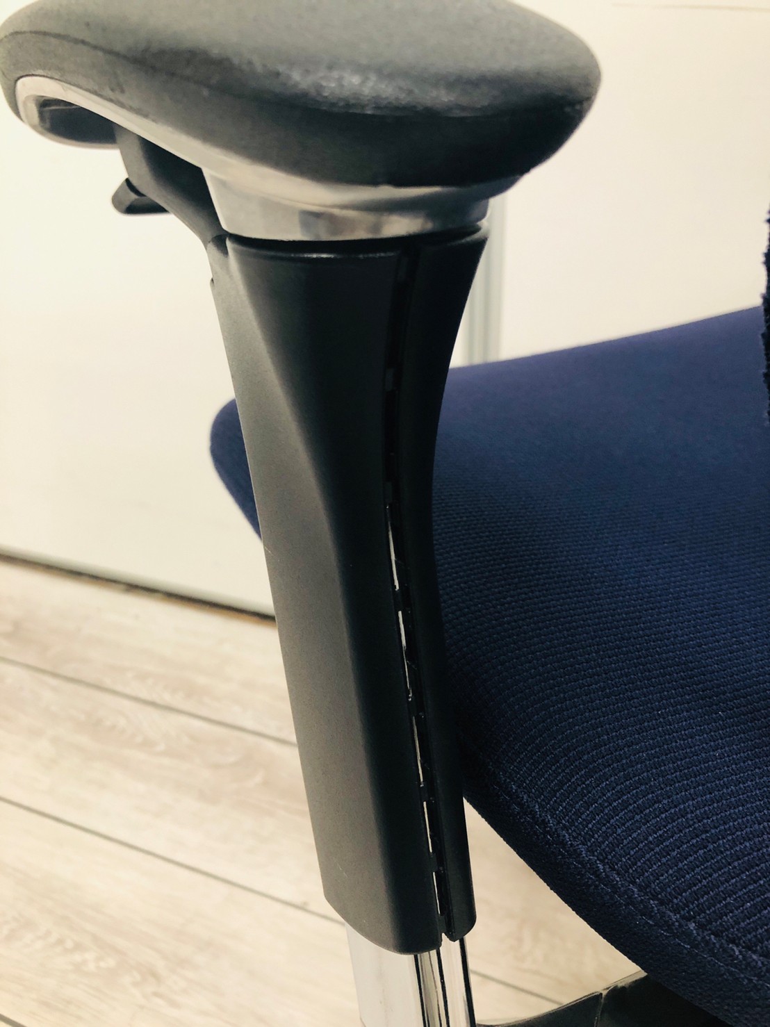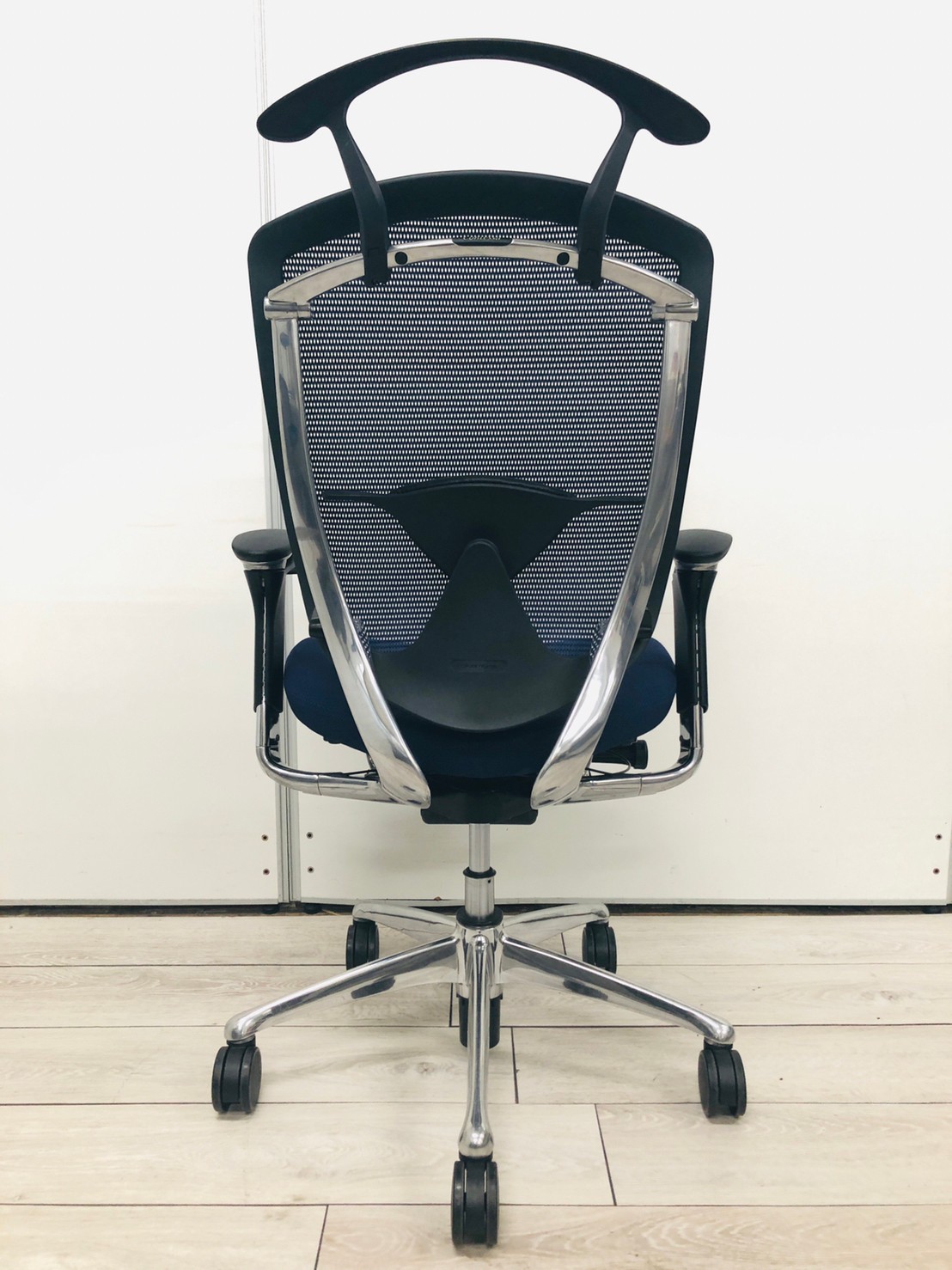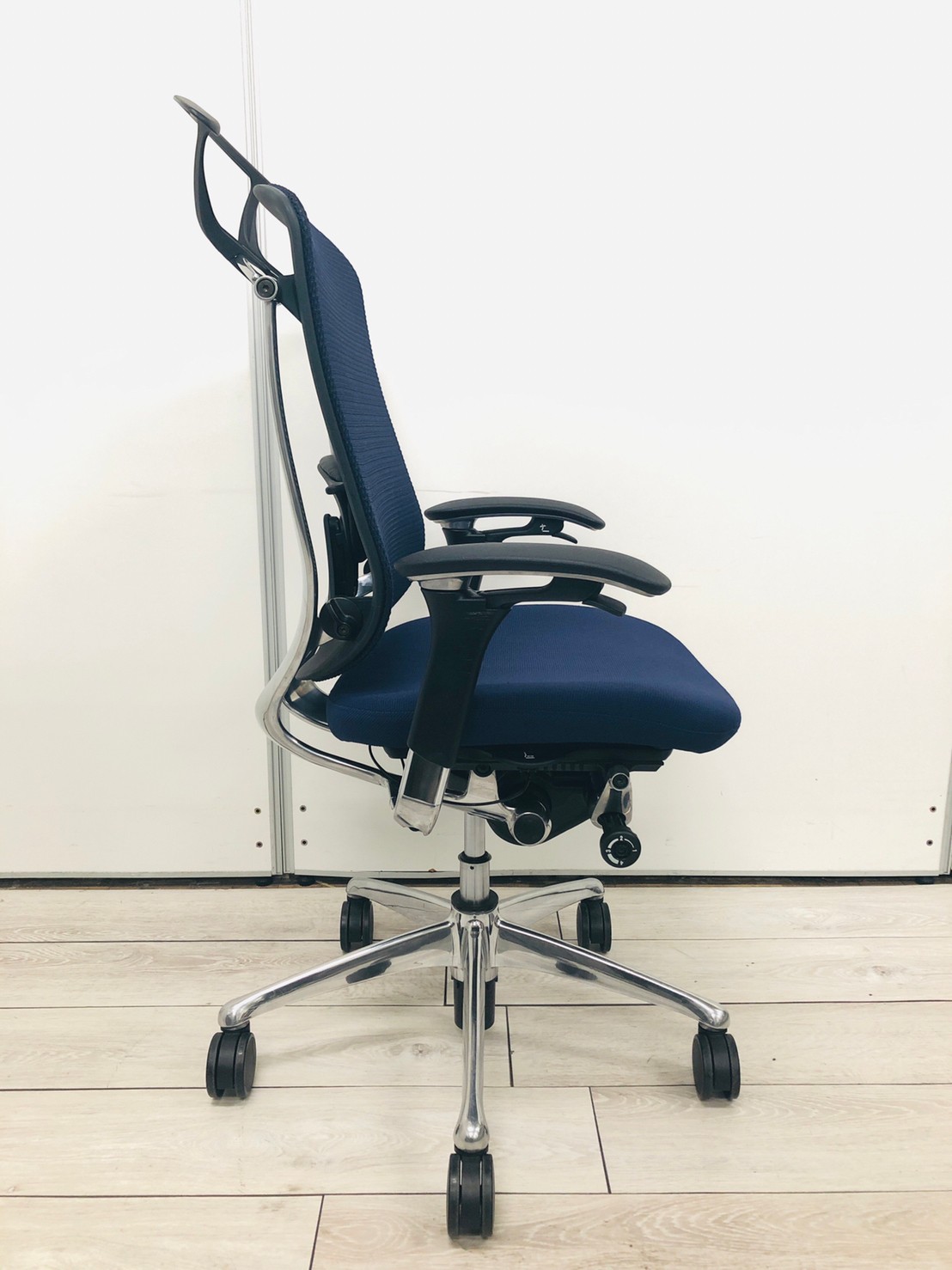 【オカムラ製の最高級チェアが残り1脚限りです!!】オフィスバスターズ 東大阪店 オカムラ製 コンテッサ シリーズ ダークブルー アジャストアーム※可動肘 背/座面メッシュ ランバー 世界で認められた革新的タスクチェア!人間工学に基づいた快適な座り心地を実現! 肘付きハイバックチェア!! 中古 外部倉庫品
