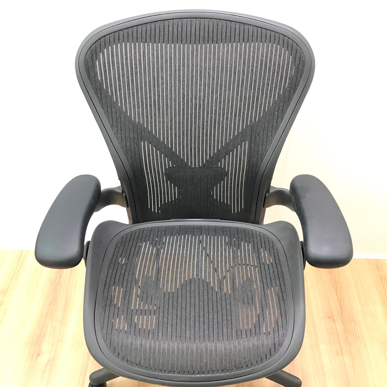 【★状態イマイチのためお安く!】■ハーマンミラー製 アーロンチェア Bサイズ 固定肘 ※キズあり・ランバーサポート無・昇降ガス圧弱めのためお安く!【訳あり特価品】