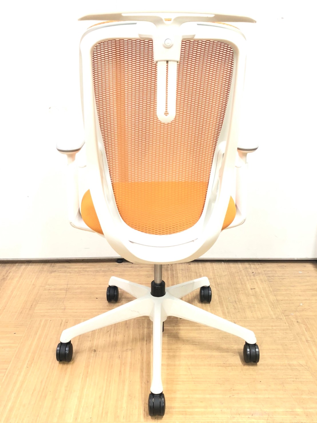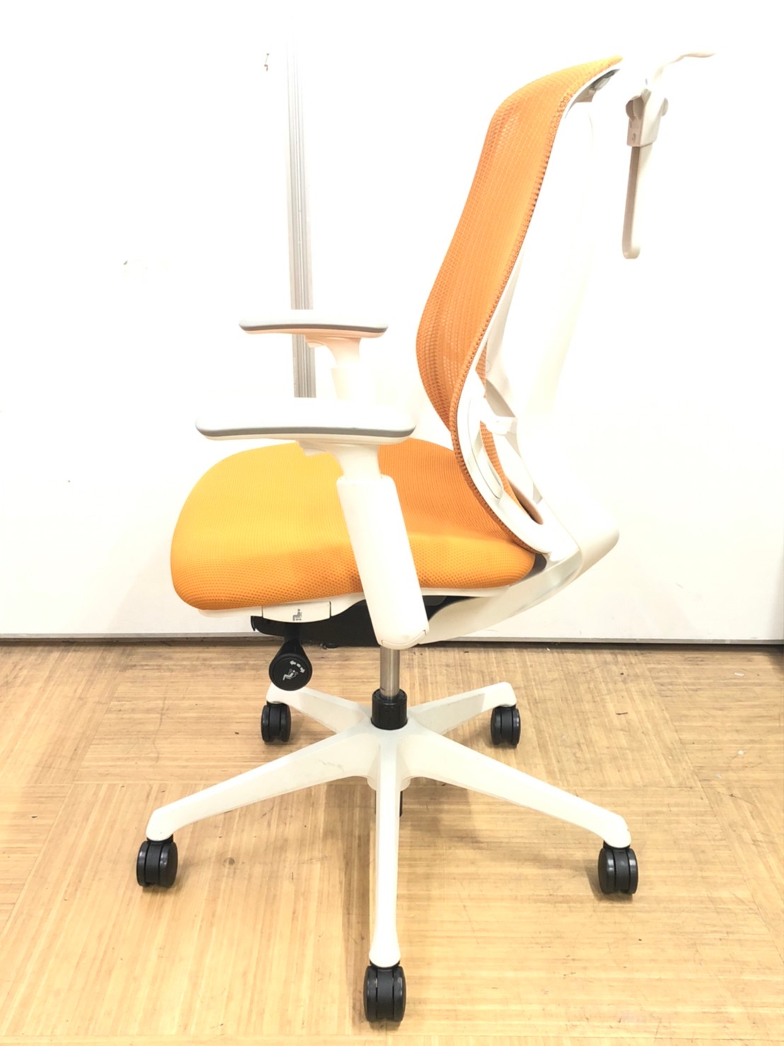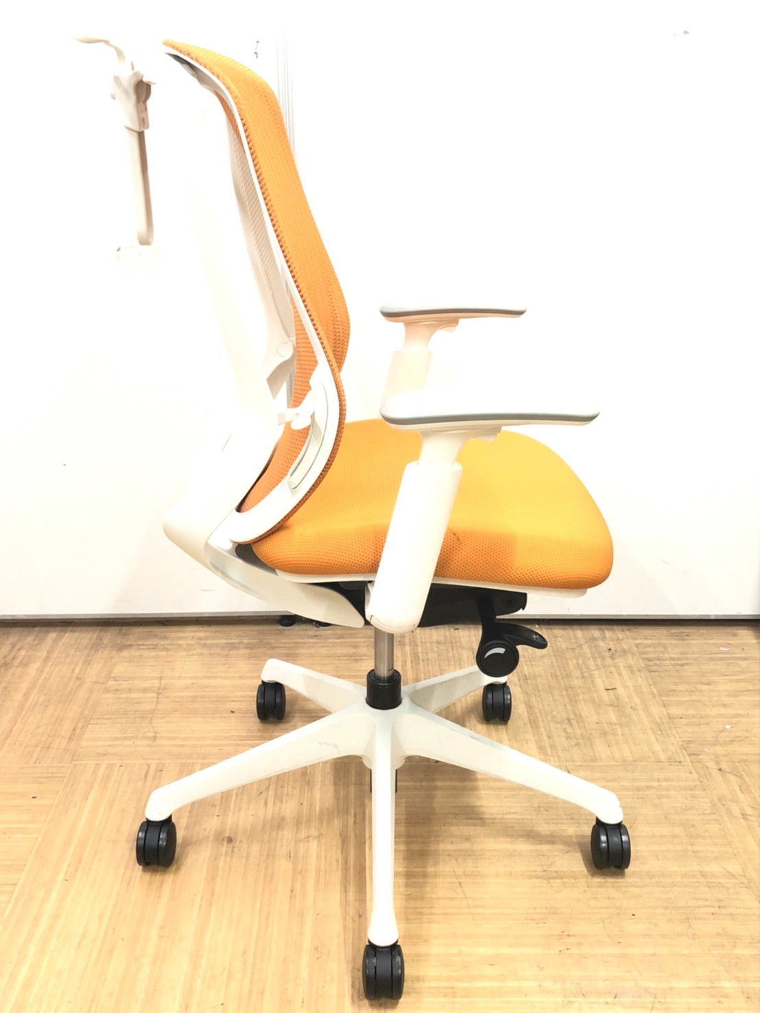 【在庫入替セール品!】【背のカーブを変えられる新感覚のオフィスシーティング!】■オカムラ シルフィーチェア 可動肘付 オレンジ ハンガー付 ホワイトフレーム ■新感覚のオフィスシーティング!【Okamrua Sylphy】