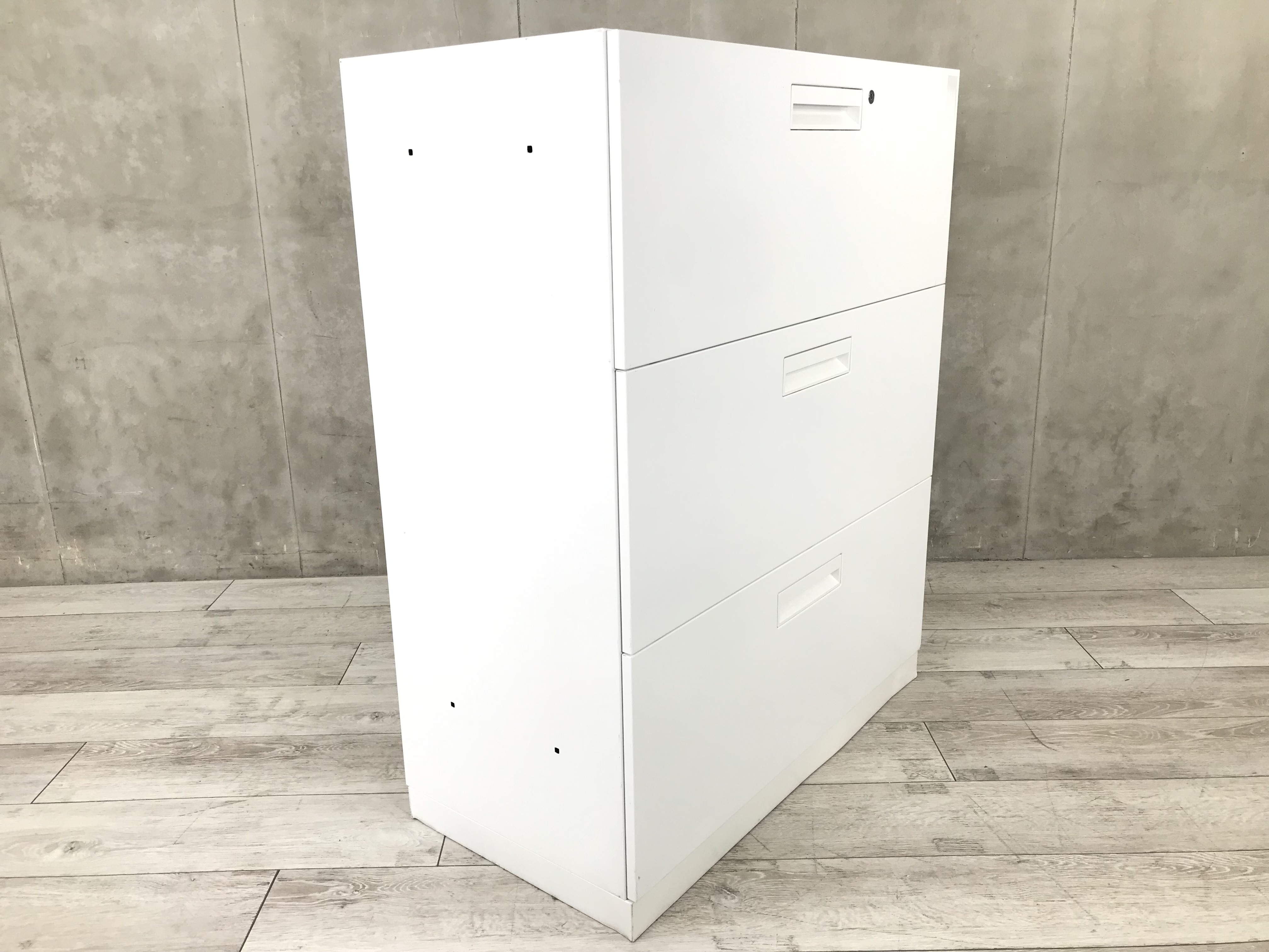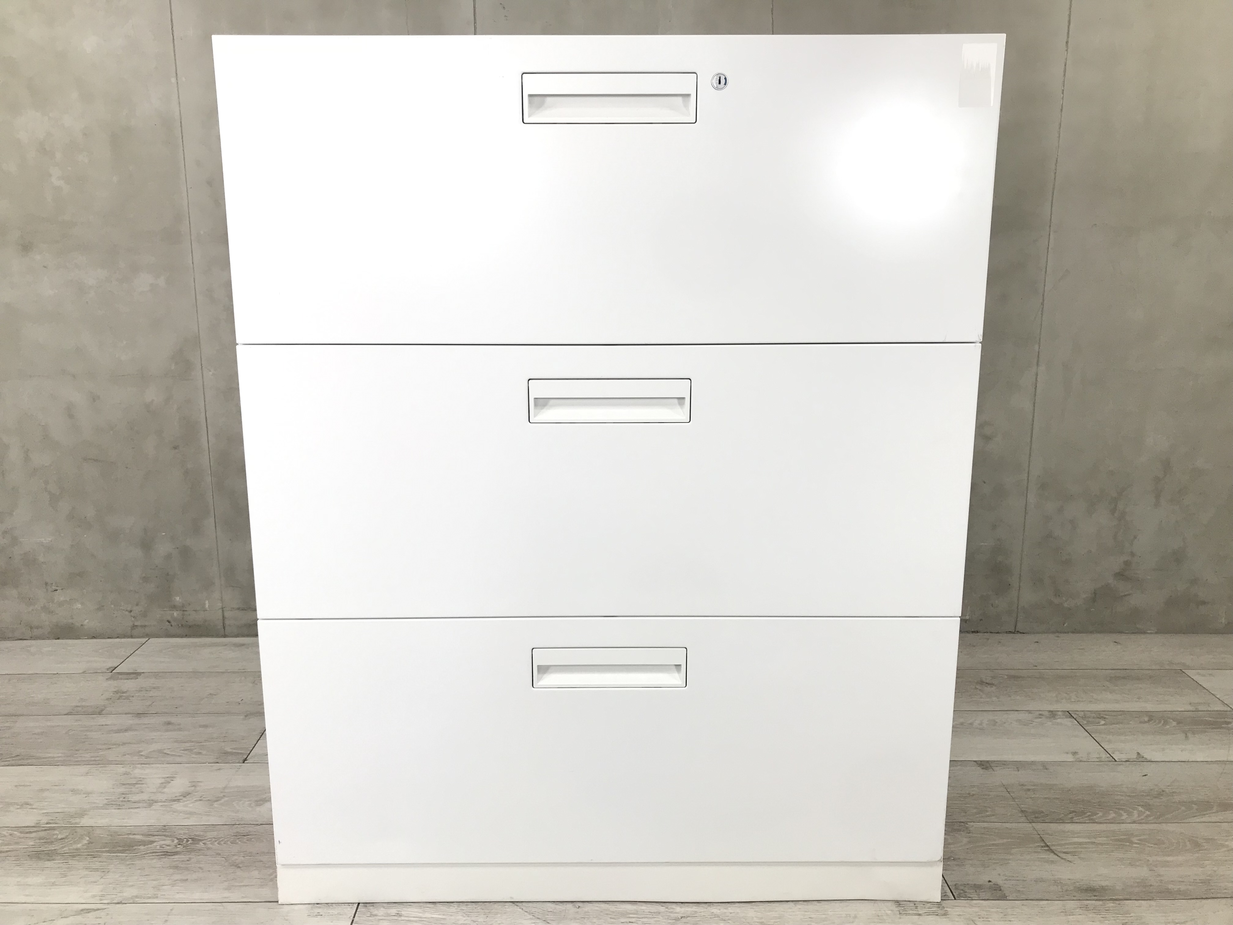 【2020年製】【収納力抜群の3段ラテラル書庫!A4書類が大量に収納可能!】■コクヨ(KOKUYO)製 エディア(EDIA)シリーズ 3段ラテラル ローキャビネット H1130㎜ ■天板・ベース付き ■ホワイト ■シリンダー錠【2511】弊社使用欄【A01044970】