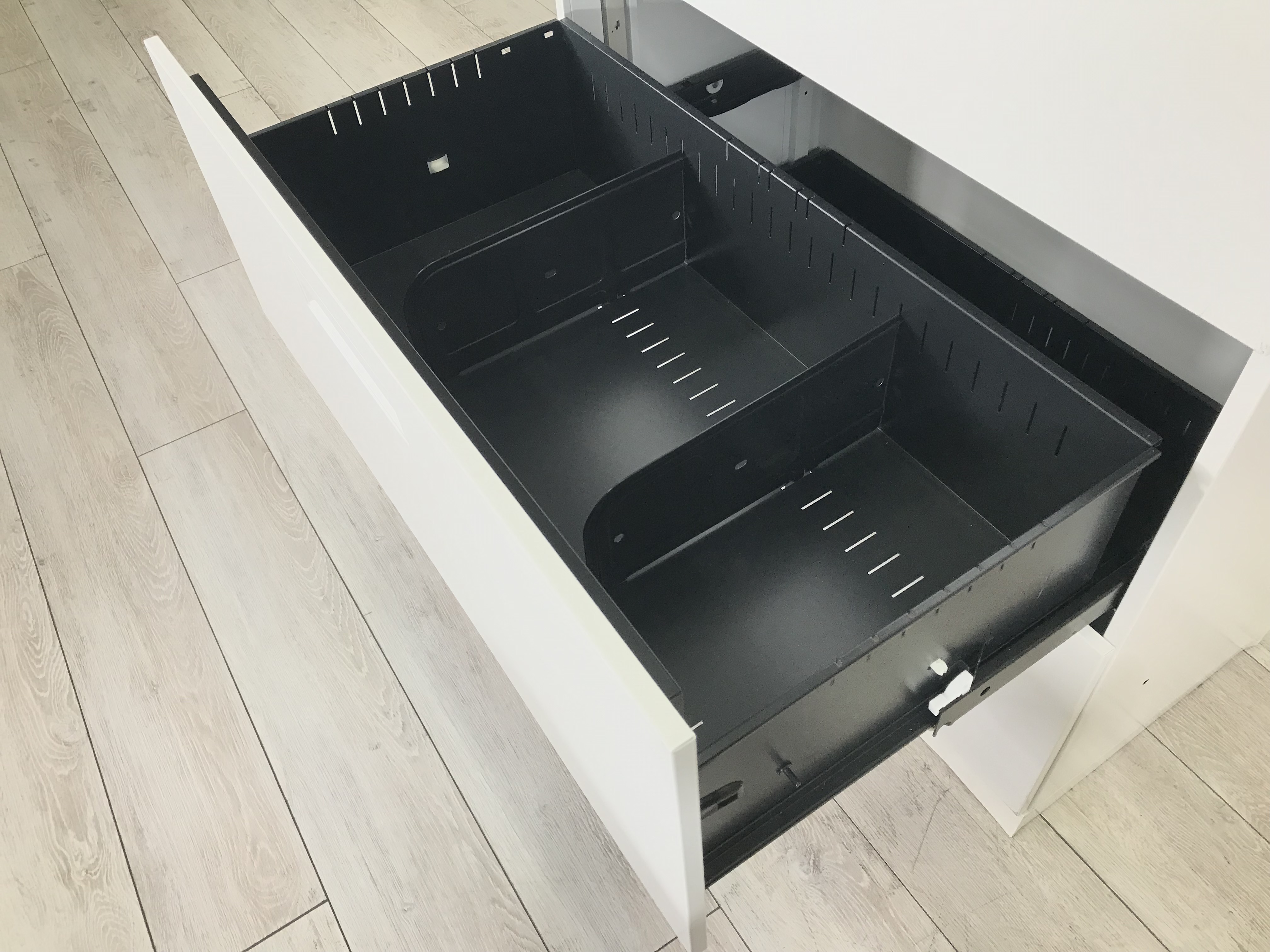 - 両開きタイプは扉が180度開き、通路の邪魔になりません。ラテラルタイプは引出しが限界まで出せ、出し入れ楽々。