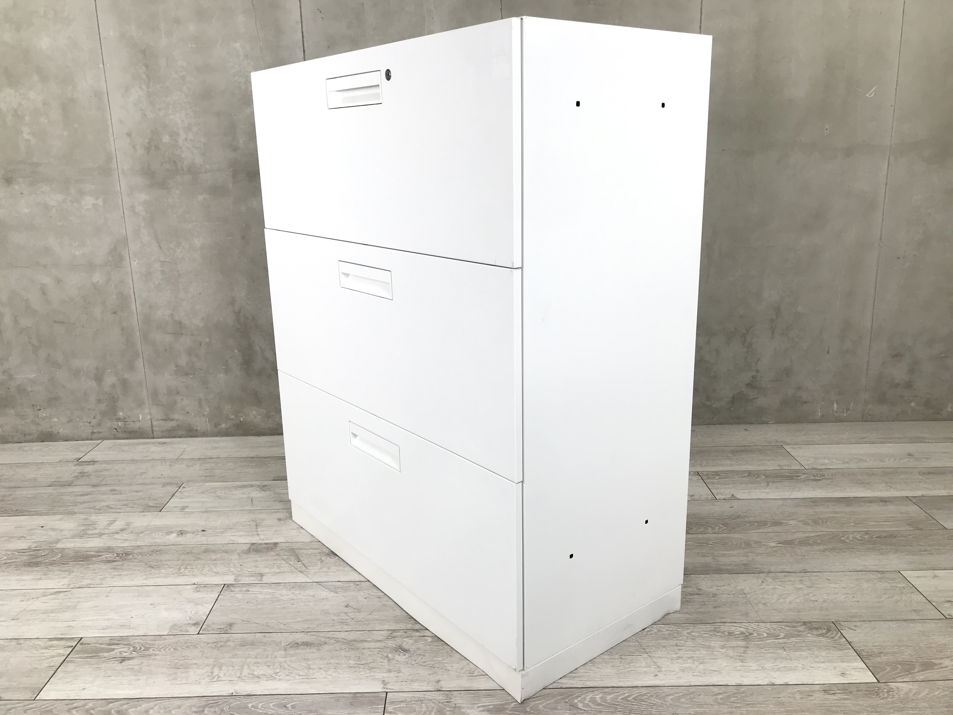 【4台入荷】【収納力抜群の3段ラテラル書庫!A4書類が大量に収納可能!】■コクヨ(KOKUYO)製 エディア(EDIA)シリーズ 3段ラテラル ローキャビネット ■天板/ベース付き ■ホワイト ■シリンダー錠