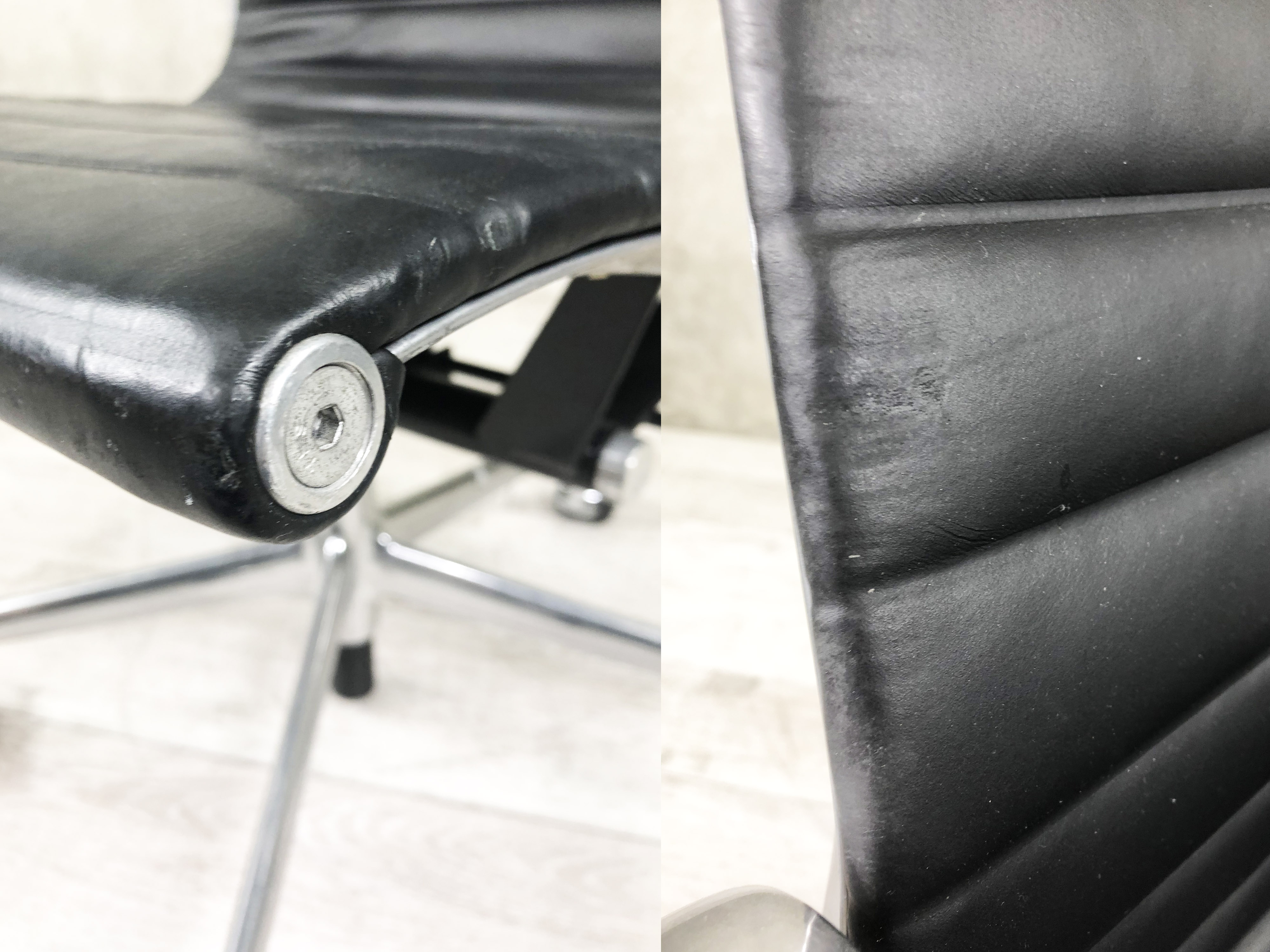 - 目立つ箇所あり傷・破れ・ほつれ・へたり・しわが多数または深い傷・破れ・ほつれ・へたり・しわが一部ある。※座面・背もたれ、シェル、脚部等にある。