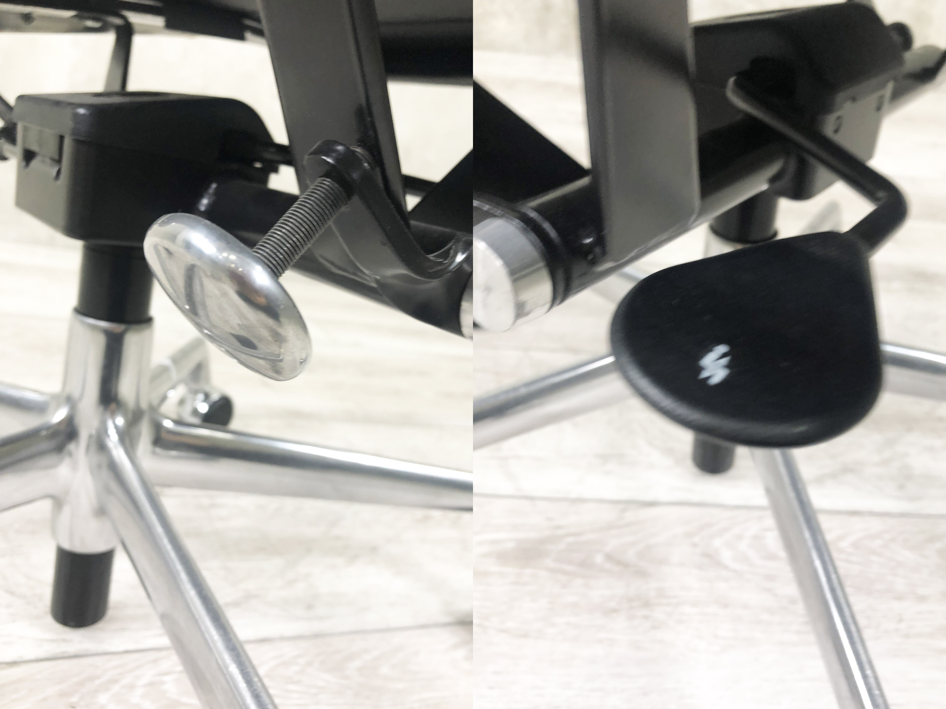 機能面でも現代のチェアに引けを取らず、ガス圧による高さ調整・リクライニング強弱機能もあり快適にご使用できます。