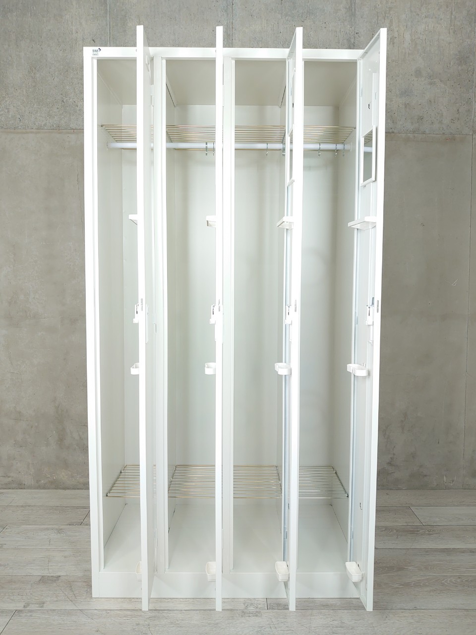 1段タイプでは最大サイズ(人数)の4人用スチールロッカーに、