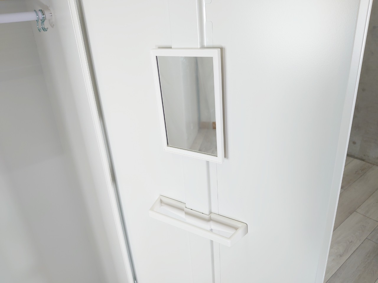 ハンガーパイプ、鏡、ネクタイかけ、傘立てと、