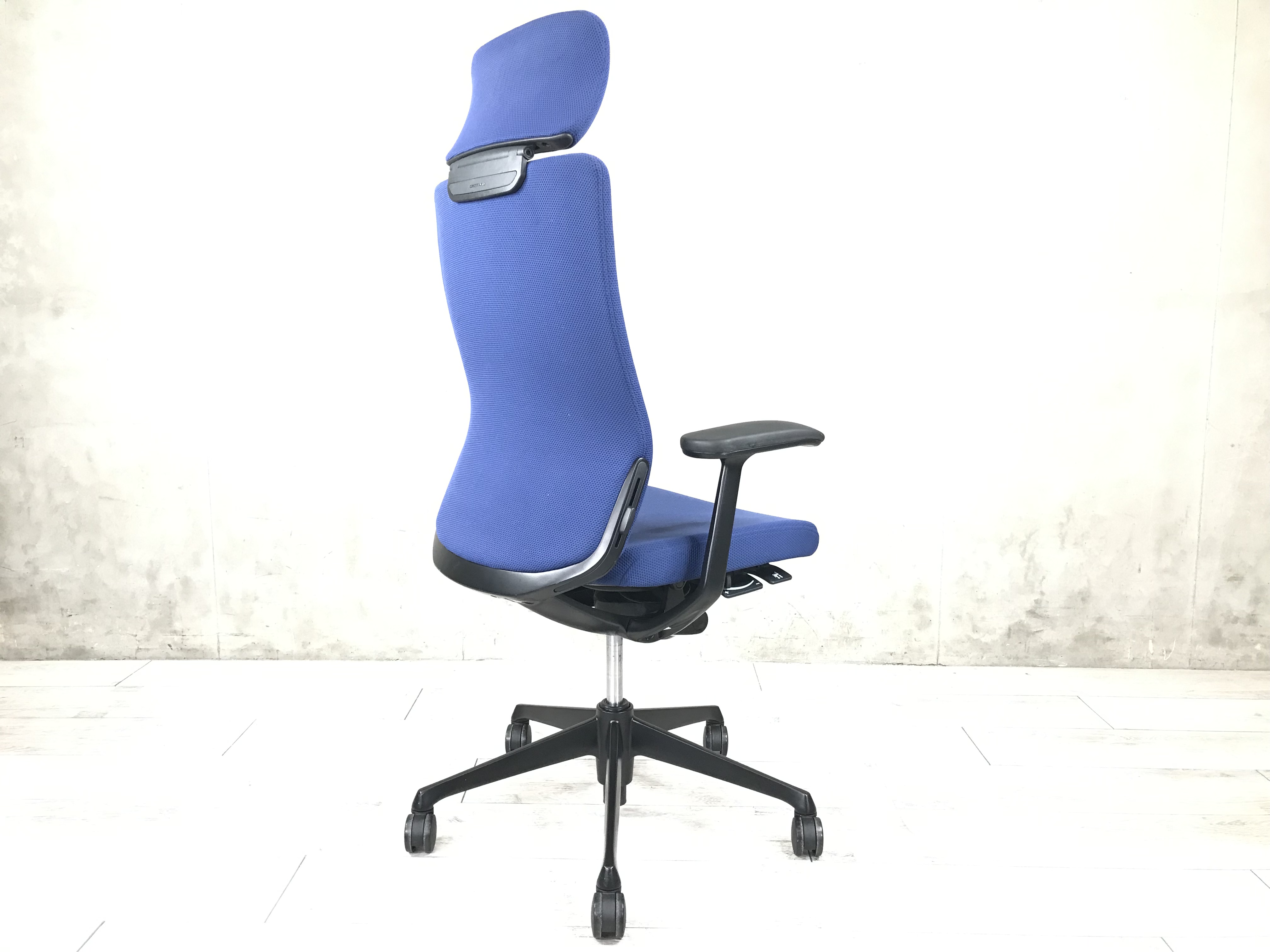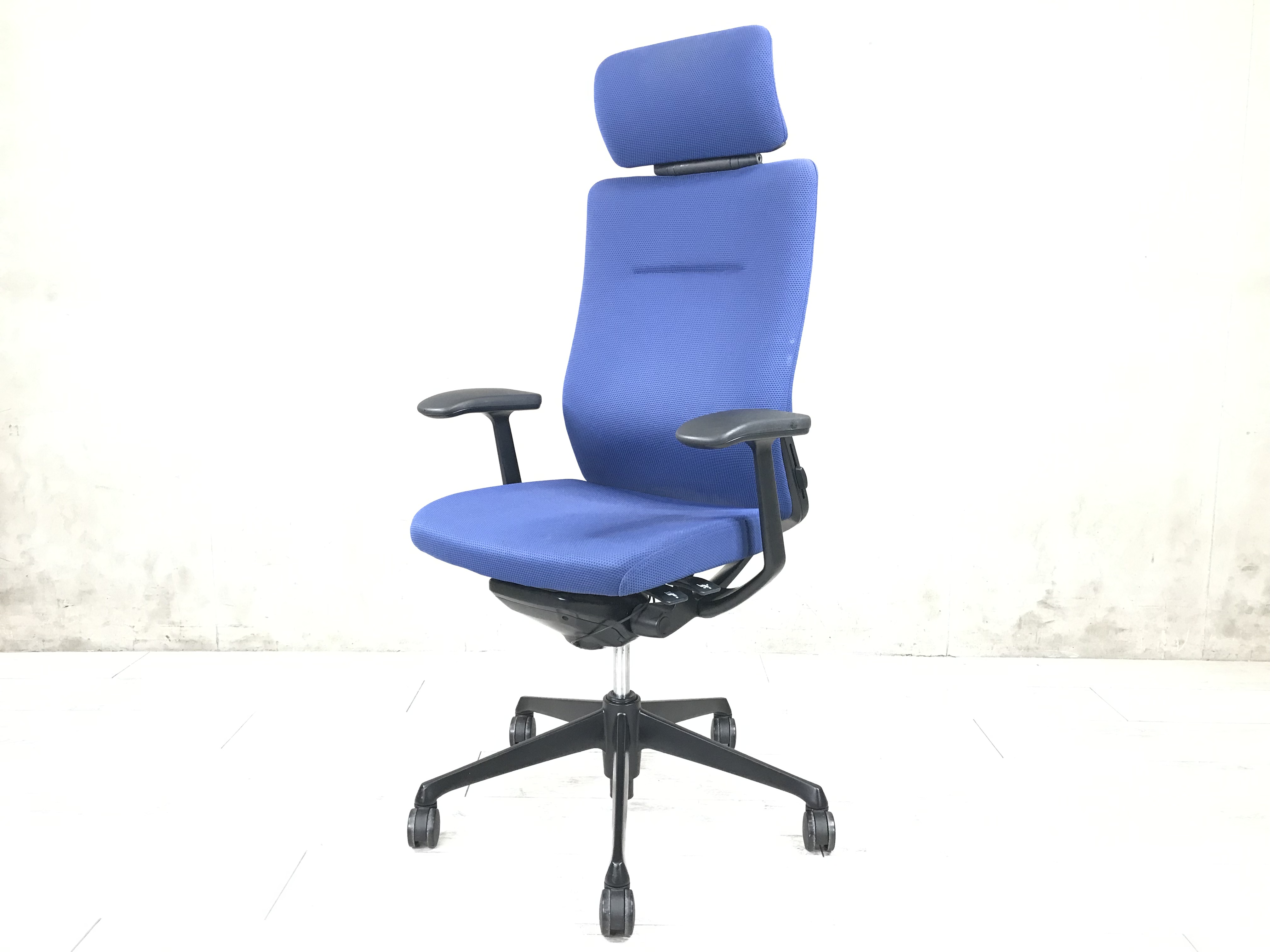 【関東倉庫在庫品】【機能性抜群の人気チェア!自然な姿勢をサポートするアンクルチルトリクライニング搭載!】■オカムラ製 コーラル 肘付ハイバックチェア ■ブルー 【弊社使用欄:A00991827】【ECBMC】
