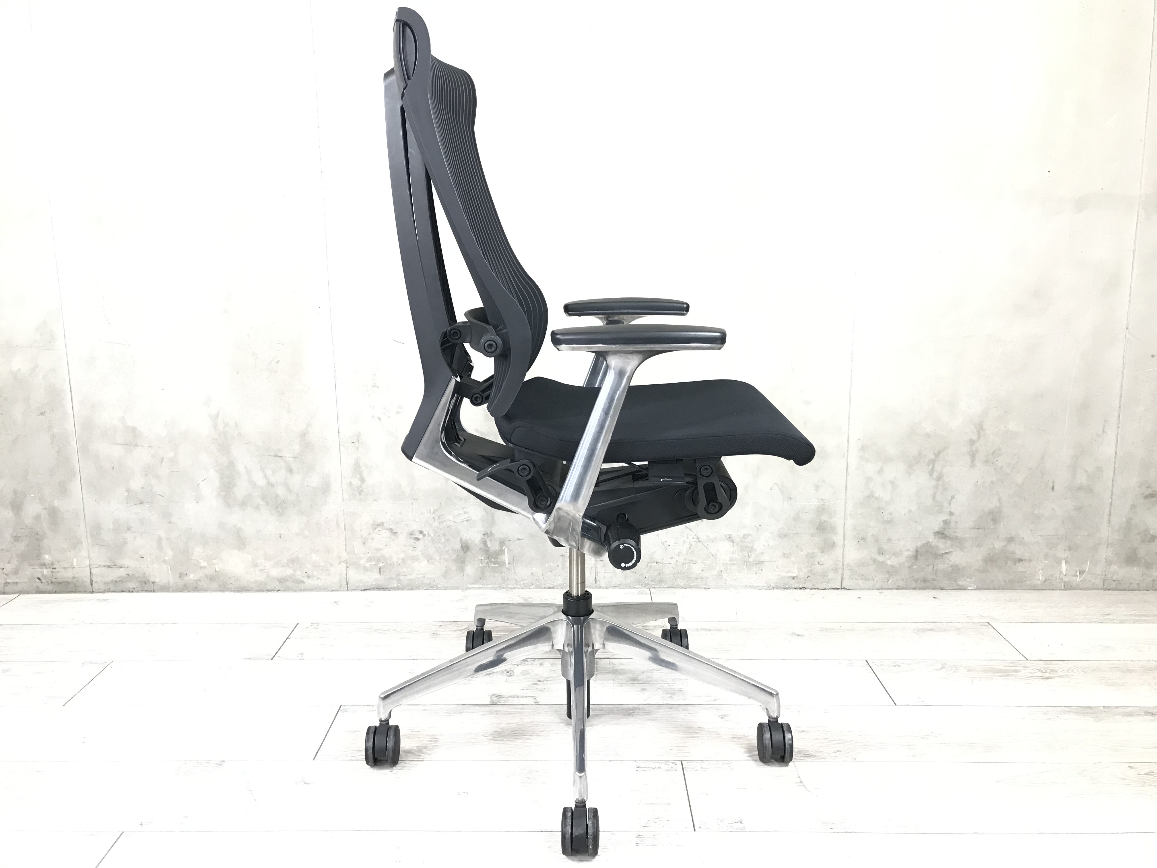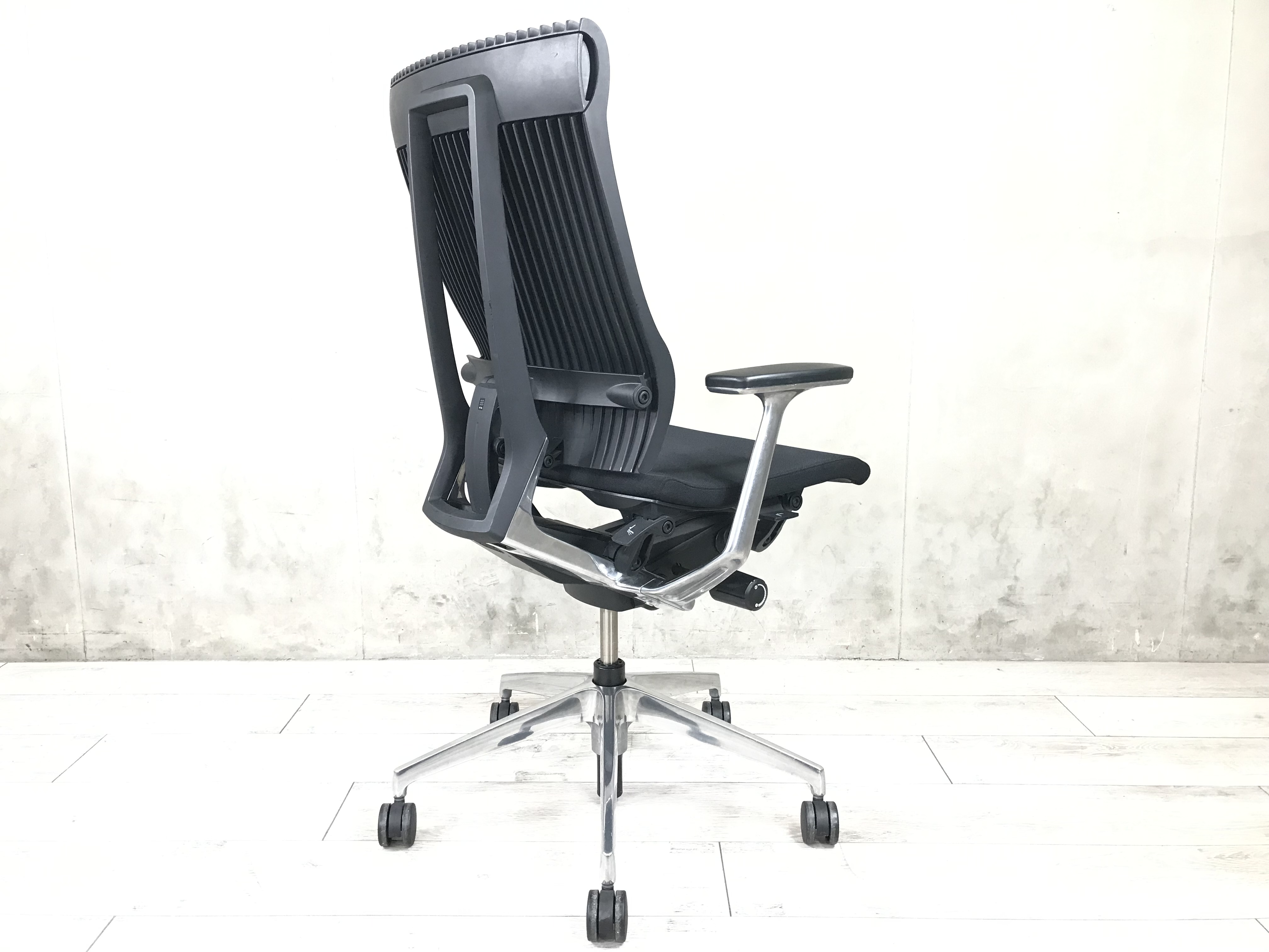 一番の特長は、着座時にチェアがピタっと体にフィットしてくれることです。 人がチェアの座り心地を調節するのではなく、チェアが人に合わせて動くのです!着座時に座面が沈み込みながら後方へスライドし、それと同時に背もたれの腰部分が前にせり出し、「ずっと座っていたくなる」と言われるほどの座り心地に調節してくれます。それを実現しているのが、A.L.S(アクティブ・ランバー・サポート)機構とP.S.S(パッシブ・スライド・シート)機構です。 さらに、背もたれにかかる体圧を徹底的に分析して作られた絶妙なカーブが、常に腰をサポートしつつ背骨のラインに沿ってくれます。