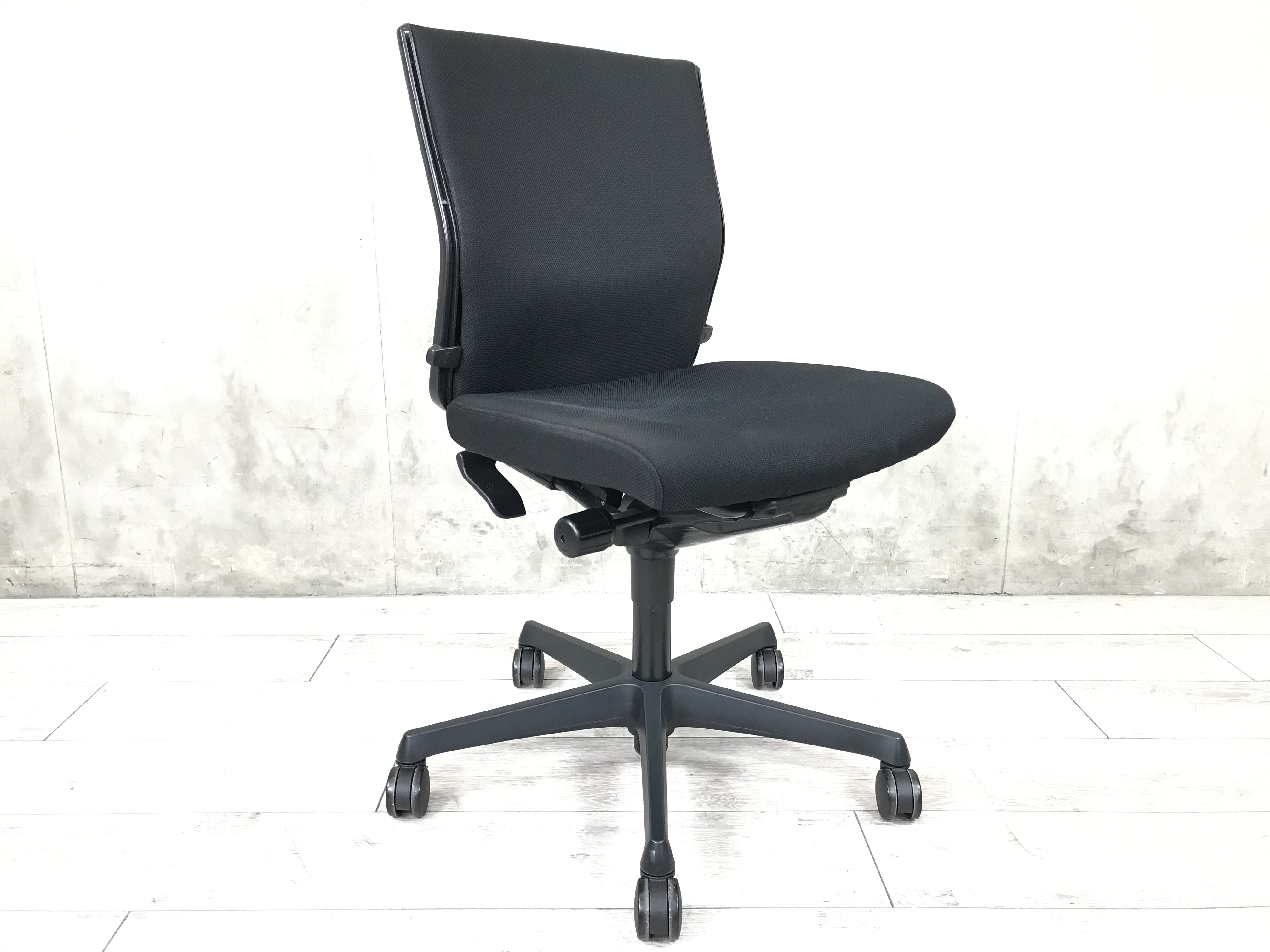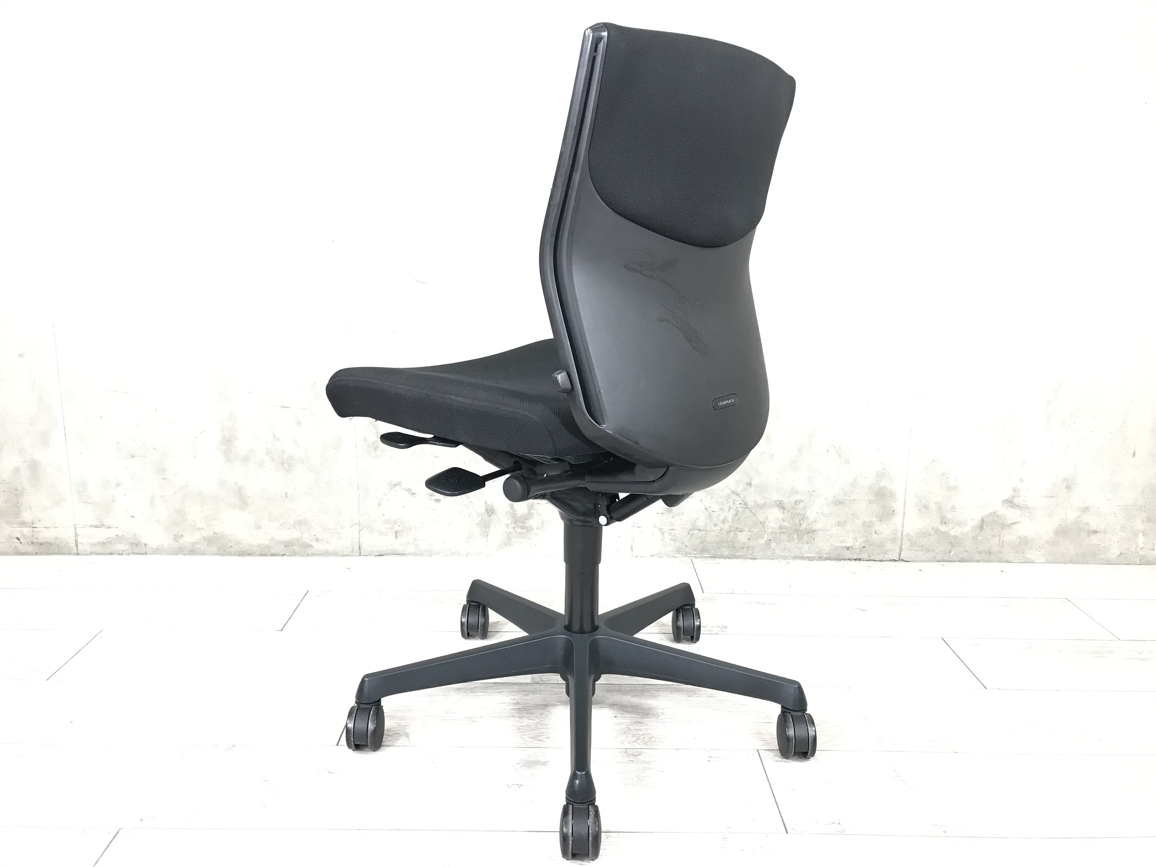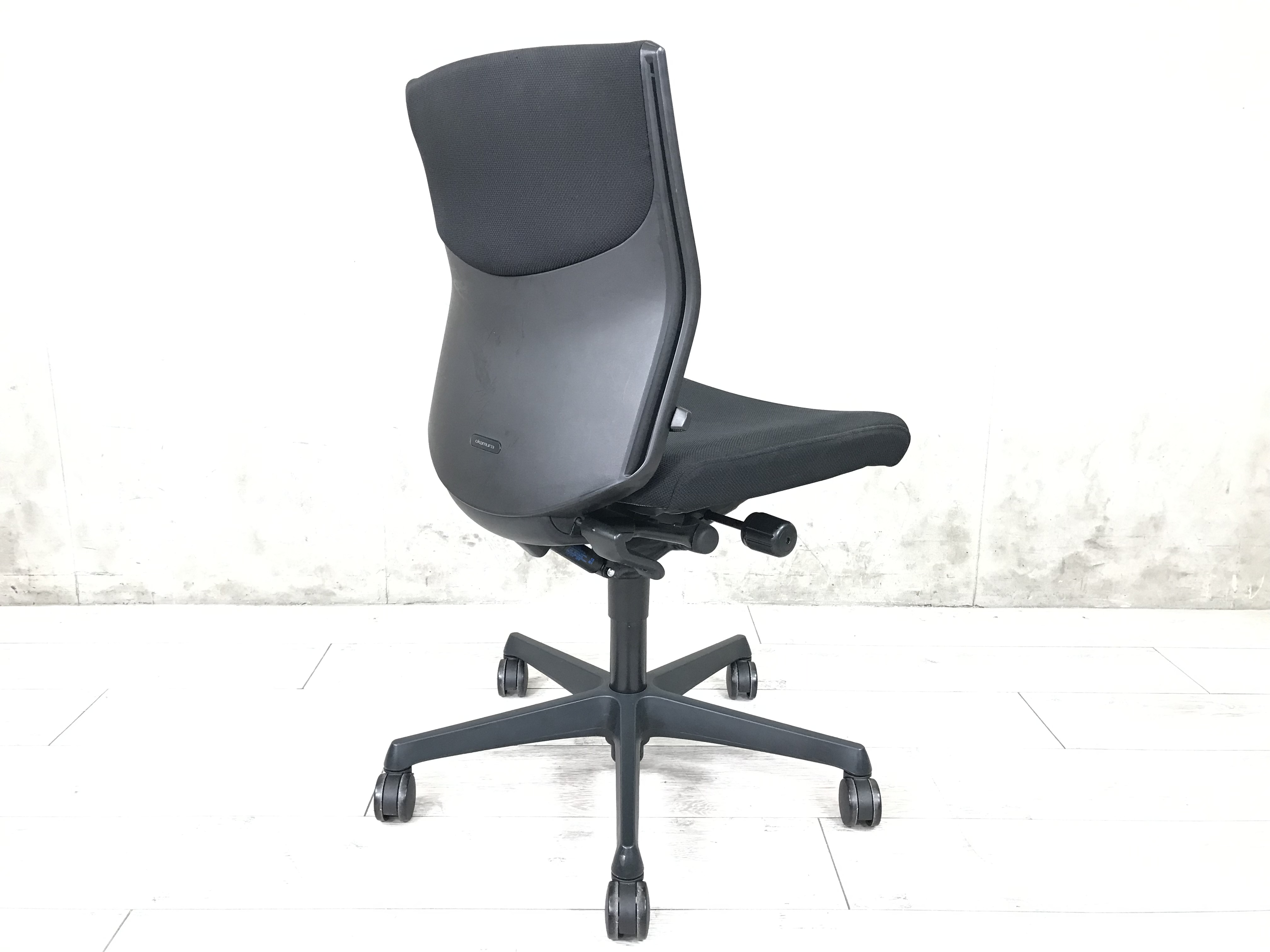 【デスクワークに最適!】肘なしの為オフィスの執務室や事務所におすすめです! オカムラ/エスクード/ブラック/肘なしオフィスチェア- つくば店