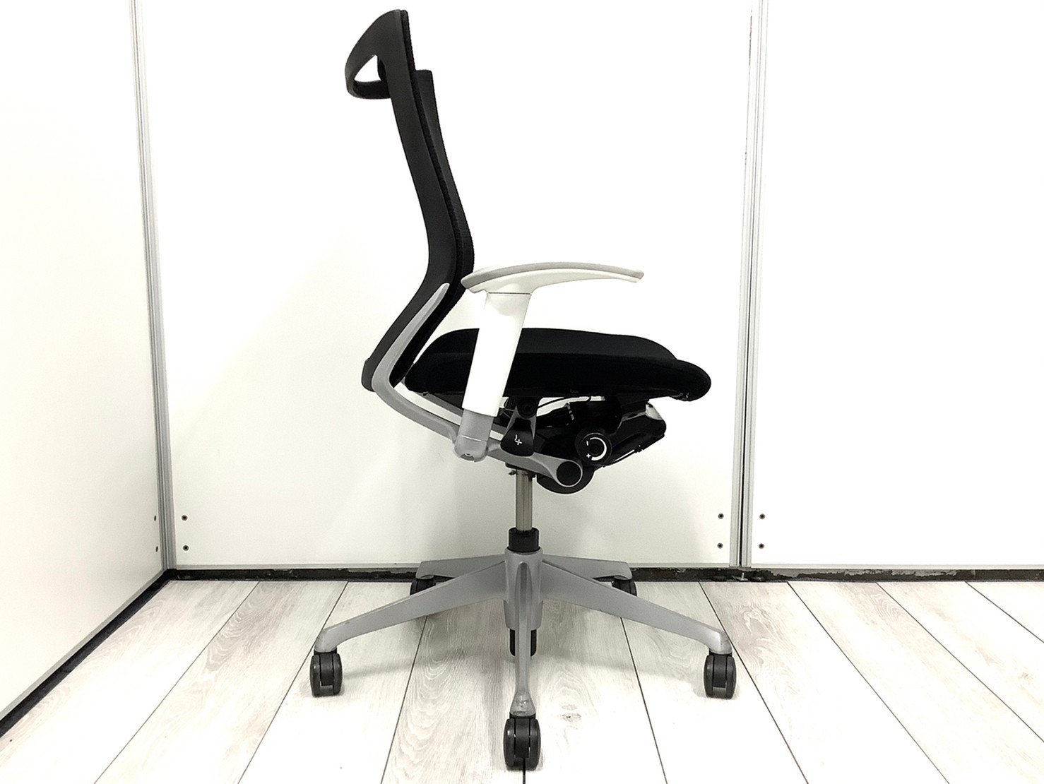 【KS】肘パッド割れアリ■オカムラ製 バロンチェア 可動肘付 ブラック ホワイトフレーム ■先進のエルゴノミクスチェア!【在庫入替】松- 茨城南店