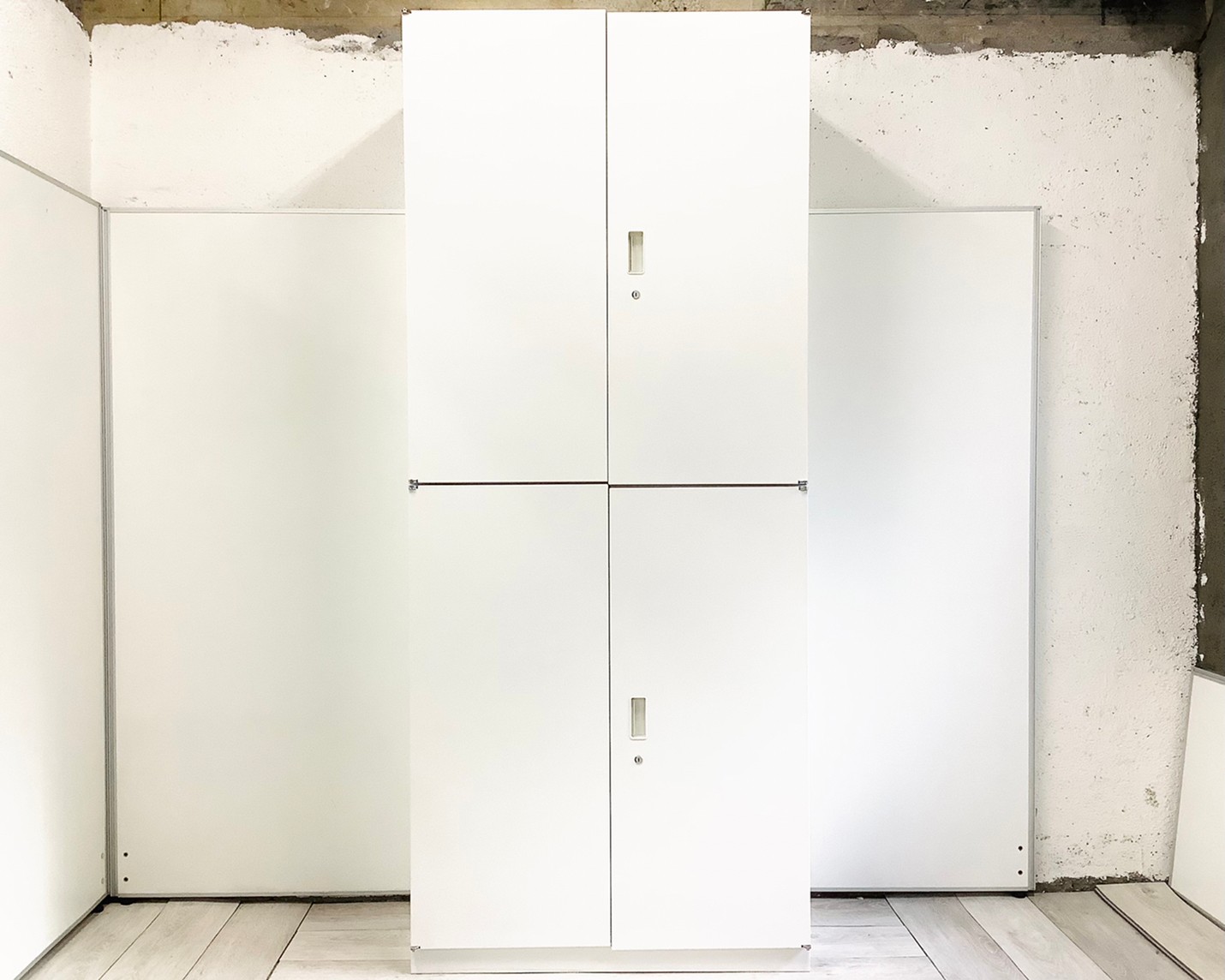 【5セット限定】【A4が6段分収納可能!搬入時は上下別の2個口での納品となるためエレベーター搬入も安心!】■イトーキ(ITOKI)製 シンライン 両開き+両開き 書庫セット ■シリンダー錠 ■色:ホワイト オフィスバスターズ 心斎橋店