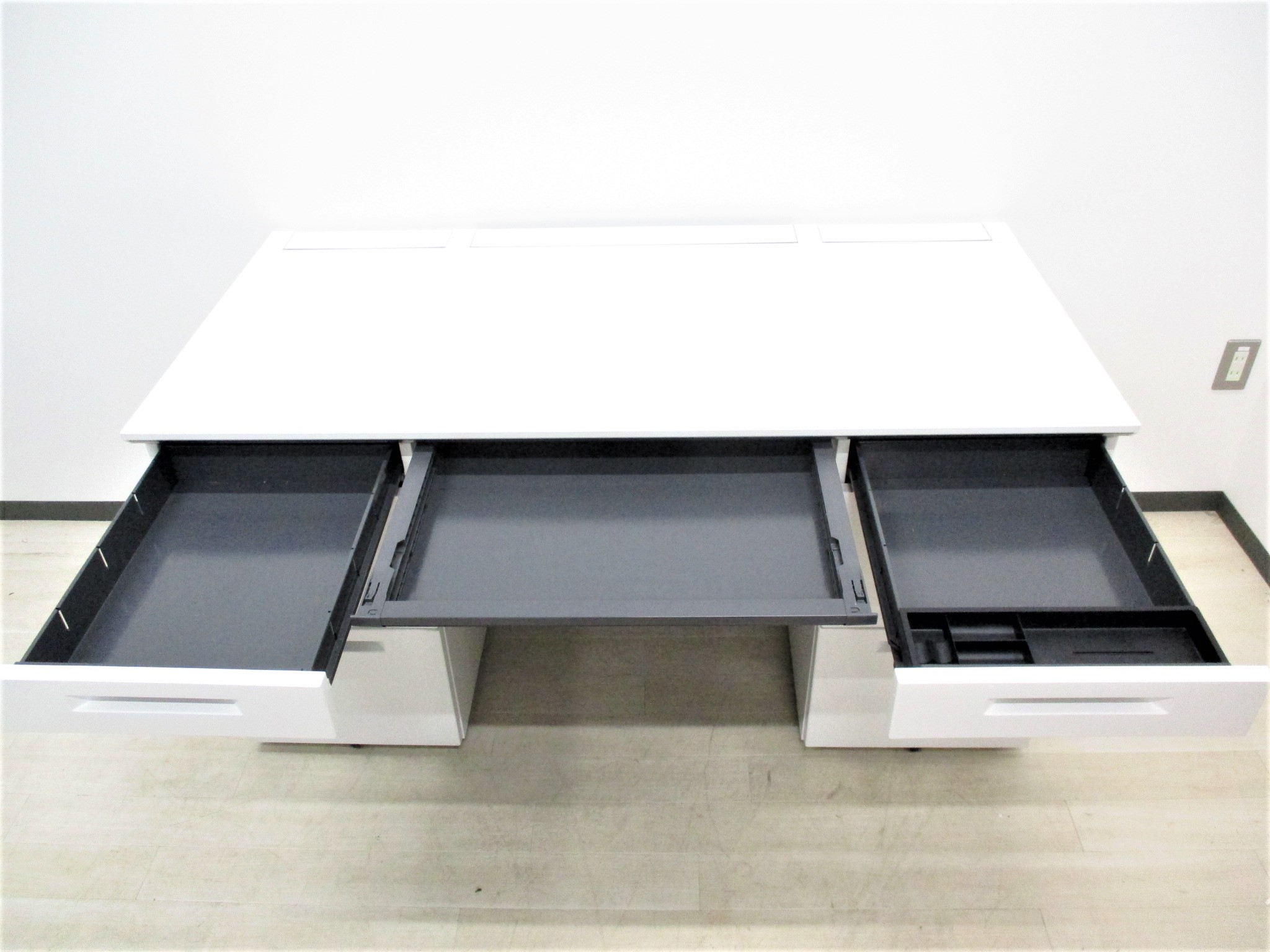 【T11】【商品入替のため、残り4台限り】コクヨ製 アイエス(IS) ホワイト 両袖 デスク W1400xD700xH720サイズ シリンダー 収納スペース充実! 机上をスッキリ整理! 幅広いワークスペースで上長席にもオススメ! W1400両袖机!!