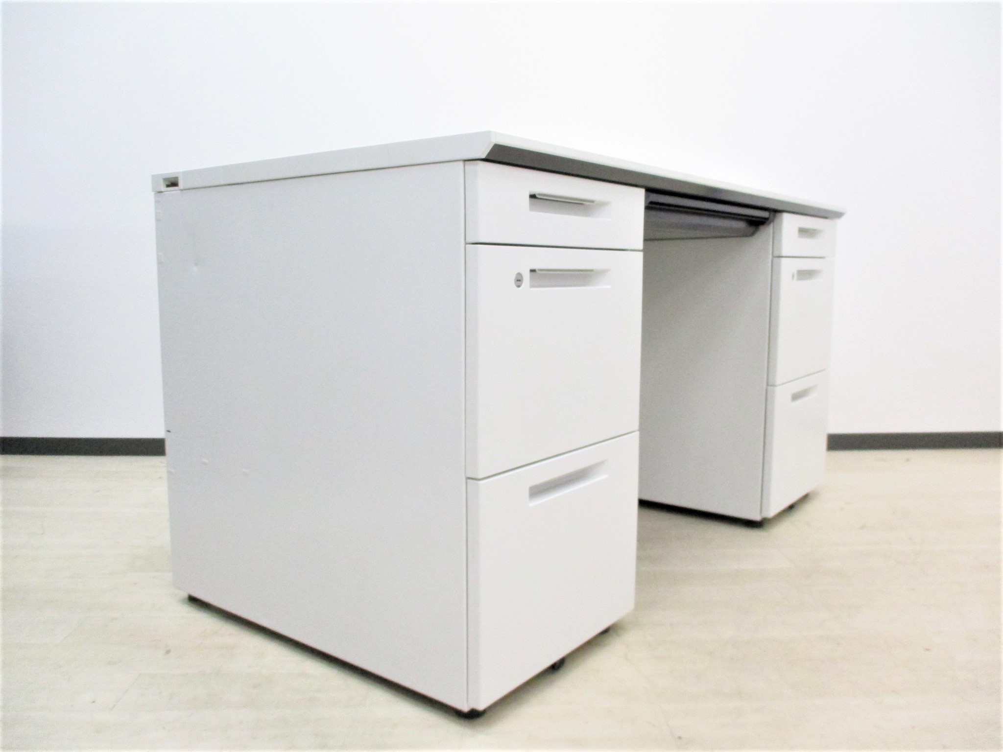 【在庫セール品・1台限定】【T11】■コクヨ(KOKUYO)製 アイエス(iS)シリーズ 両袖デスク W1400mm ■シリンダー錠 ■ホワイト【幅広いワークスペースで上長席にもオススメ! 収納スペース充実! 机上をスッキリ整理!】