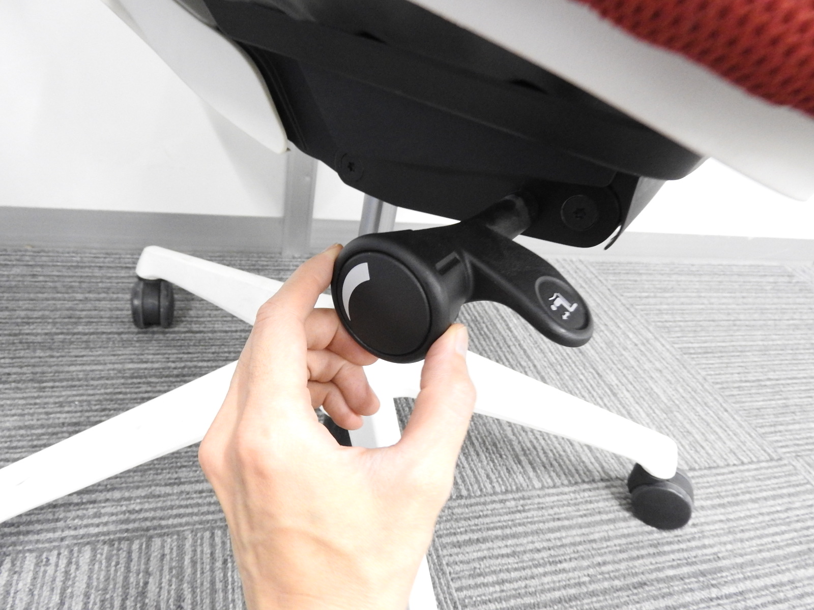 - 座面右下のダイヤル操作で、リクライニングの強弱調整が行えます。これまでのダイヤル式よりも、少ない回転数で、最弱?最強の調整が可能です。