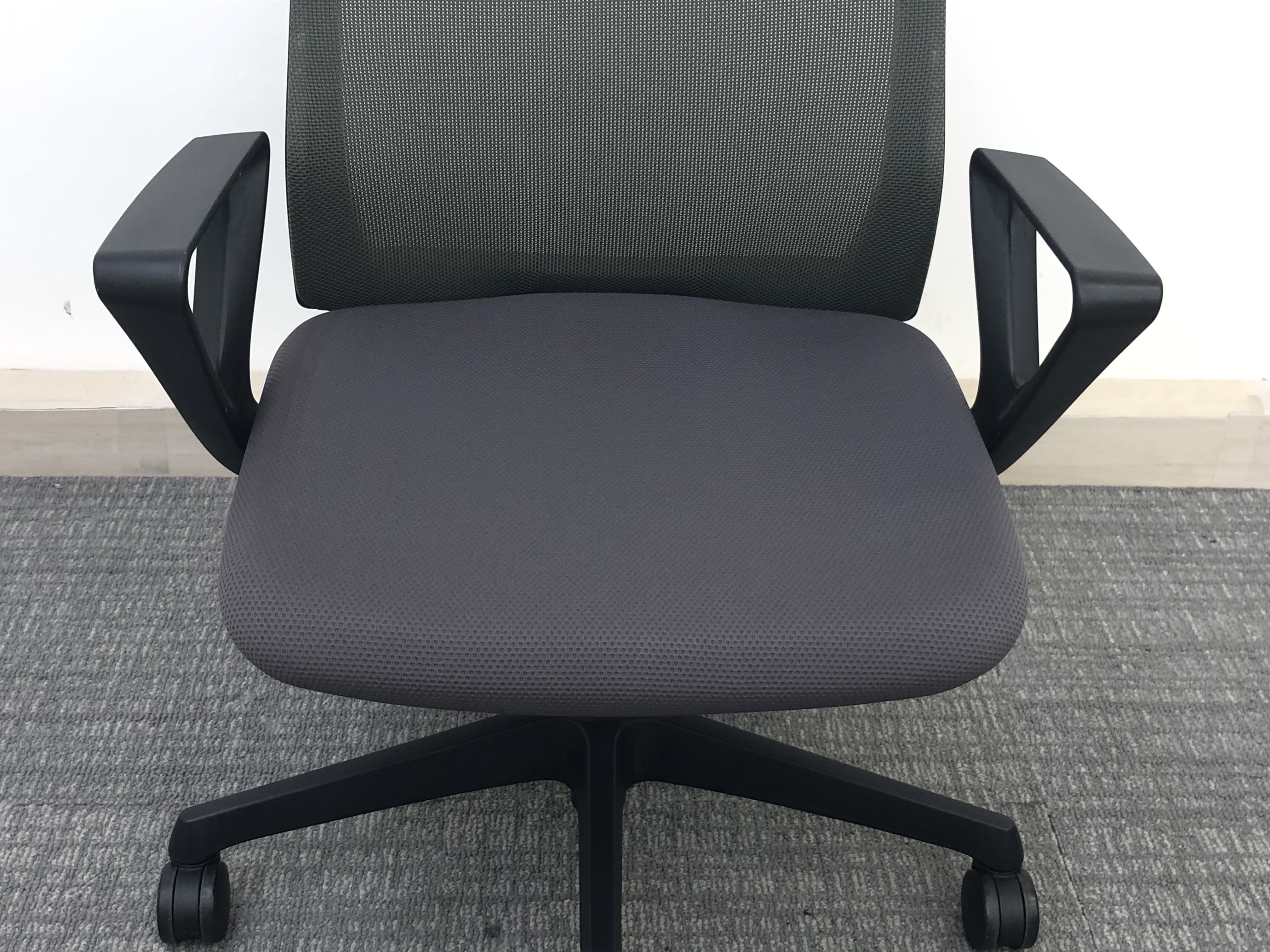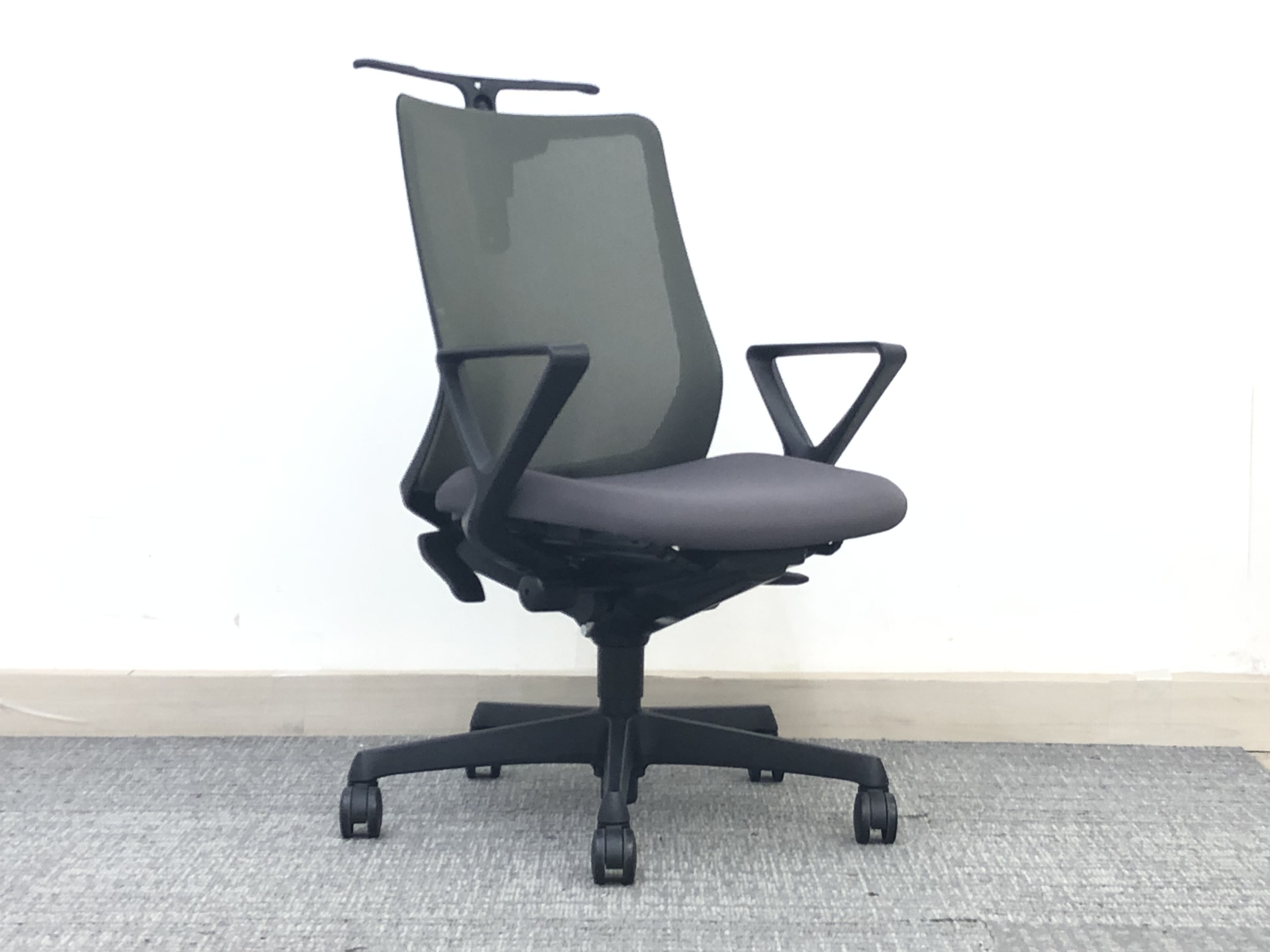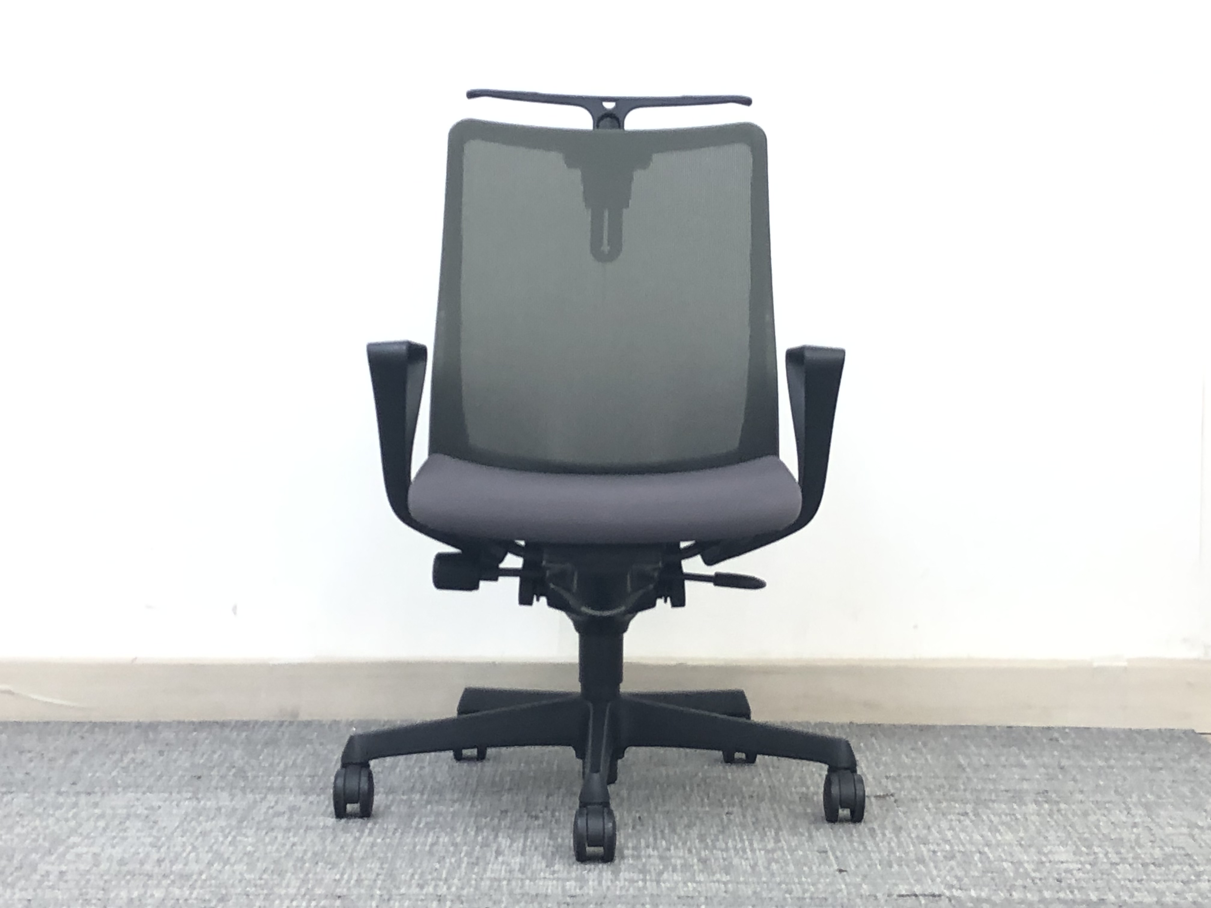 オカムラ フルーエント 肘付きローバックモデル 背メッシュ アジャストアーム ミディアムグレー×ブラックフレーム【愛知・名古屋・豊田・静岡・浜松】