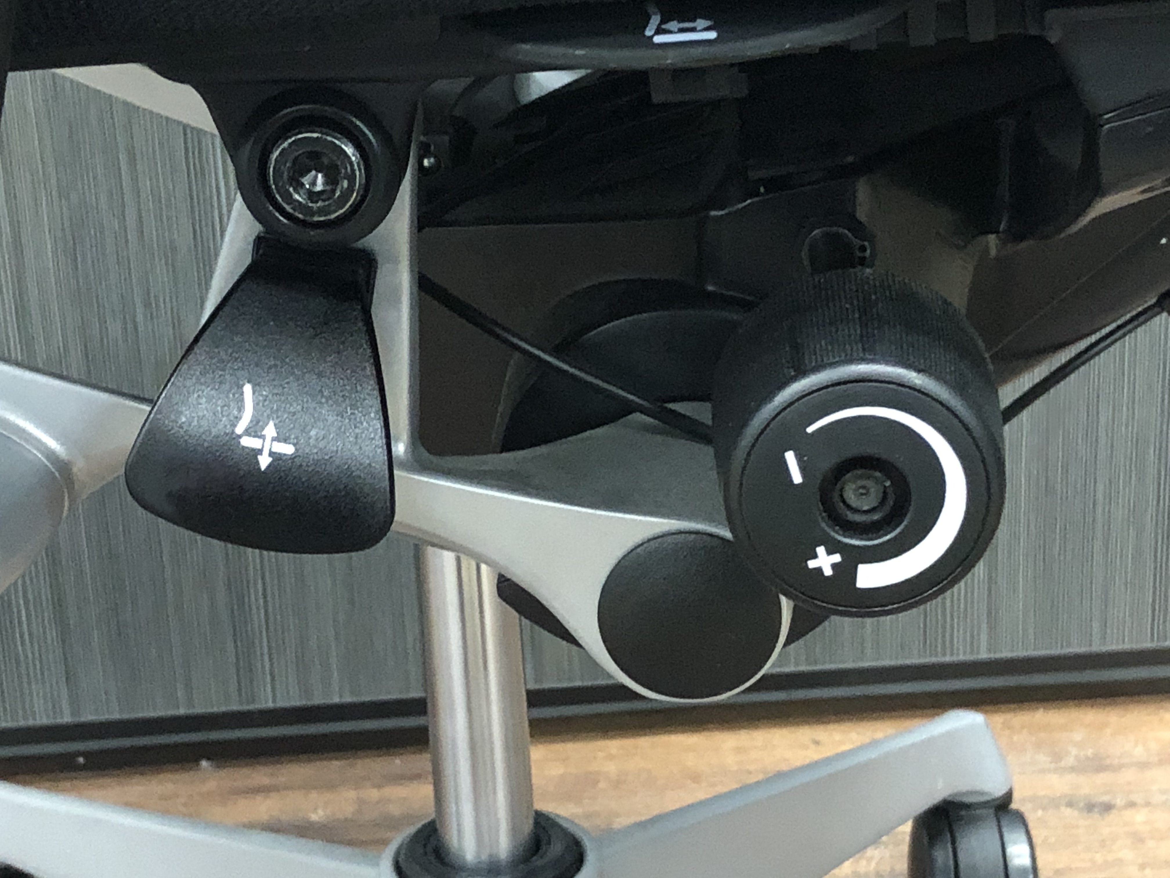 気に入っているのはリクライニング調整の自由さです。同じオカムラ社製の上位モデルや下位モデルも、角度が5段階程度の固定位置だったり、リクライニング強度も4段階だったりしますが、バロンチェアはどちらも無段階。つまり完全に好きな位置、好きな強度に調整することができます。