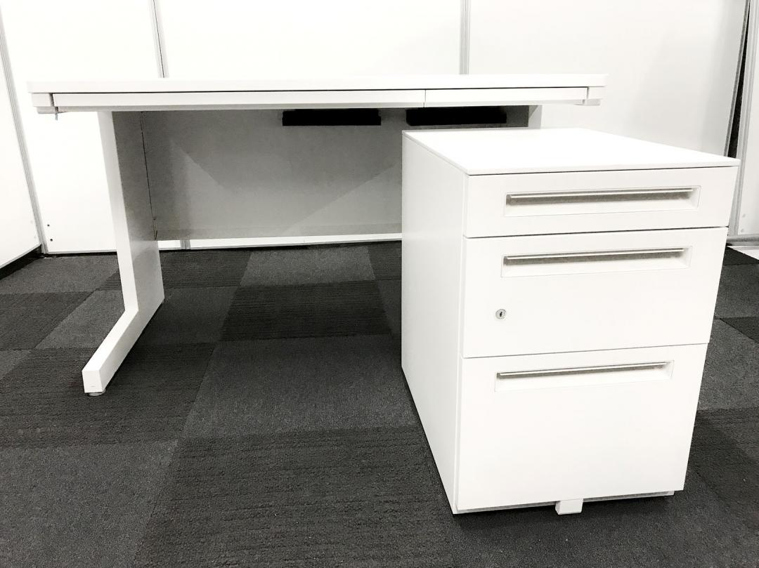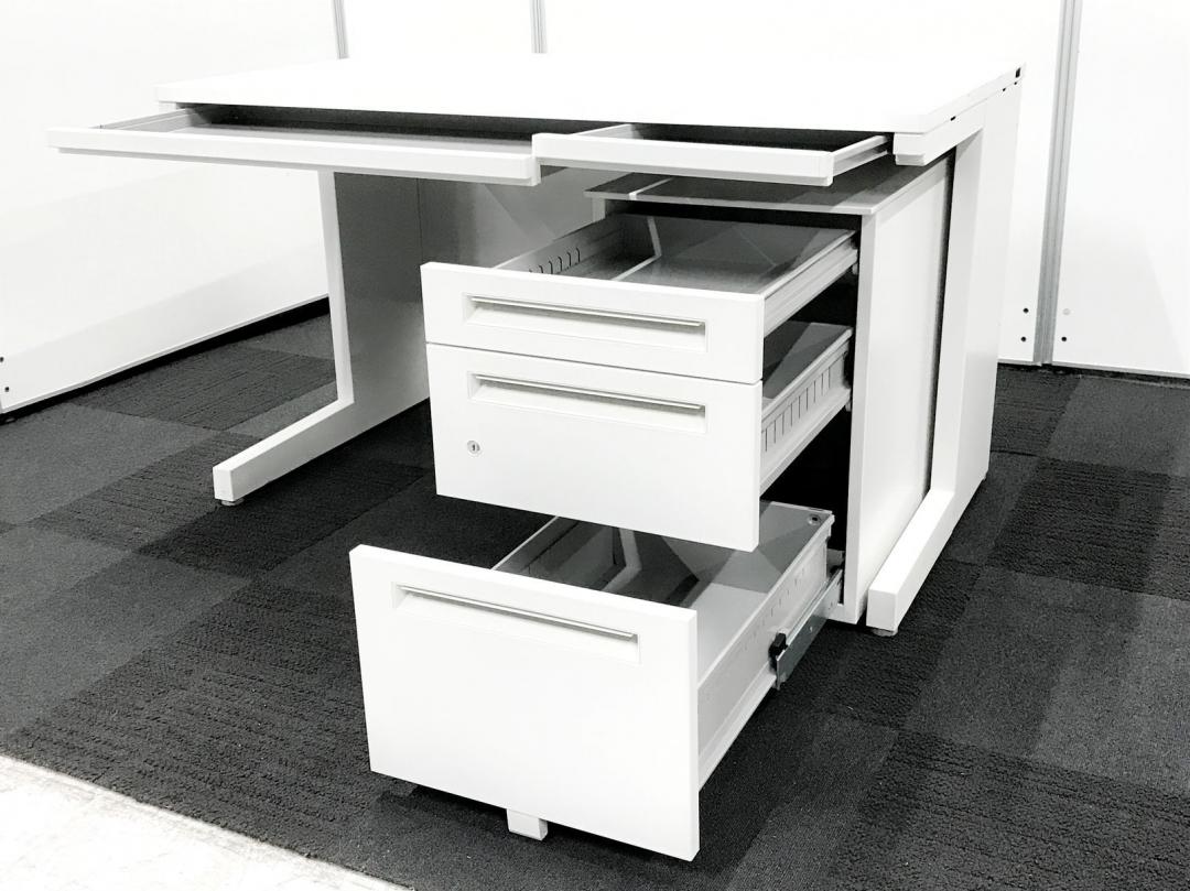 【デスク+3段ワゴンセット】内田洋行/スカエナ/ホワイト W1200タイプ!- つくば店