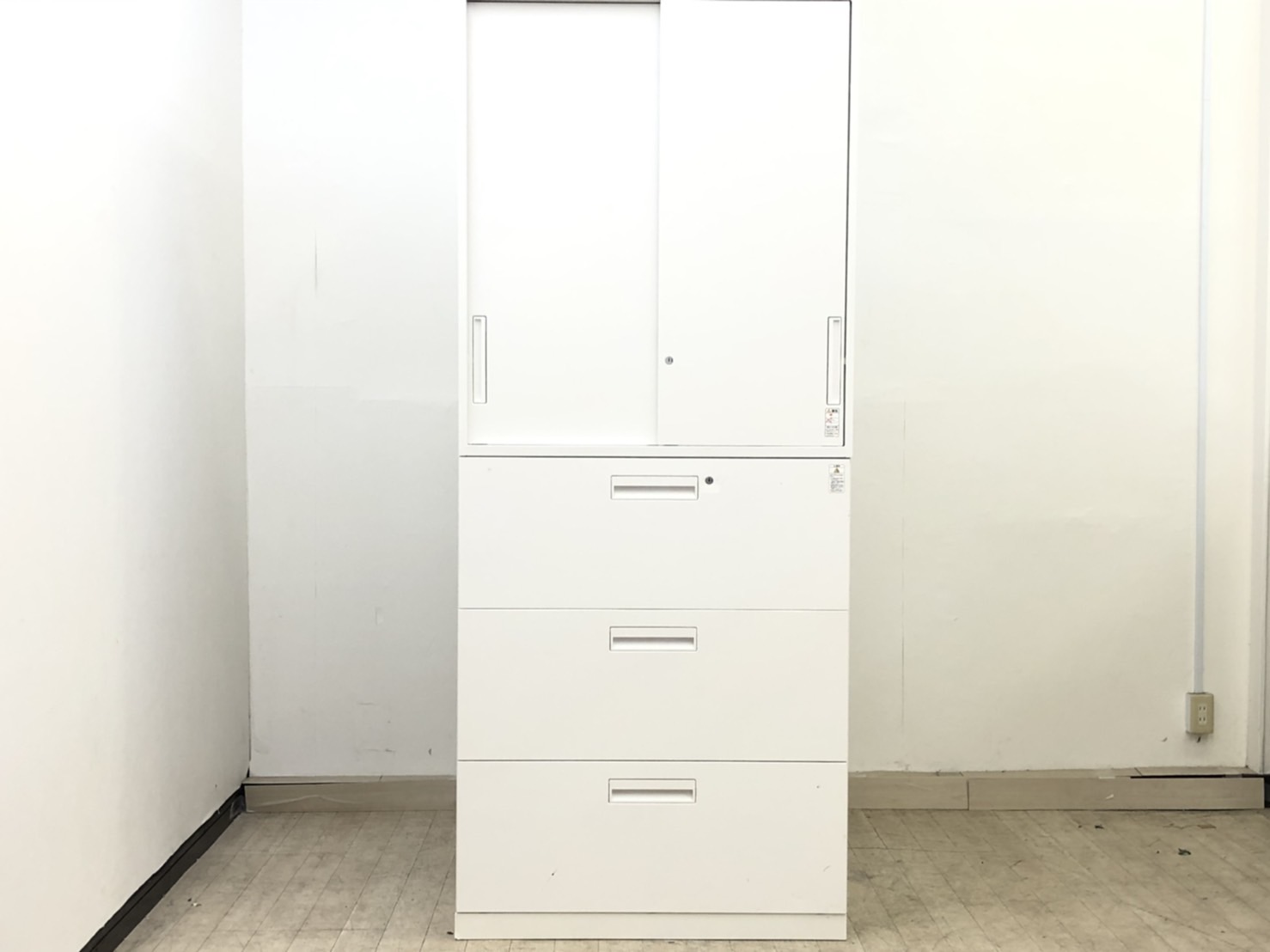 上下引き違い+観音開き+引き出しのセット!オススメ(おすすめ) /人気商品【弊社使用欄:A01040668/A01031461/A01031463/A01036258/A01040802】■シリンダー錠 ホワイト/コクヨ/エディア