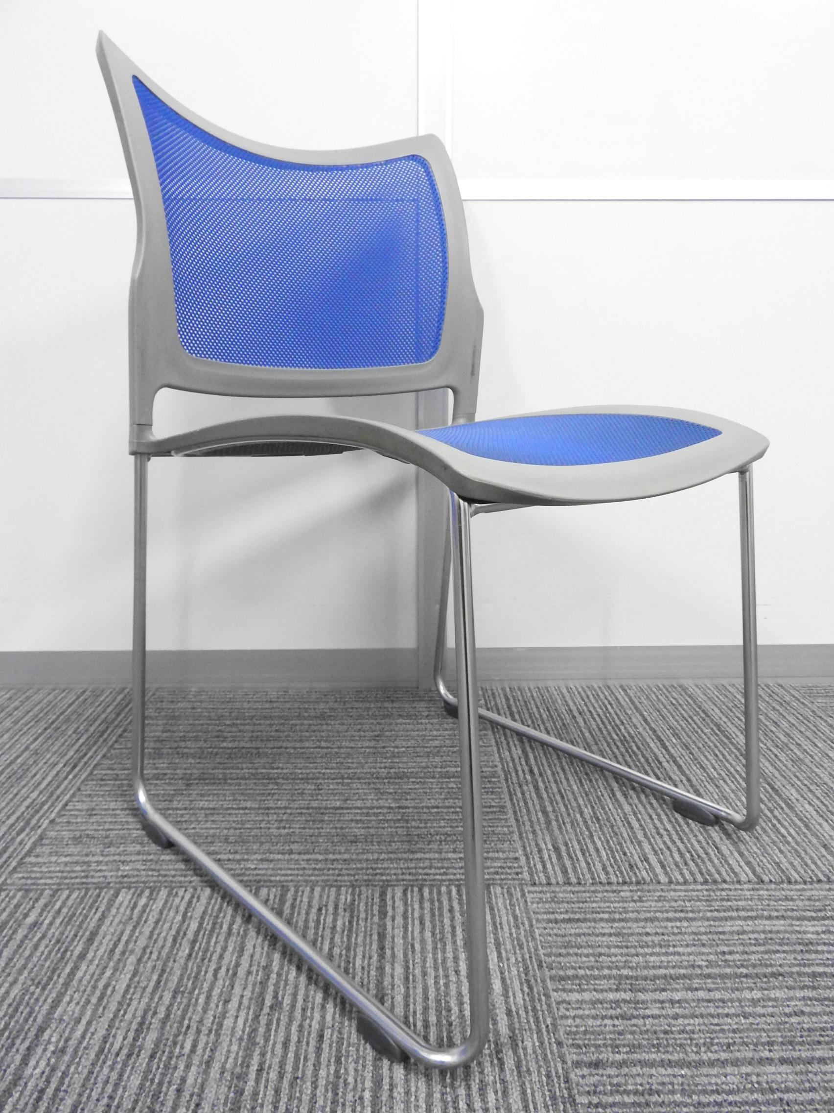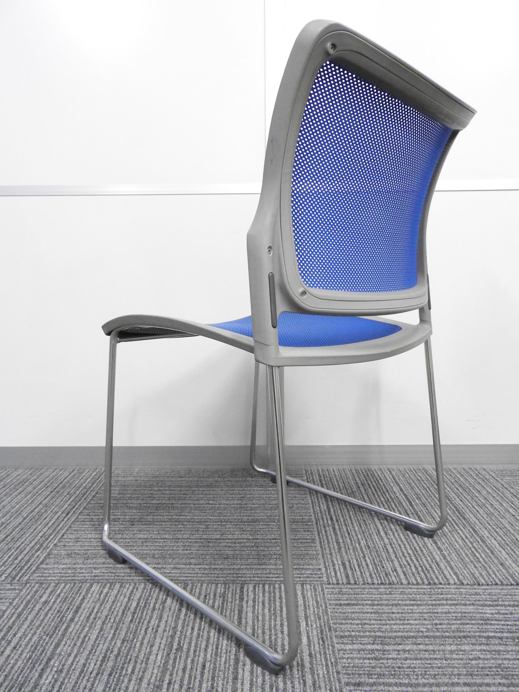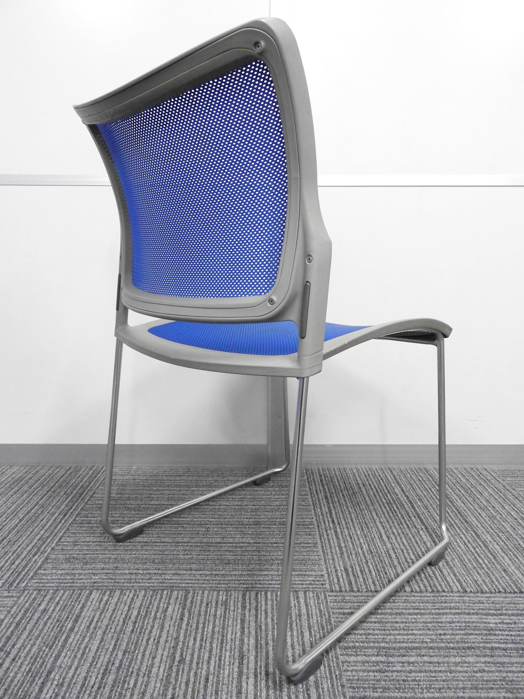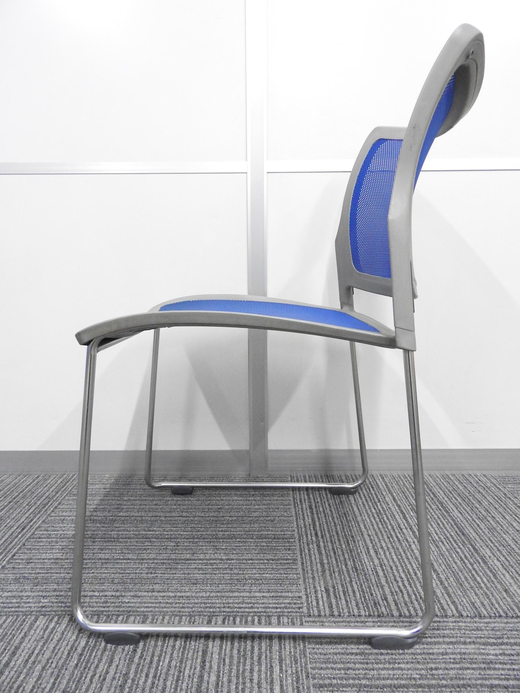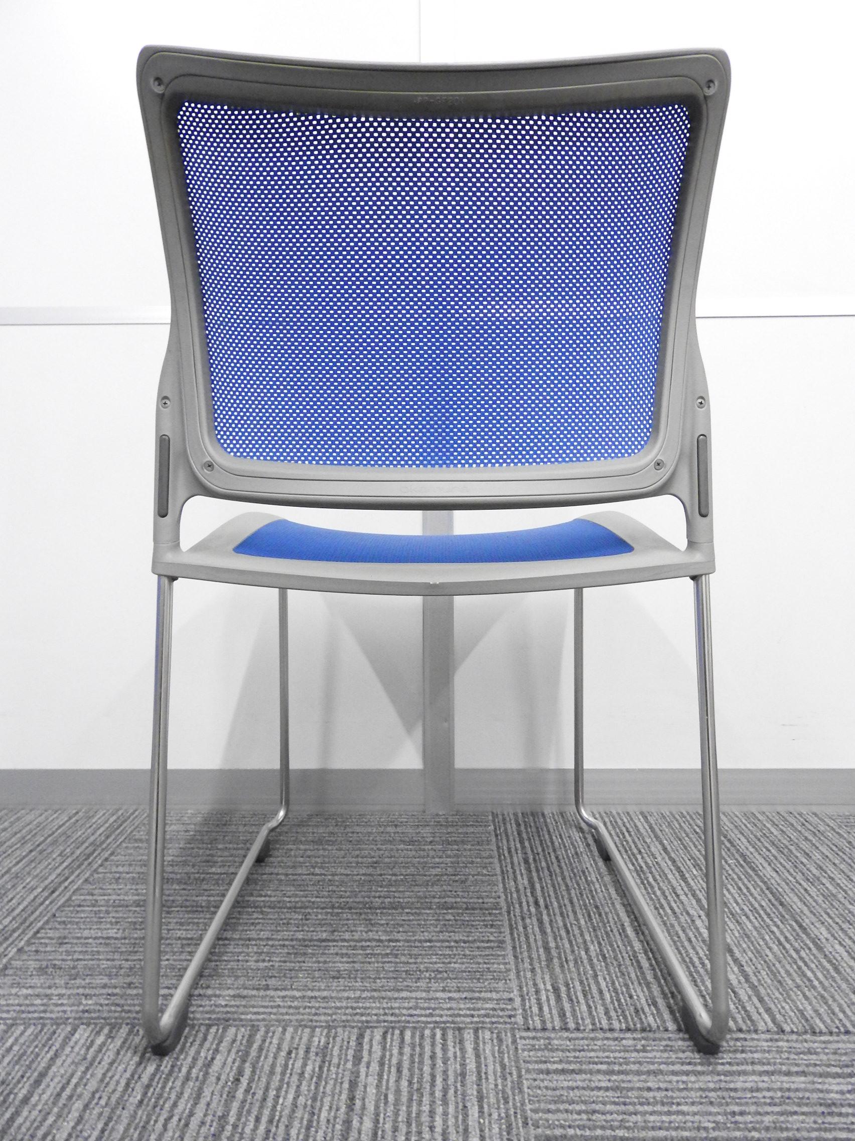 【メッシュが心地よさをキープ!】■オカムラ製 スタッキングチェア ルフトシリーズ ■色:ブルー- 埼玉本店