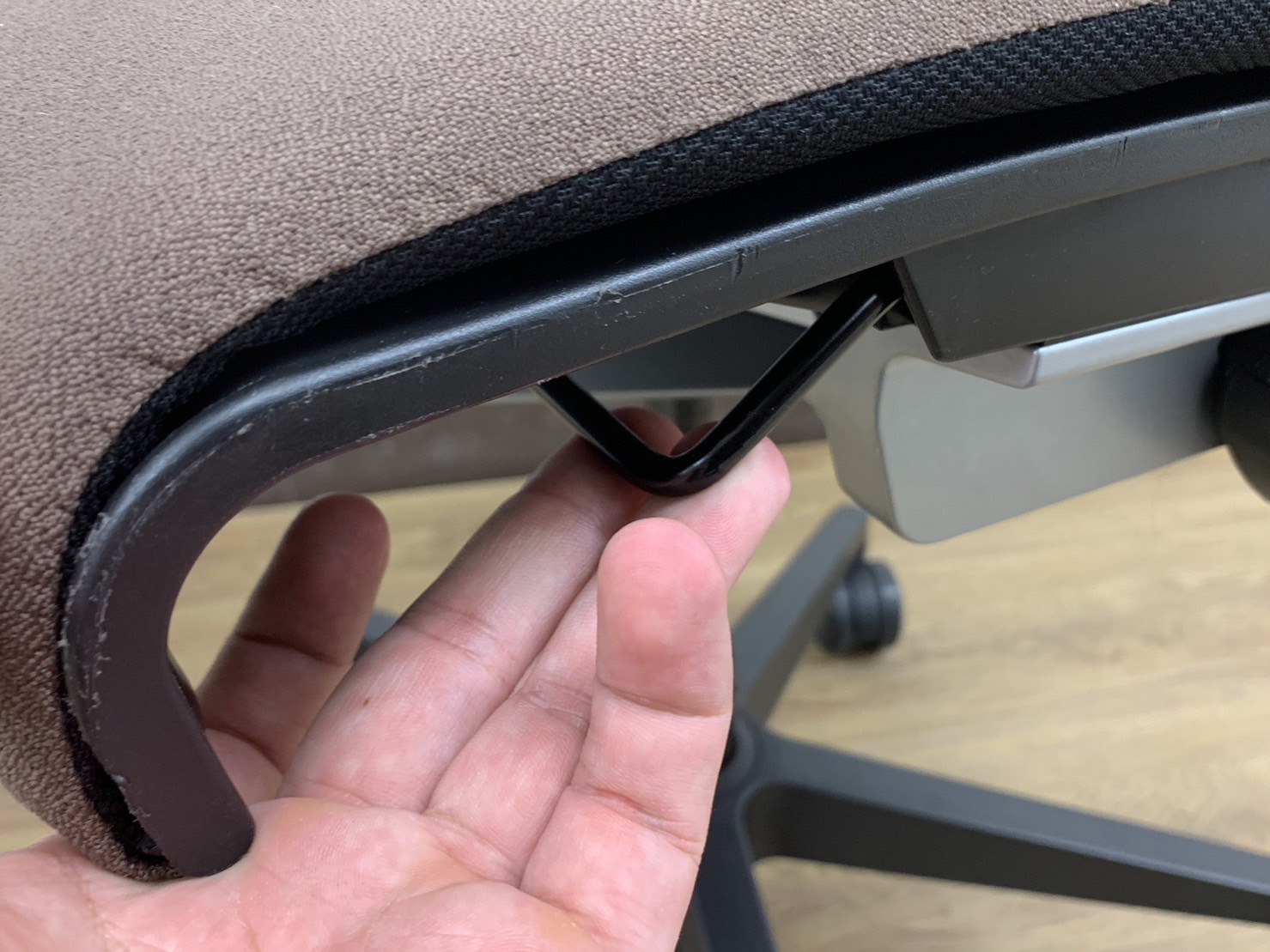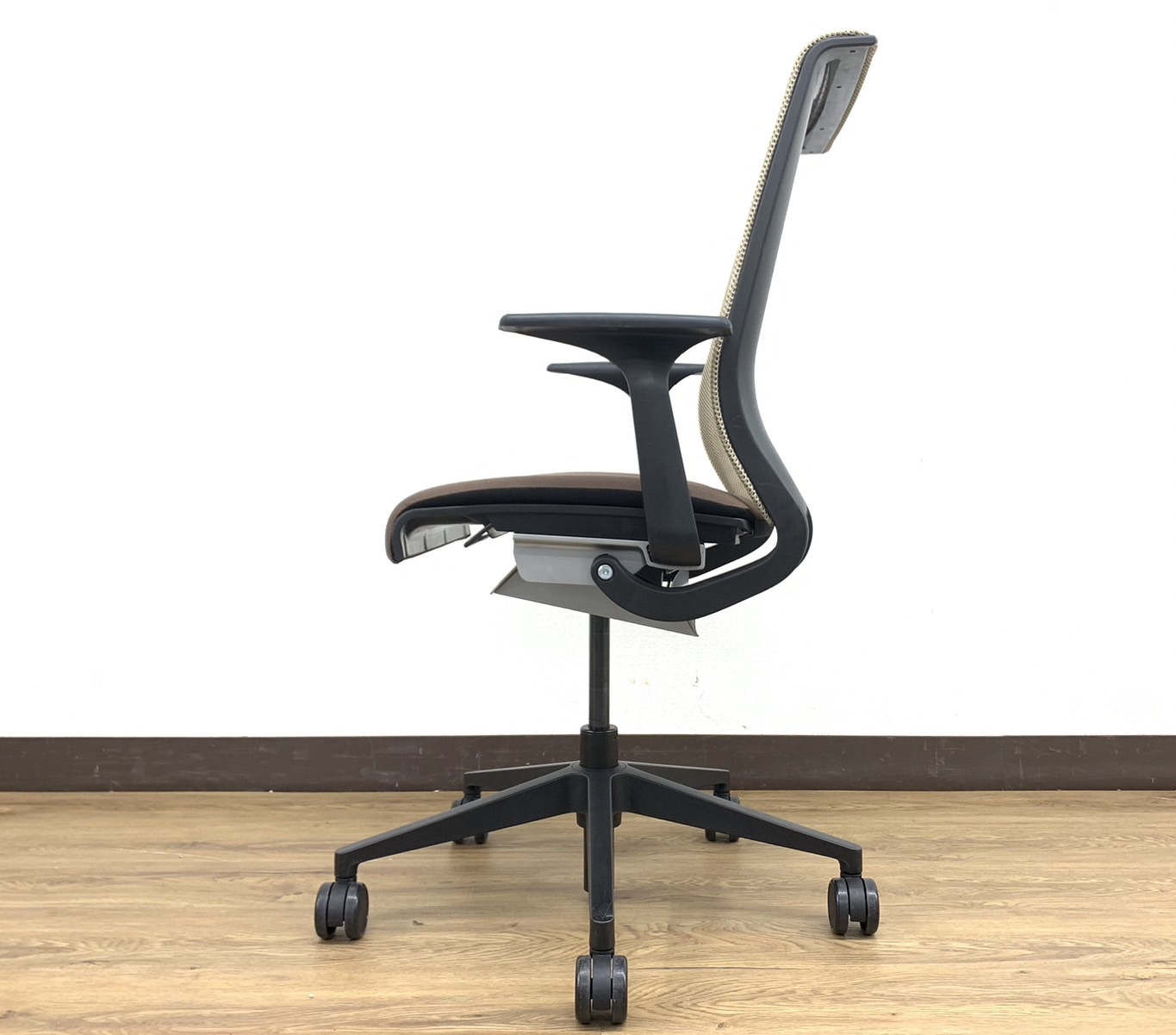 快適な座り心地に不可欠な調節機能である、上下昇降、座面の奥行き調整、リクライニングなどを備えており、操作もわかりやすく好評です。 特に、座面の奥行きは、座面下の左右に通った細いバーで調整でき、座ったままで軽やかに滑るように調整が可能です。 価格面では、新品では高めですが、中古は流通も多く、定価の3割前後の価格で高級チェアの座り心地を手に入れることができます!