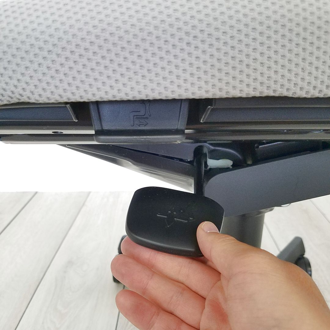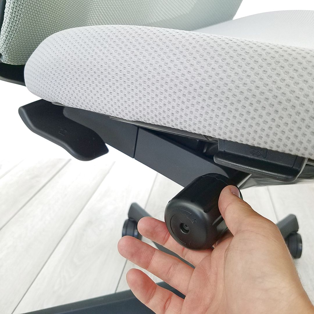 - 基本的な、高さ調節、リクライニング機能に加え、肘掛の高さ、肘あての前後・角度調節、座面奥行き調節など充実の機能を搭載。