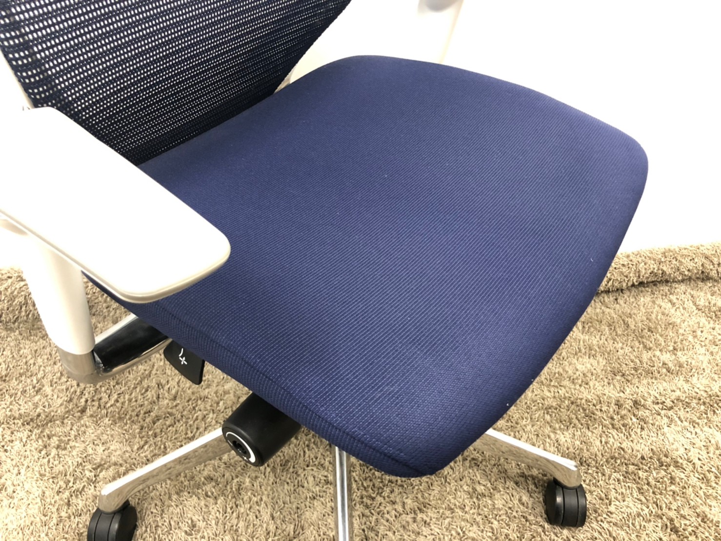 もちろん座り心地もコンテッサの直系ですから快適です。座面の素材はクッションとメッシュの2タイプあります。私、個人的には座面の中心部分でも外側でもテンションが変わらないクッション素材が、足を閉じても開いても快適なので推しです!"