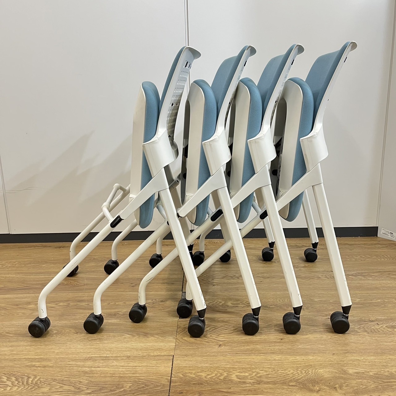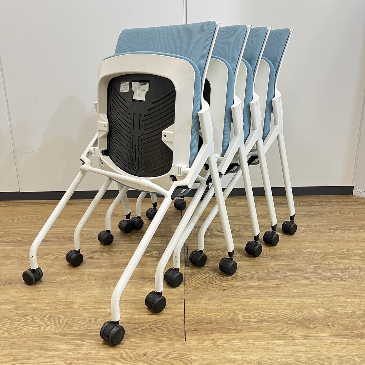 【4脚セット価格】イトーキ ネスティングチェア 水色×ホワイト 1セットのみ 新規 起業 買い替え- なんば日本橋店
