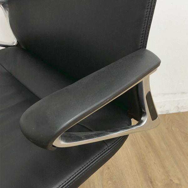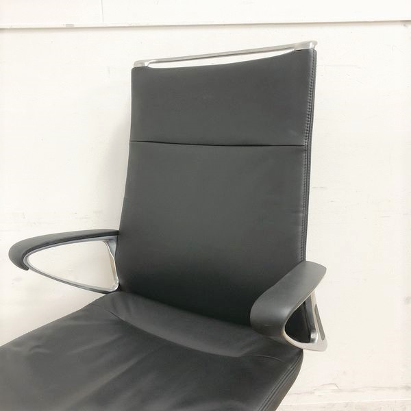 【会議室やモダンなオフィスの執務用として人気のチェア!レザータイプが入荷!】■オカムラ(okamura) モードチェア(mode) 肘付き ハイバック ■張地:レザー 色:ブラック ■デザインアーム