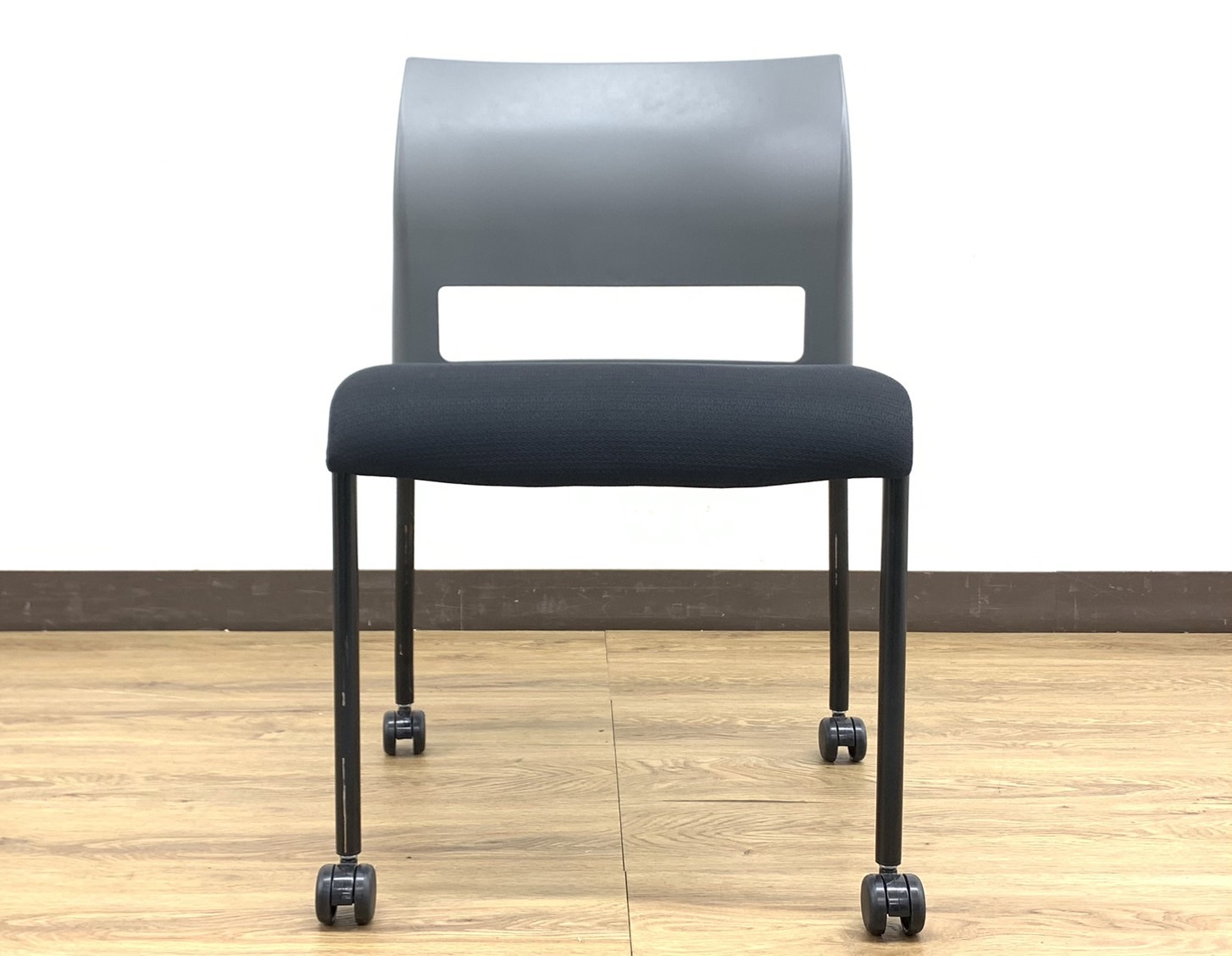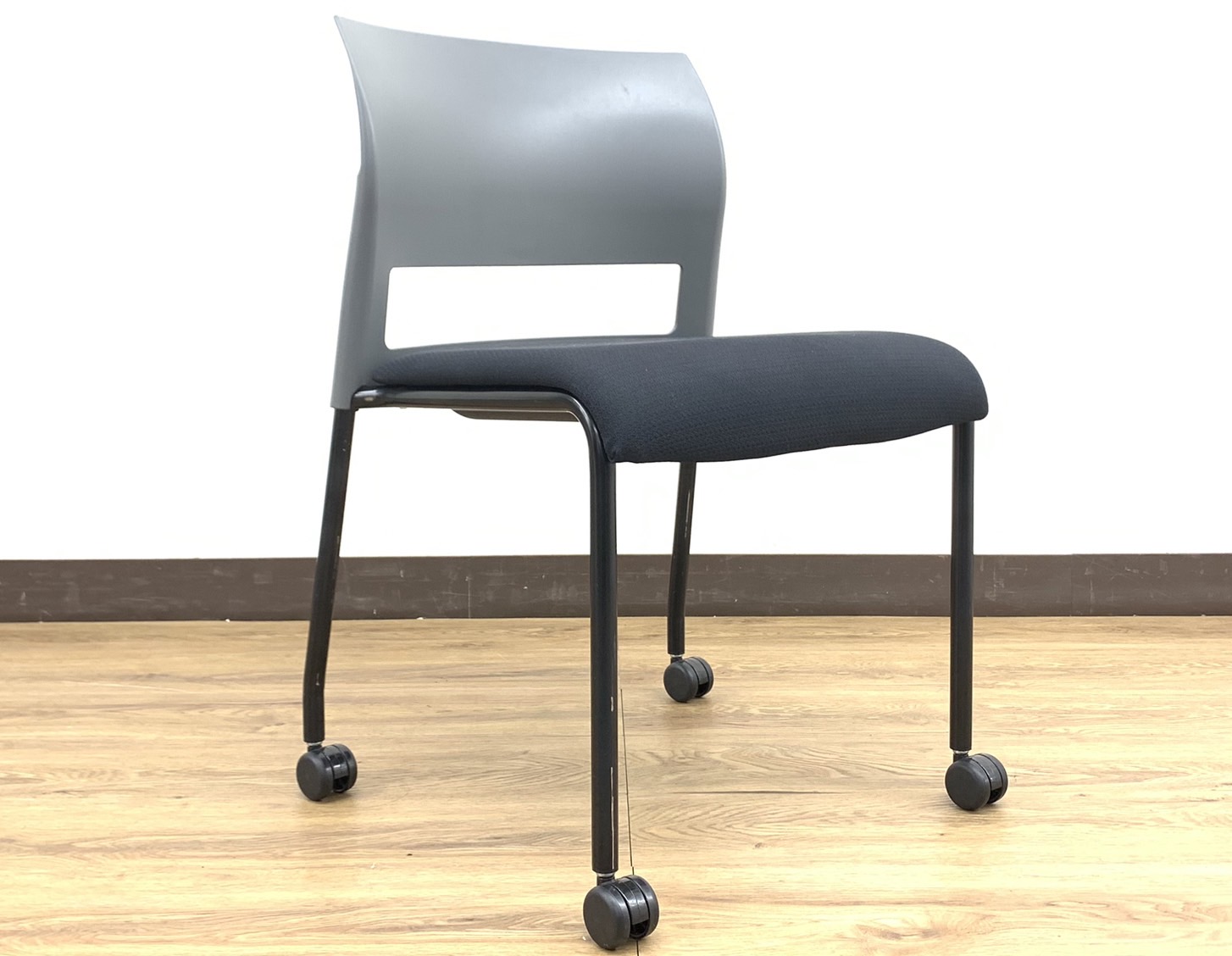 【12脚入荷】モノトーンブラック&グレーカラー!スタッキングチェア※キャスター付き仕様◆StealCase製【RP】- 埼玉本店