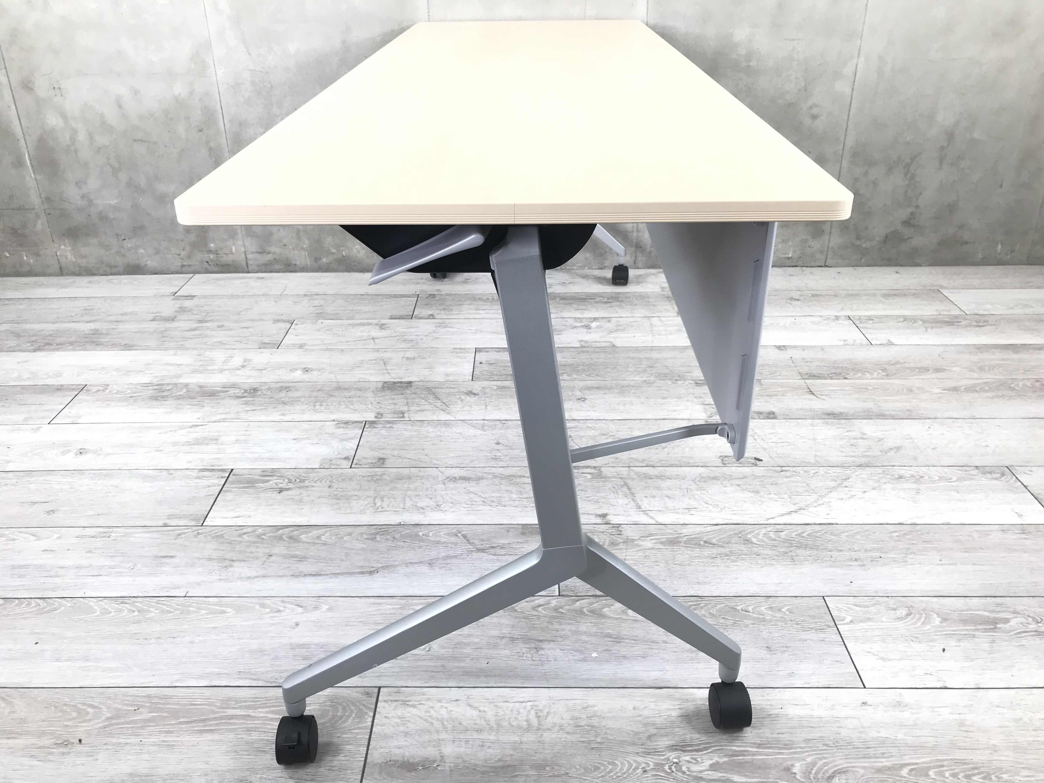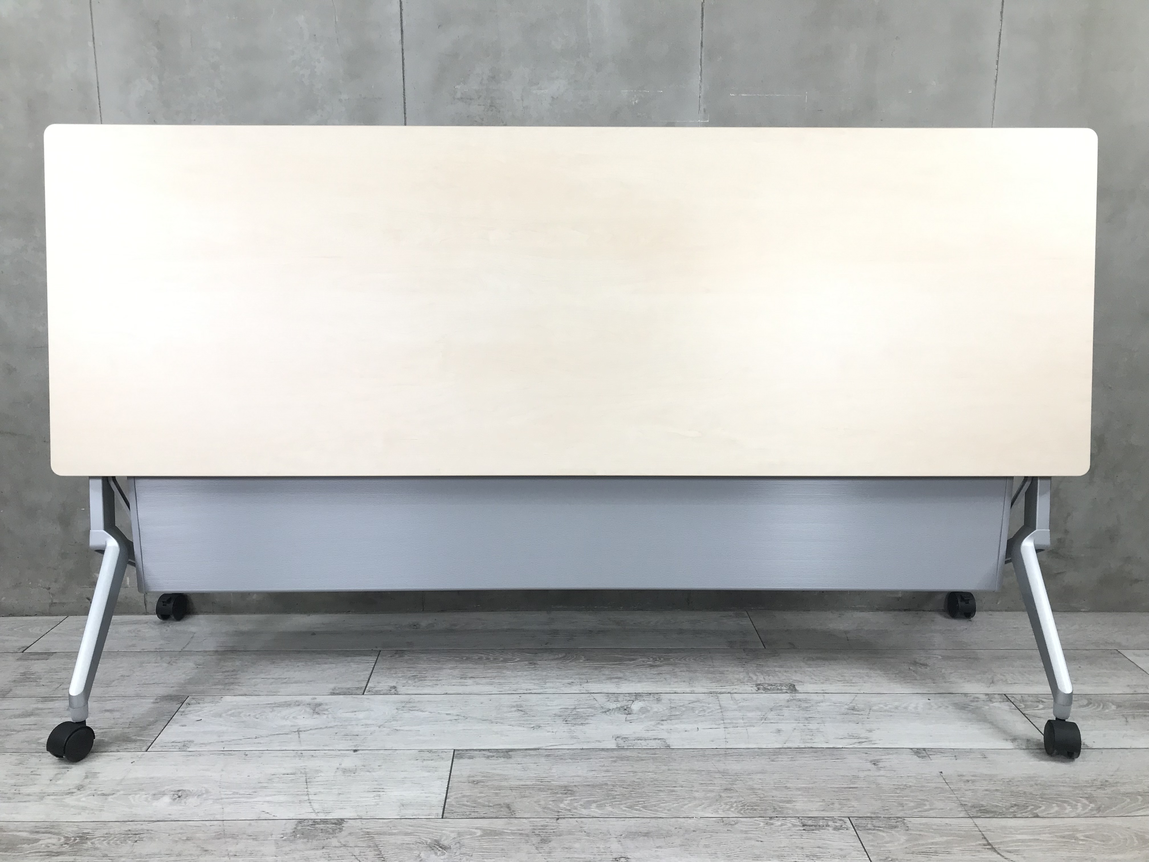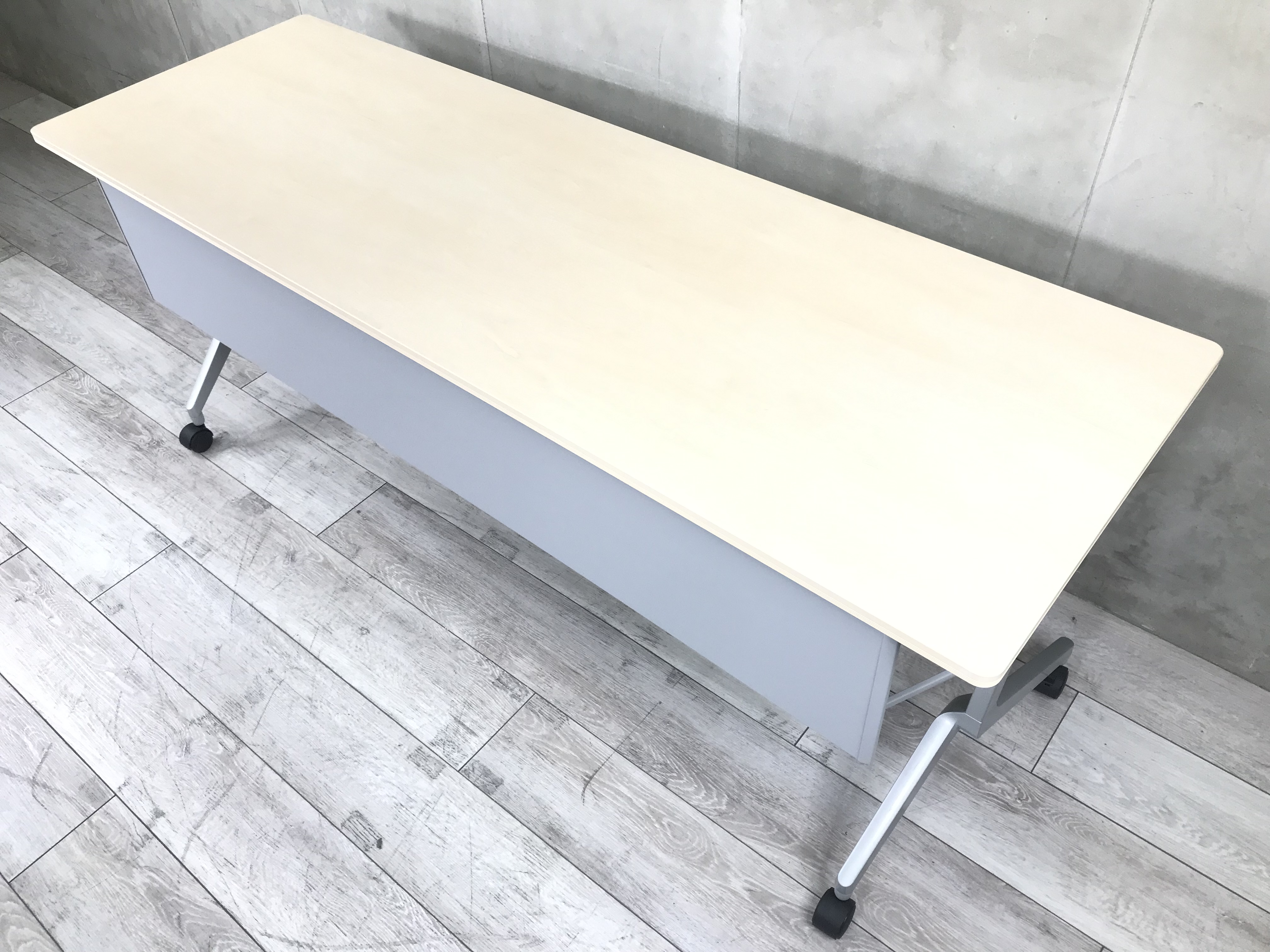 【会議・研修室などに・使わないときは畳んで省スペース!】■コクヨ(KOKUYO)製 リーフライン(Leafline)シリーズ サイドスタックテーブル フラップテーブル W1800×D600㎜ ■木目ナチュラル天板 ■幕板付き 【2~3名での使用に最適】