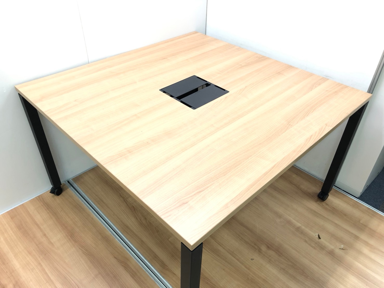 【在庫セール品・2台限定】【T12】■コクヨ製 ワークフィット ミーティングテーブル W1200×D1400㎜ ■配線カバー付き ■木目ナチュラル【配線カバー付きなのでデジタルツールを用いた会議にオススメ!】