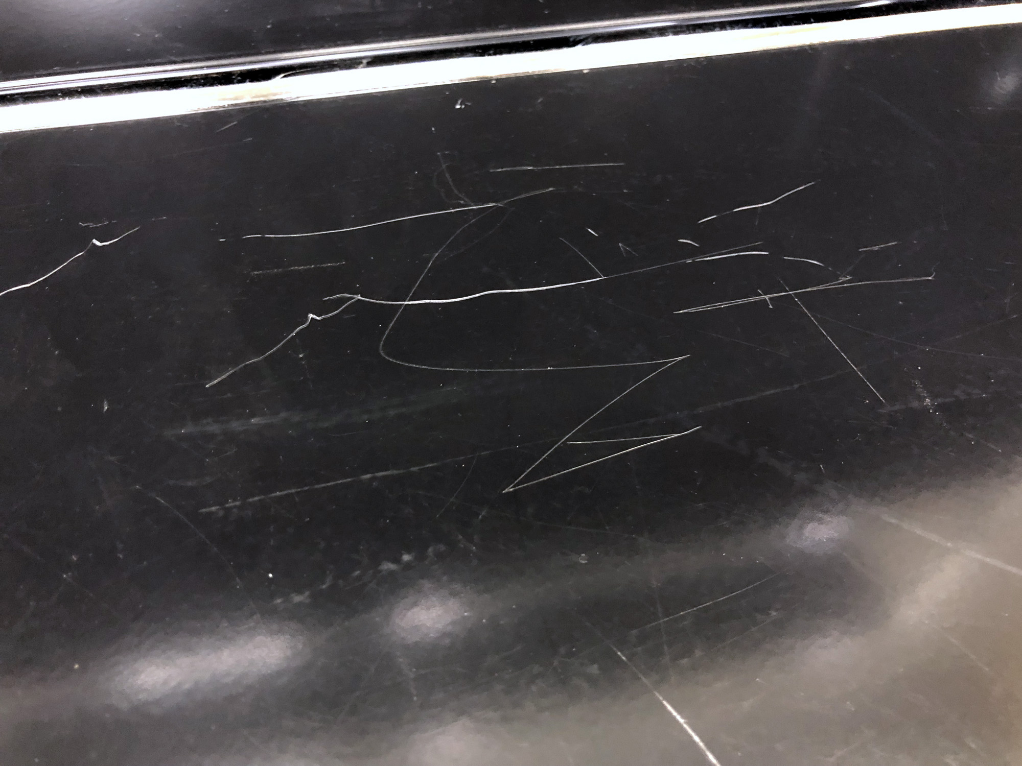 - 目立つ箇所あり傷・凹みが多数、深い傷・凹みが一部ある。(例、天板、正面、背部、サイド部分にある。)