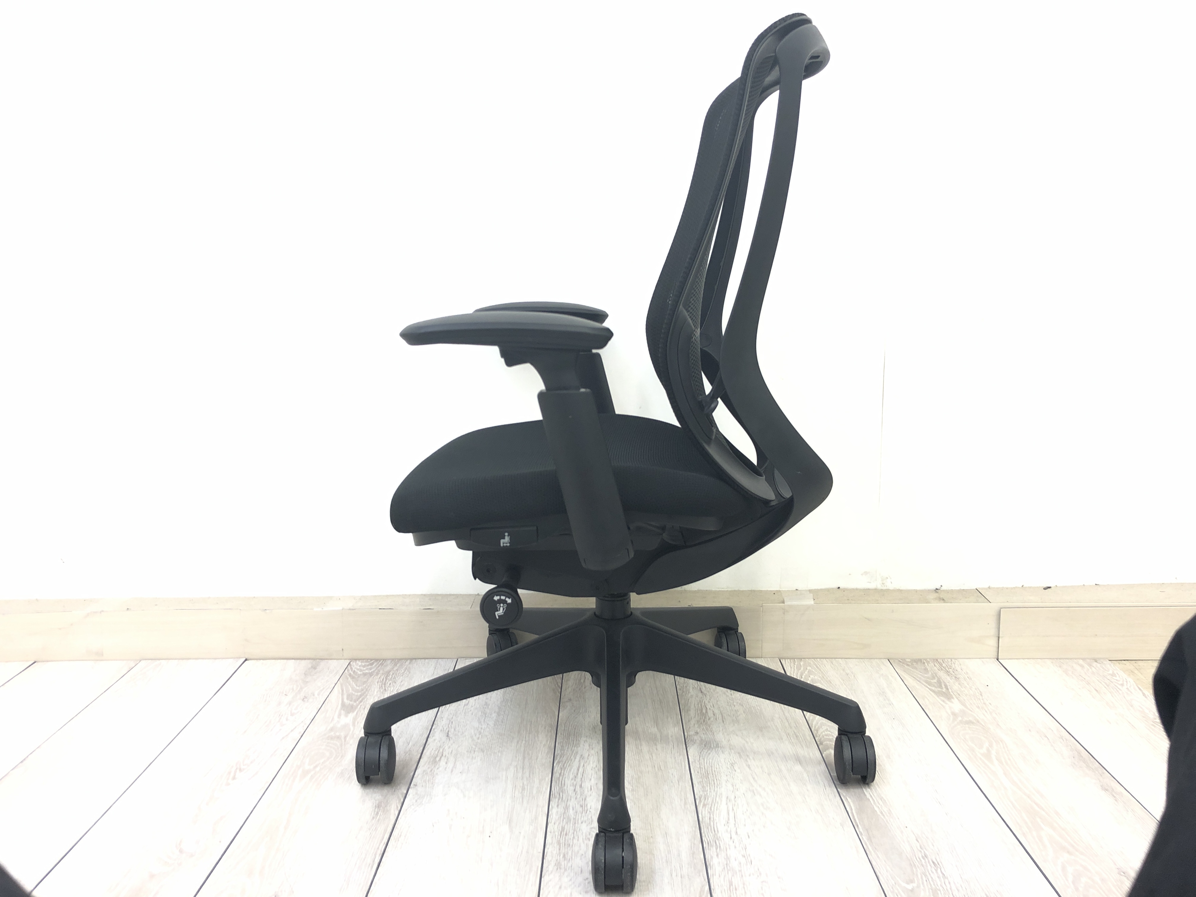 【限定1脚】【三次元曲面が身体にフィット!前傾チルト機能付き大人気メッシュチェア!】■オカムラ(okamura)製 シルフィーチェア(Sylphy) 肘付きハイバック ■背面メッシュ ■可動肘 ■ブラック×ブラックシェル ■ランバーサポート付き