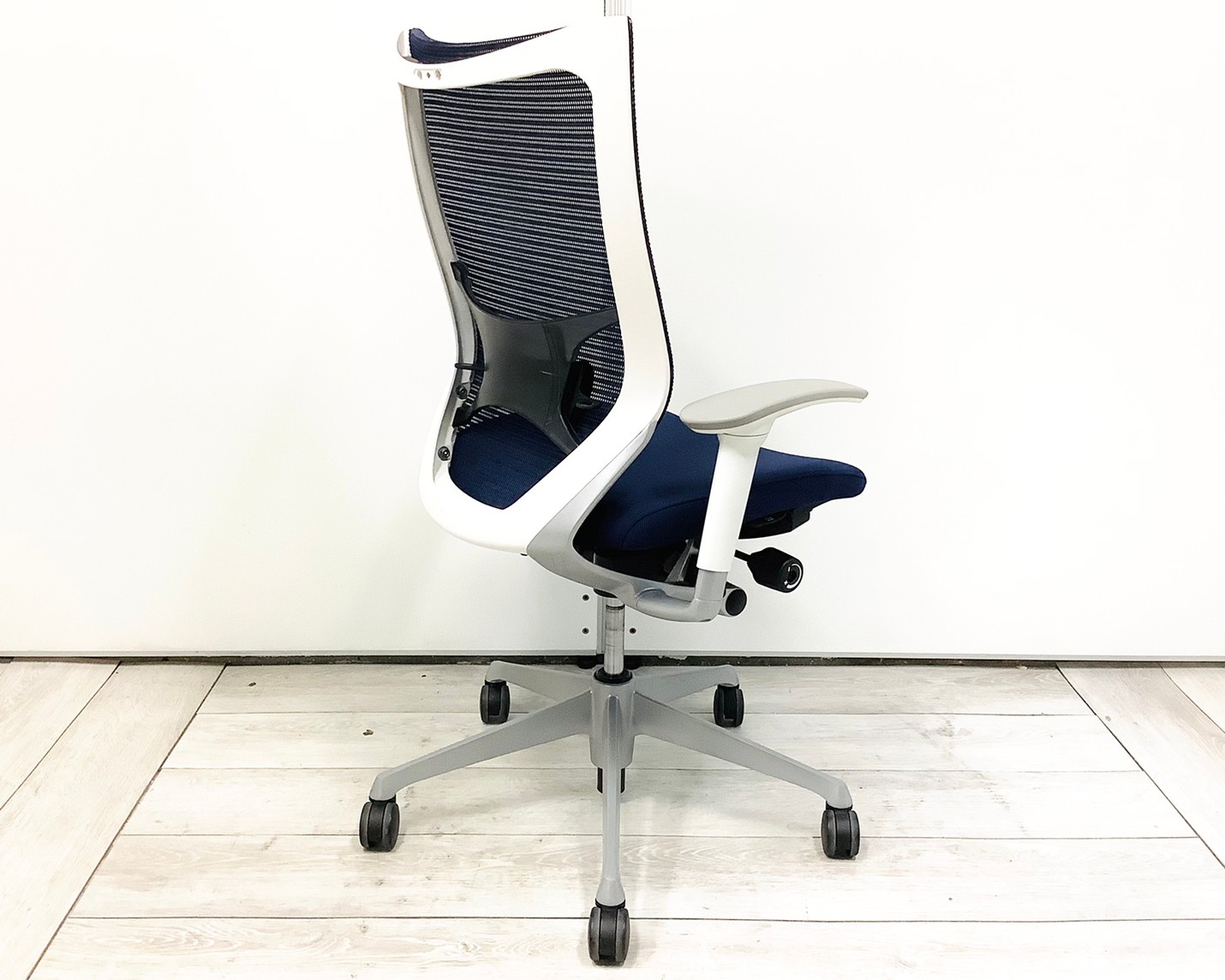 【新品ヘッドレスト付き】オカムラ/バロン/ブルー×ホワイト/可動肘/座面クッション【AD】