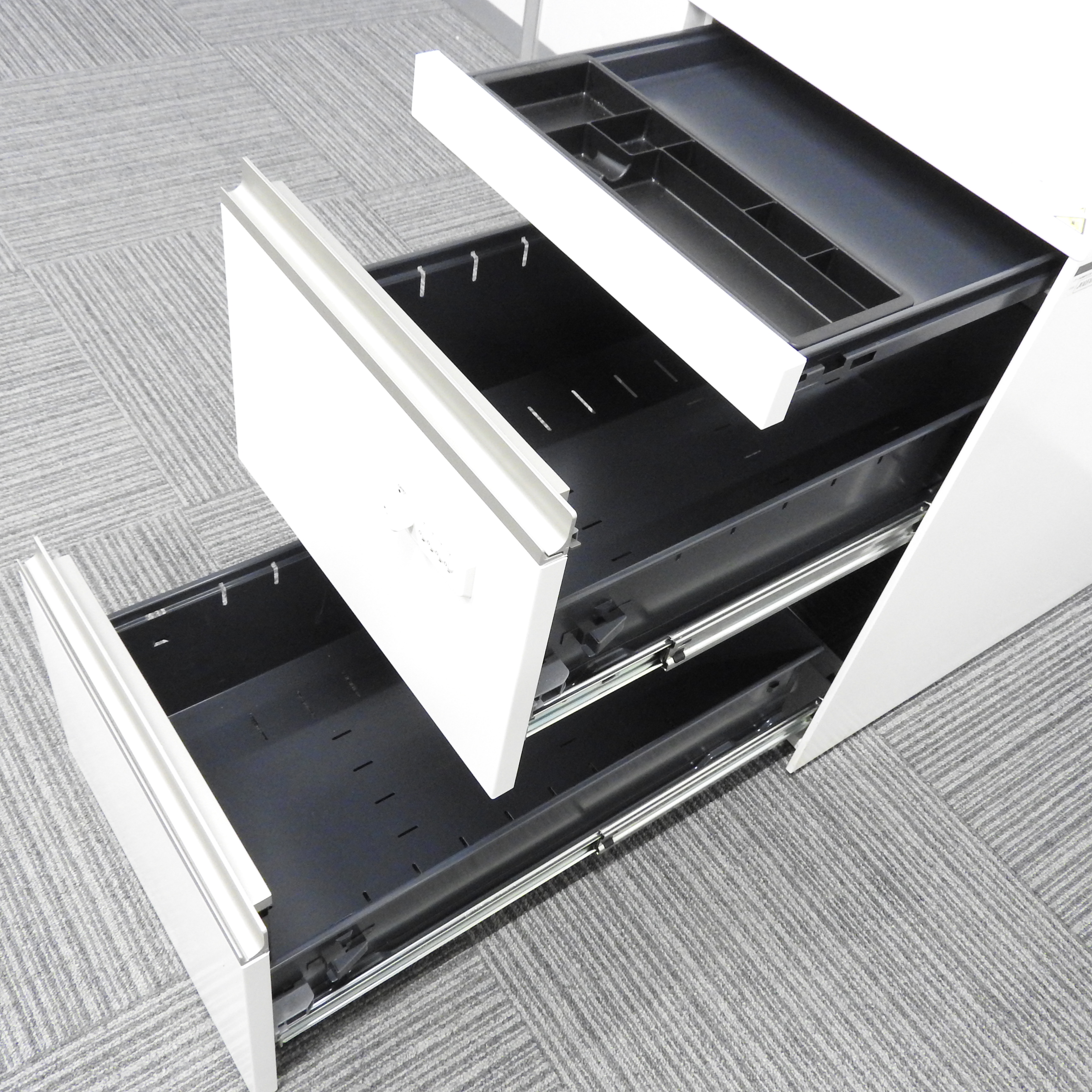 フリーアドレスや引出し無しデスクにフィットしやすいデザインとなっております。