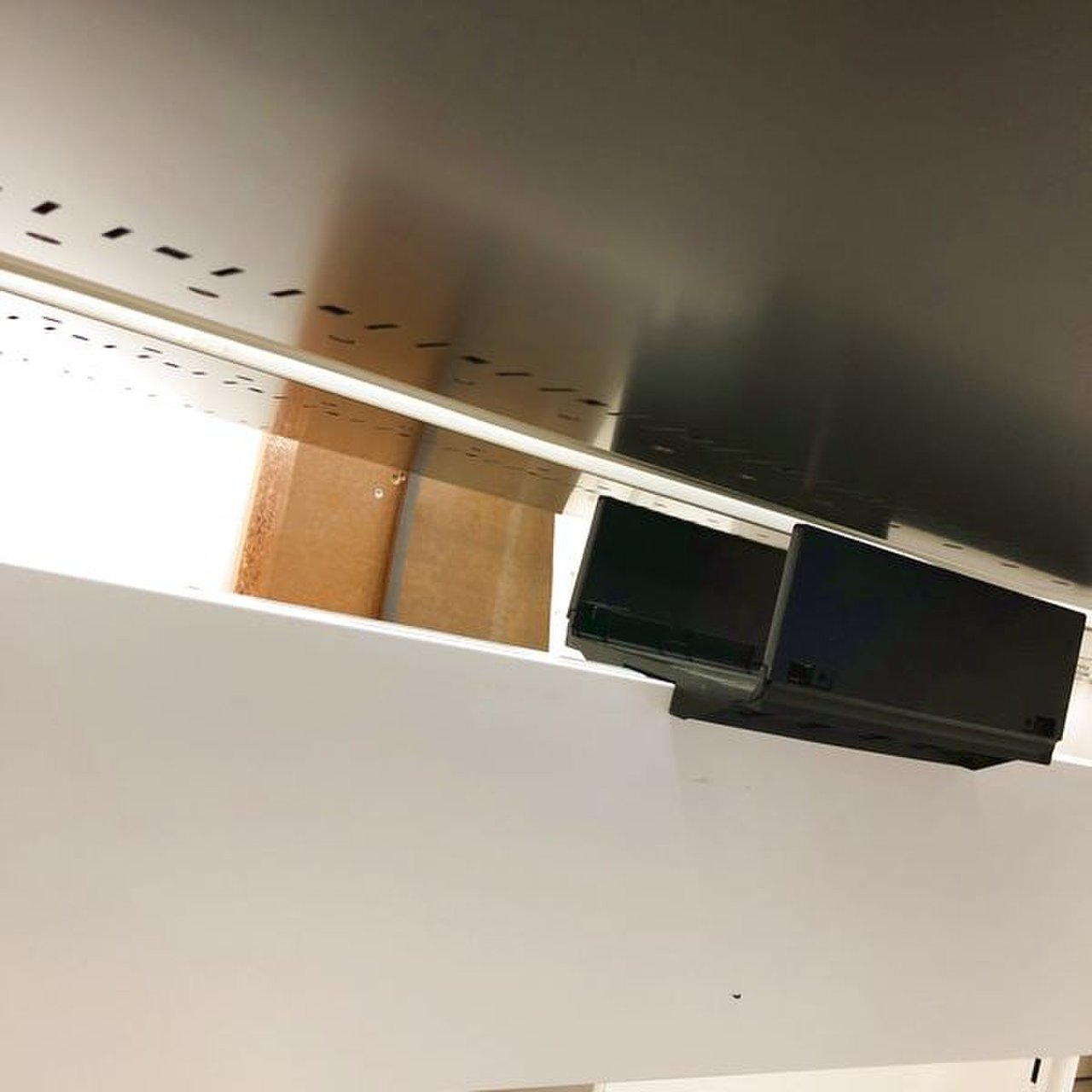 中央にある配線カバーは簡単に開閉可能でここに配線ケーブル等の収納が出来ます。