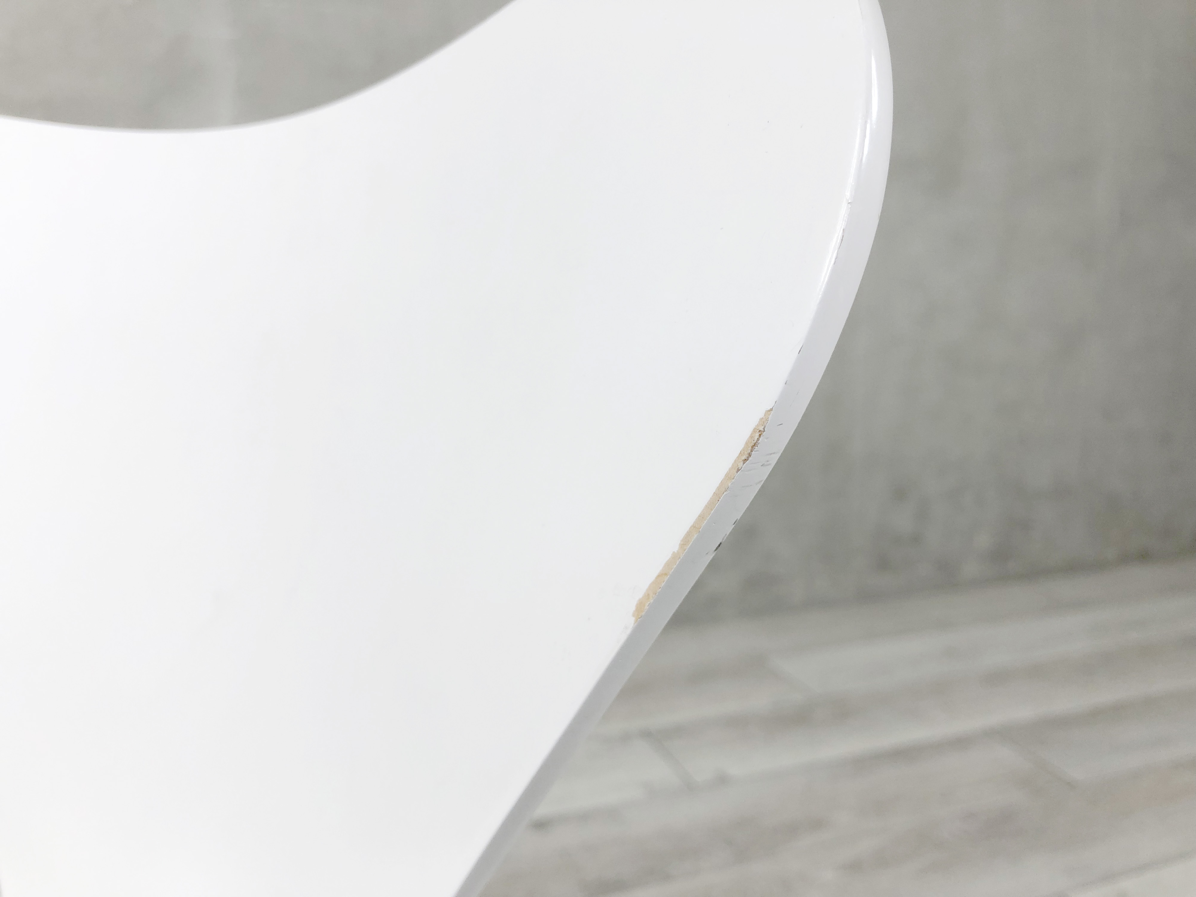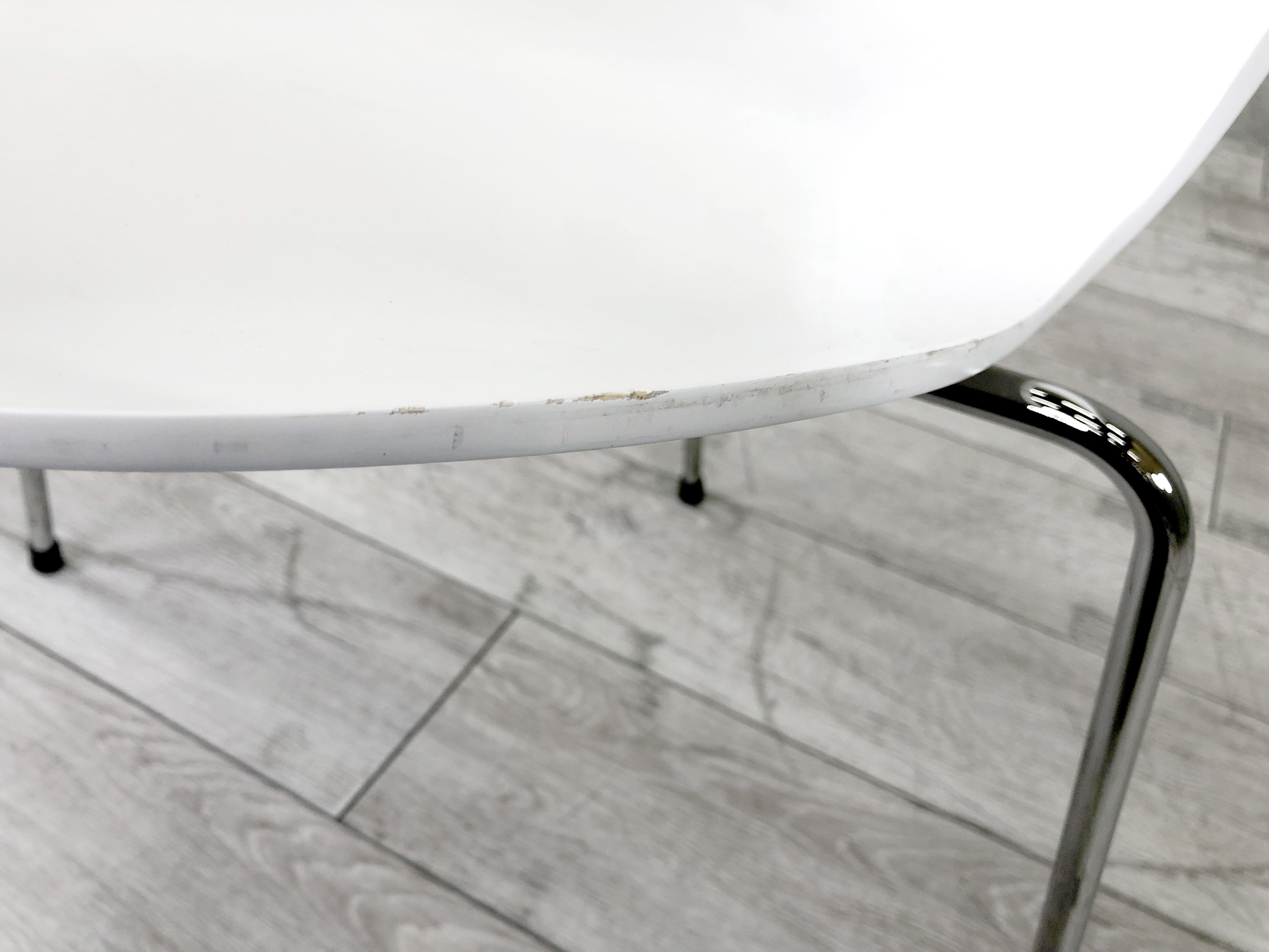 - かなり強い濃い黄ばみ・変色が商品全体にある。(例、座面・背もたれ、脚部等にある。)