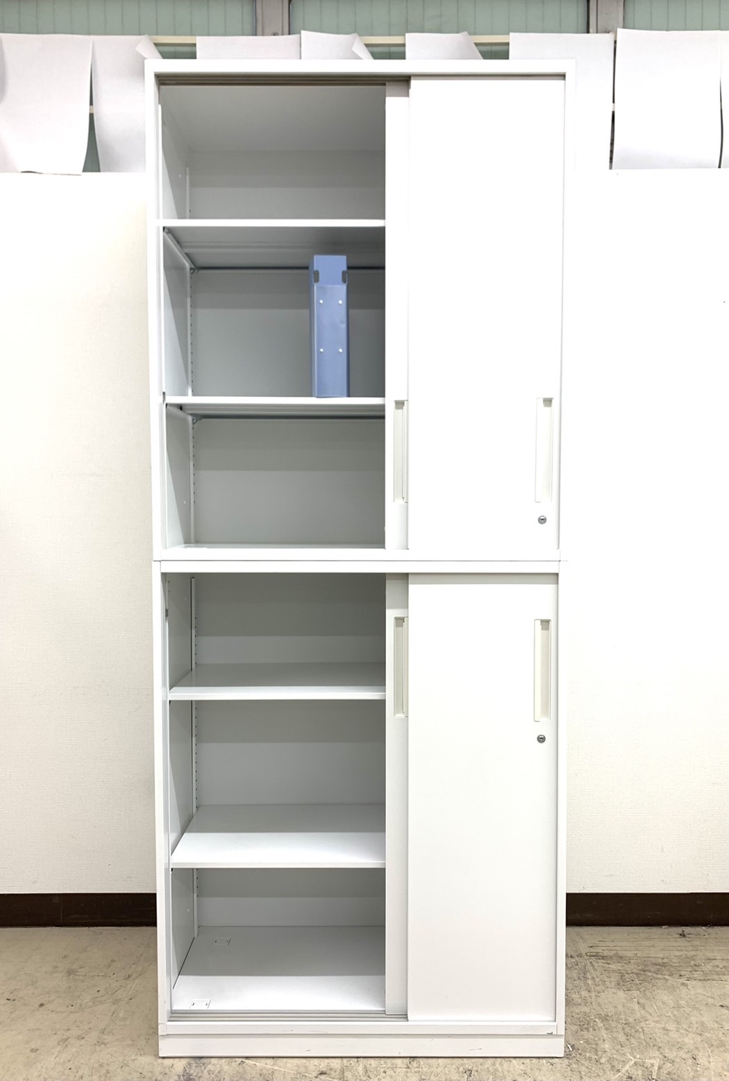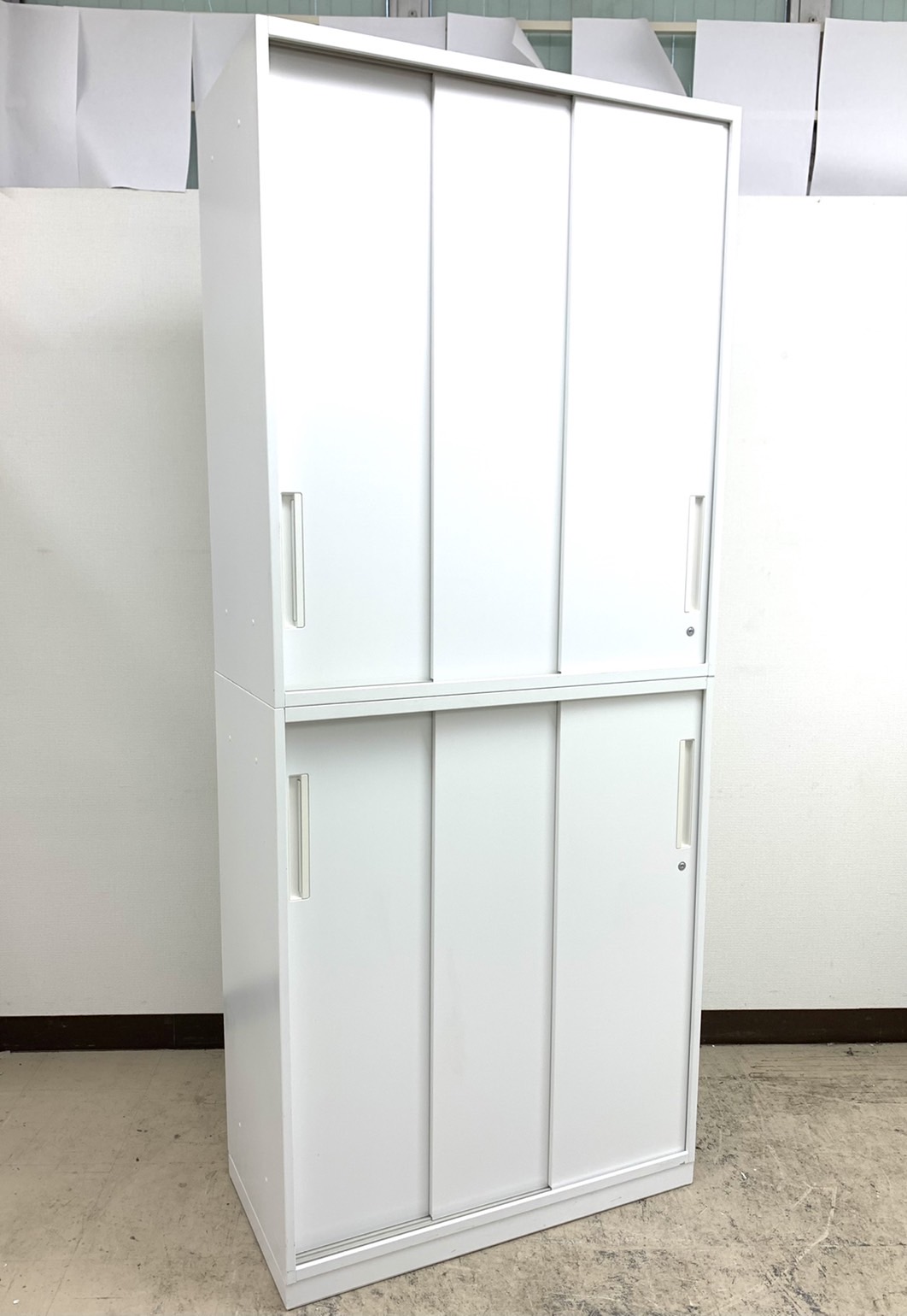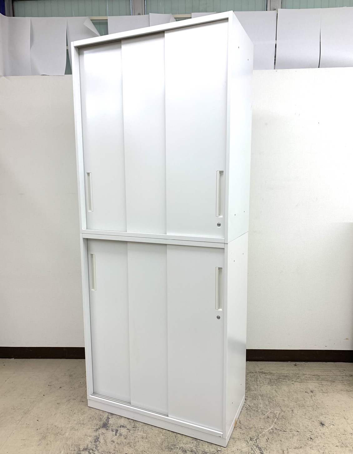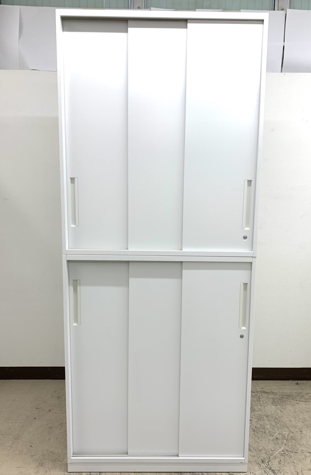 【1セット限定】【下の書庫に傷あり】【開閉時に場所を取らない引き違い戸の書庫セット!】■ウチダ製 HSシリーズ 引き違い+引き違い ハイキャビネット 2枚引き戸 ■ホワイト ■シリンダー錠 オフィスバスターズ 梅田本店【未】