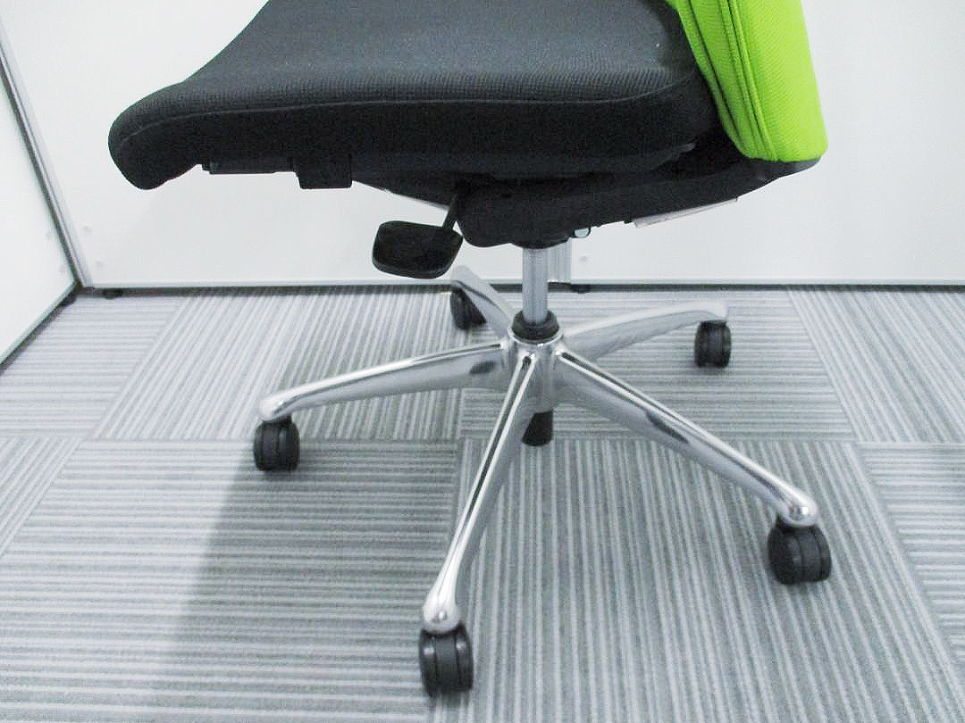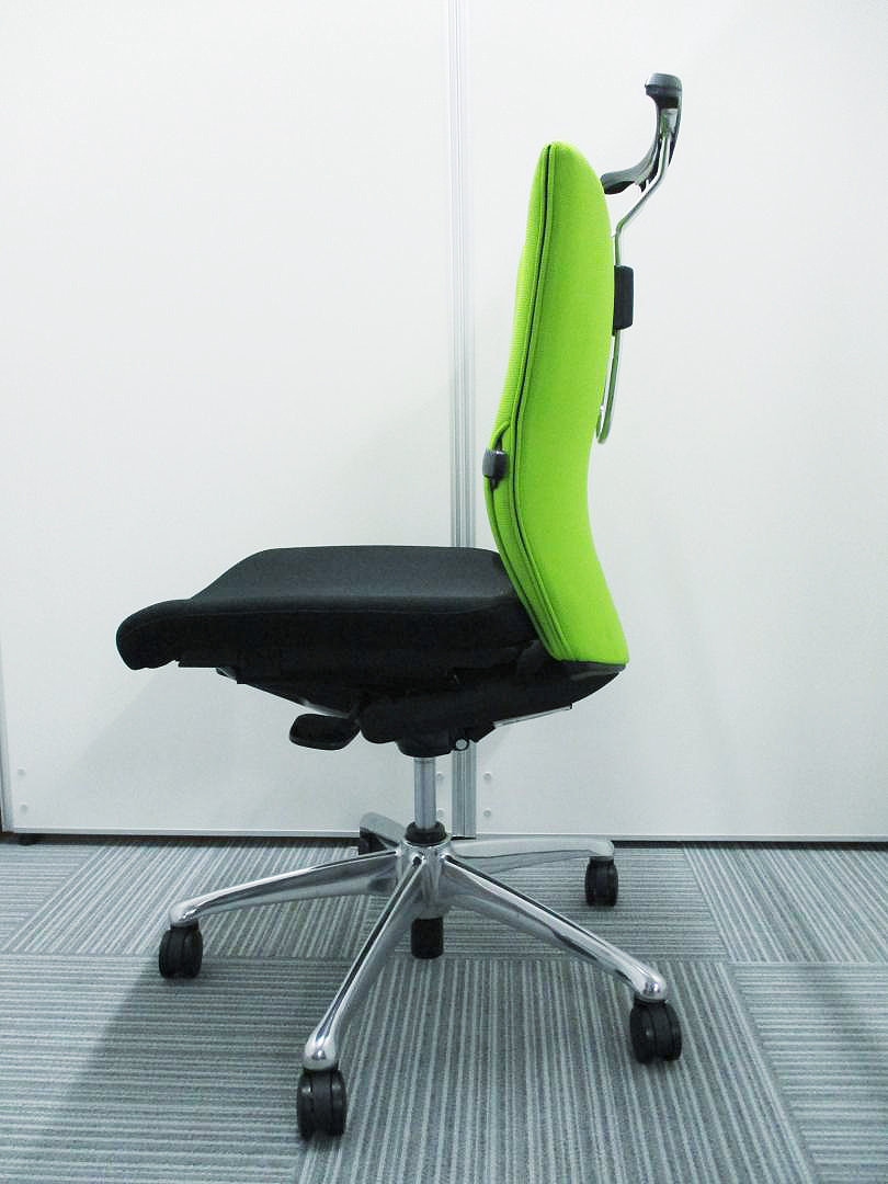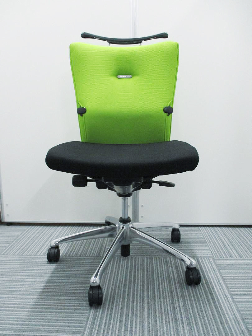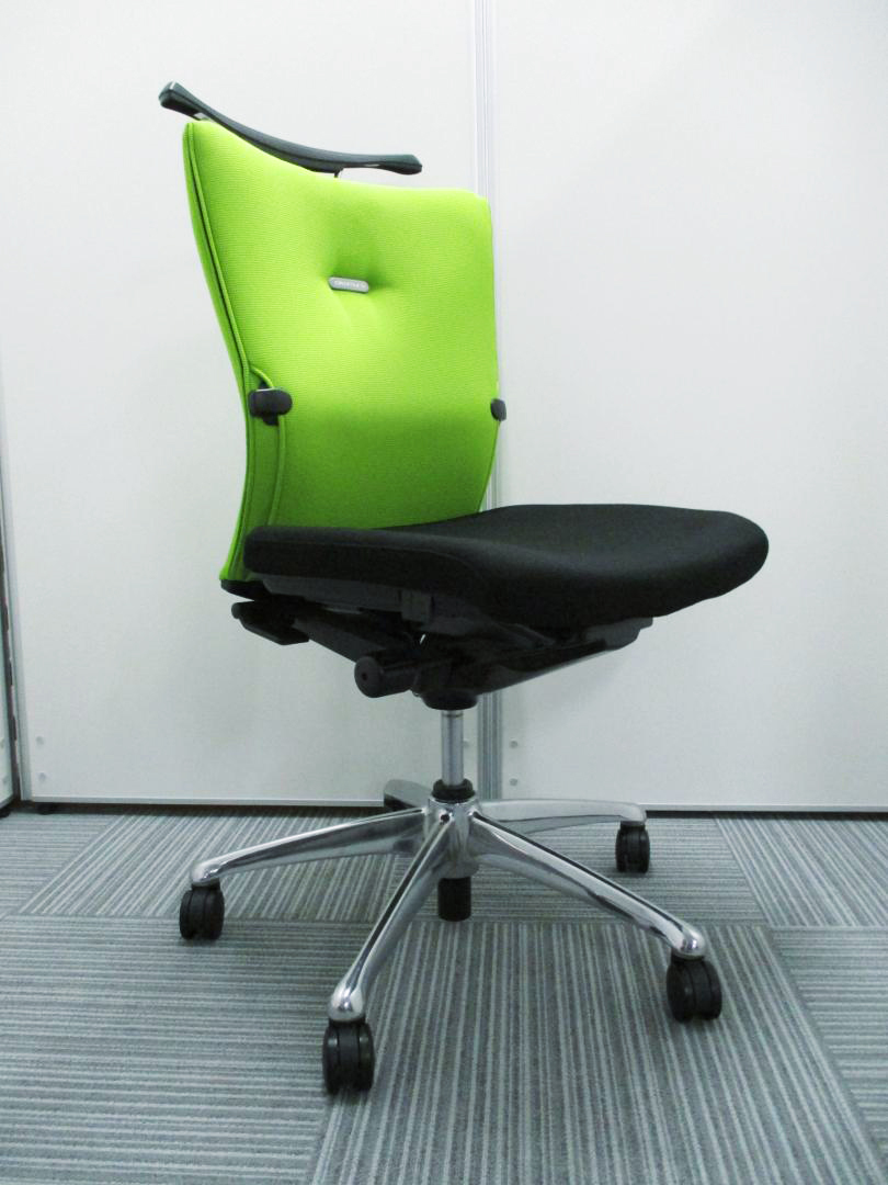 オカムラ製 フィーゴ シームレスタイプ ブラック×ライトグリーン【機能とデザインを兼ね備えたチェア】肘外し