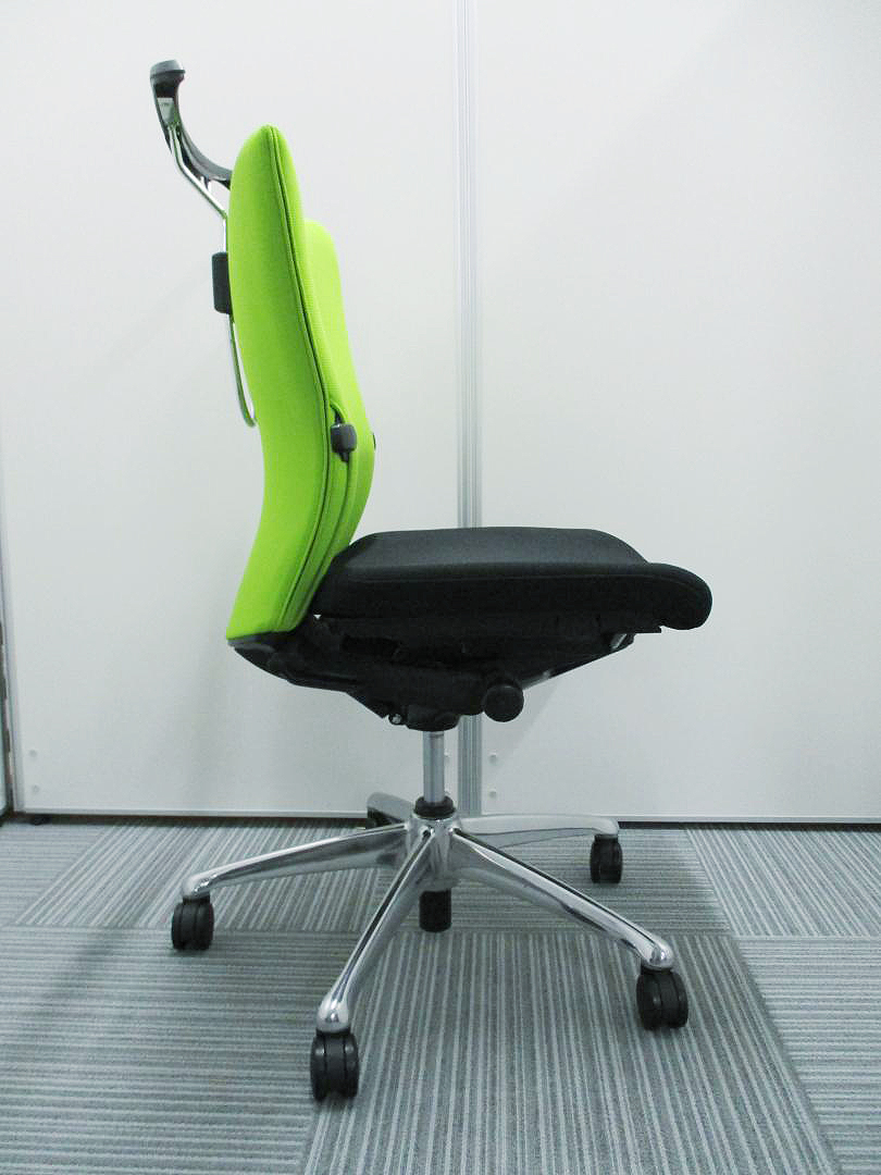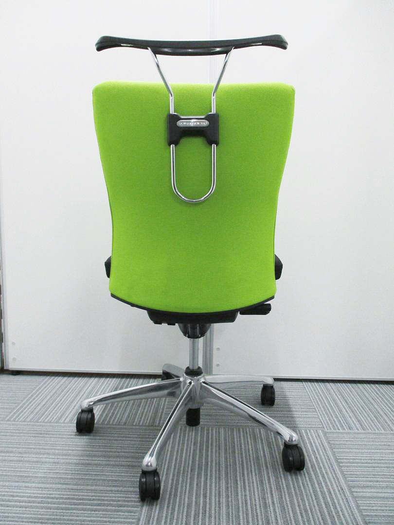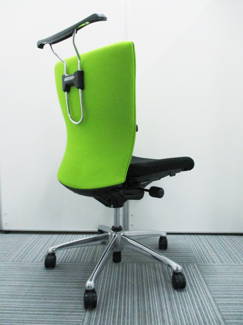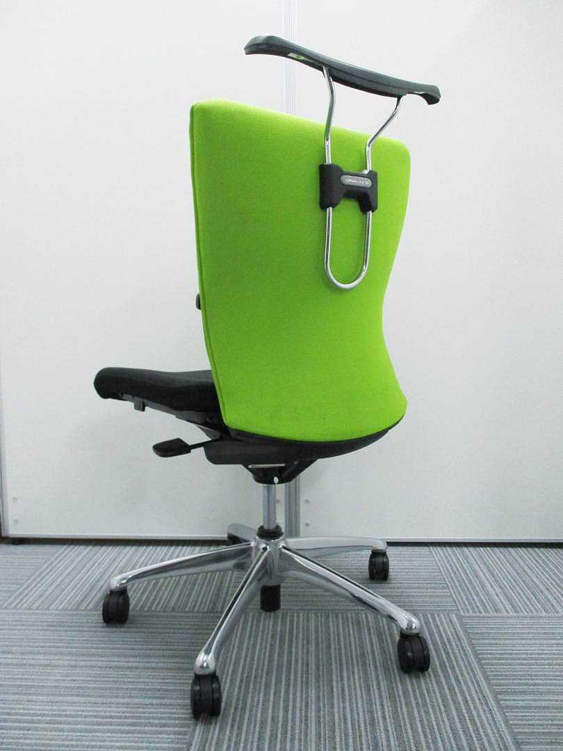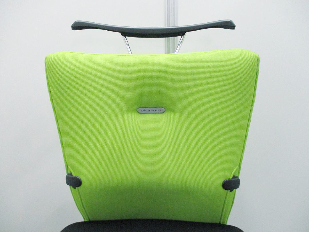 【KS】【ワンランク上の快適!】■オカムラ製 フィーゴチェア ライムグリーン ■サイドファスナータイプ ランバーサポート付 ハンガー付【おつとめ品】松サーキュラーバリューCO2削減量の算出について