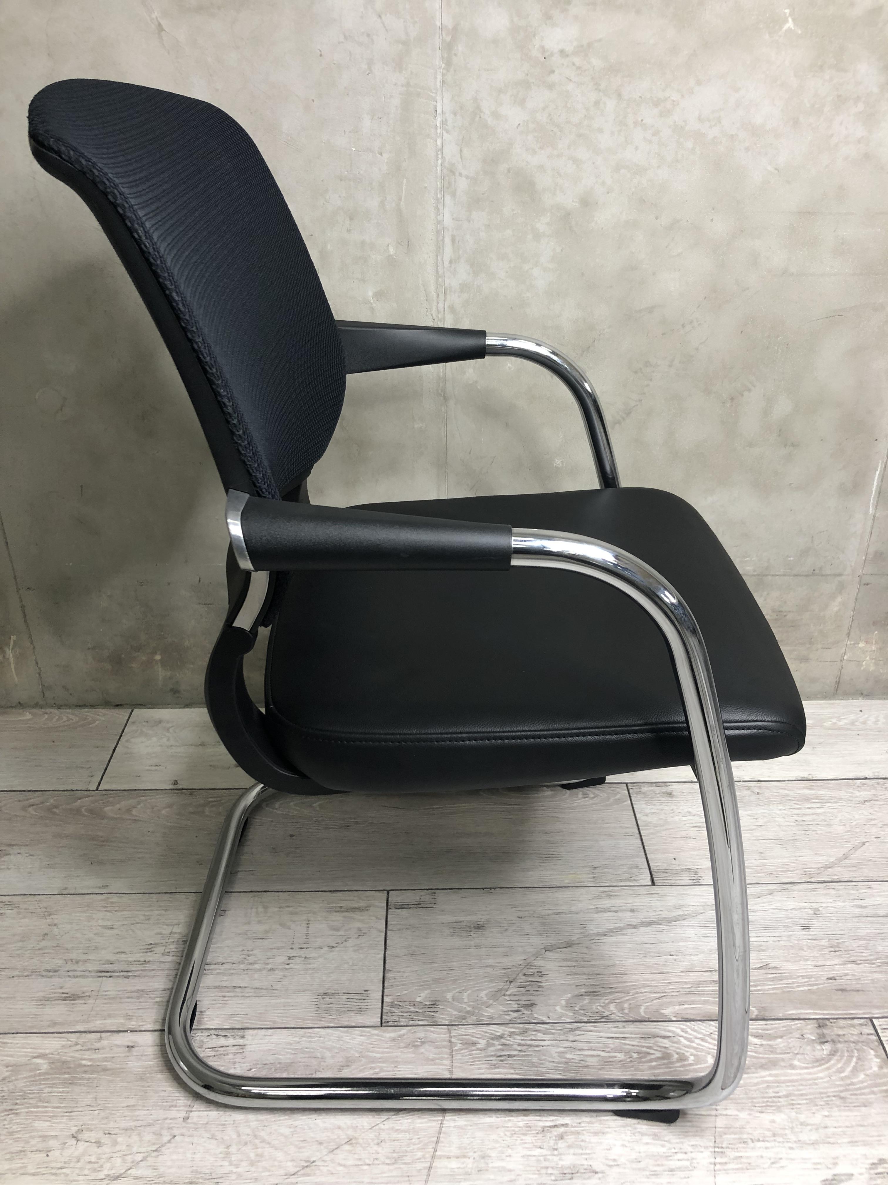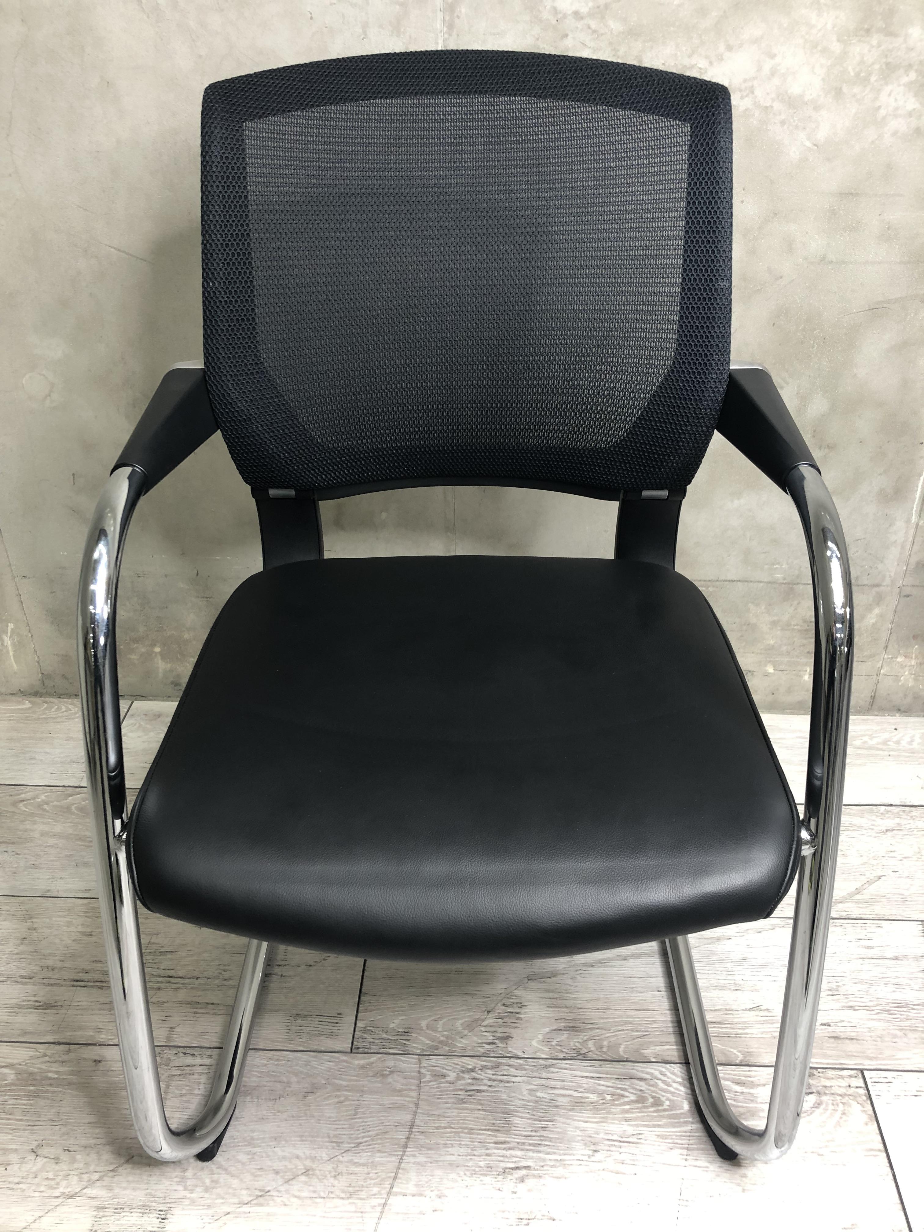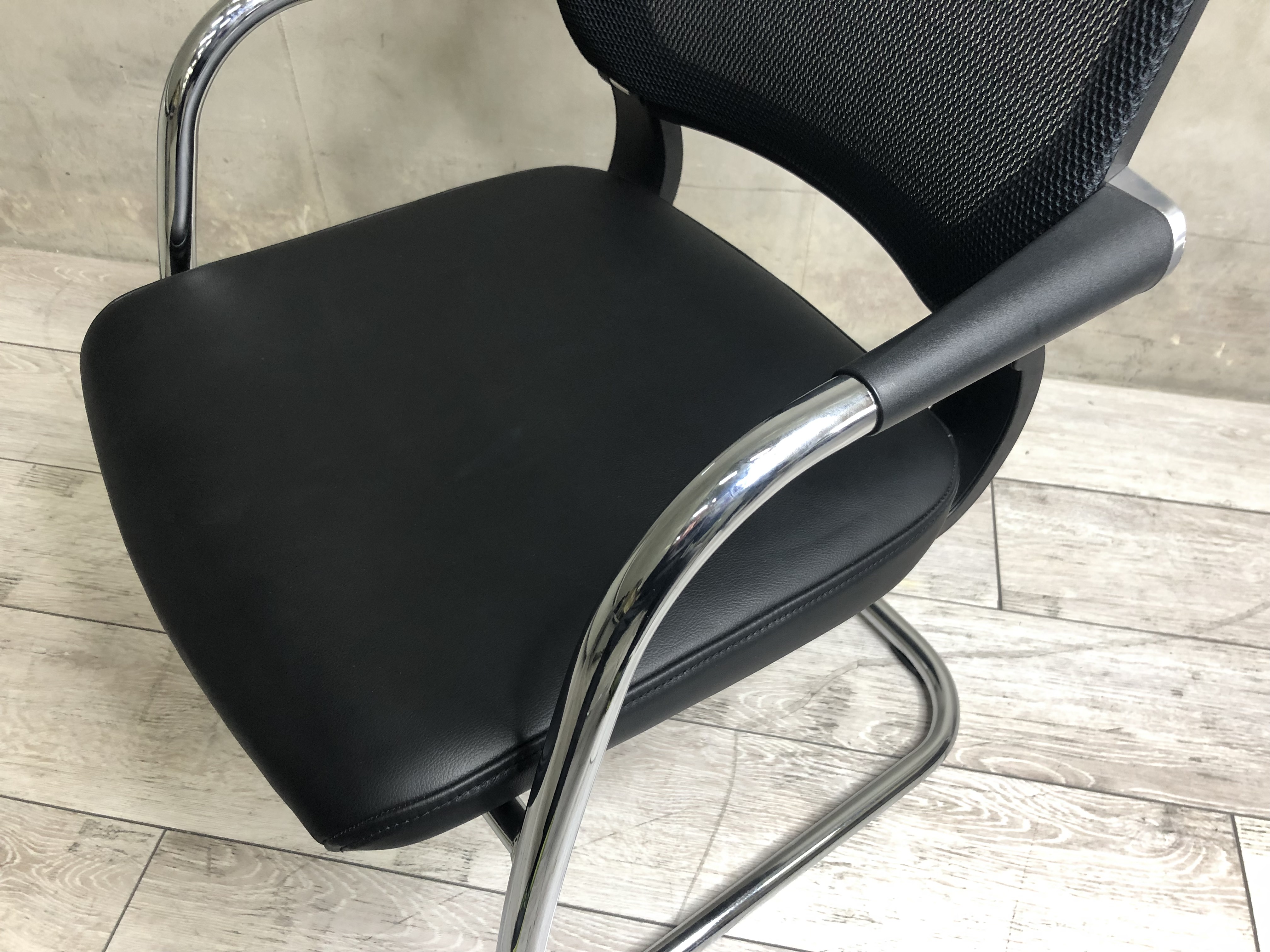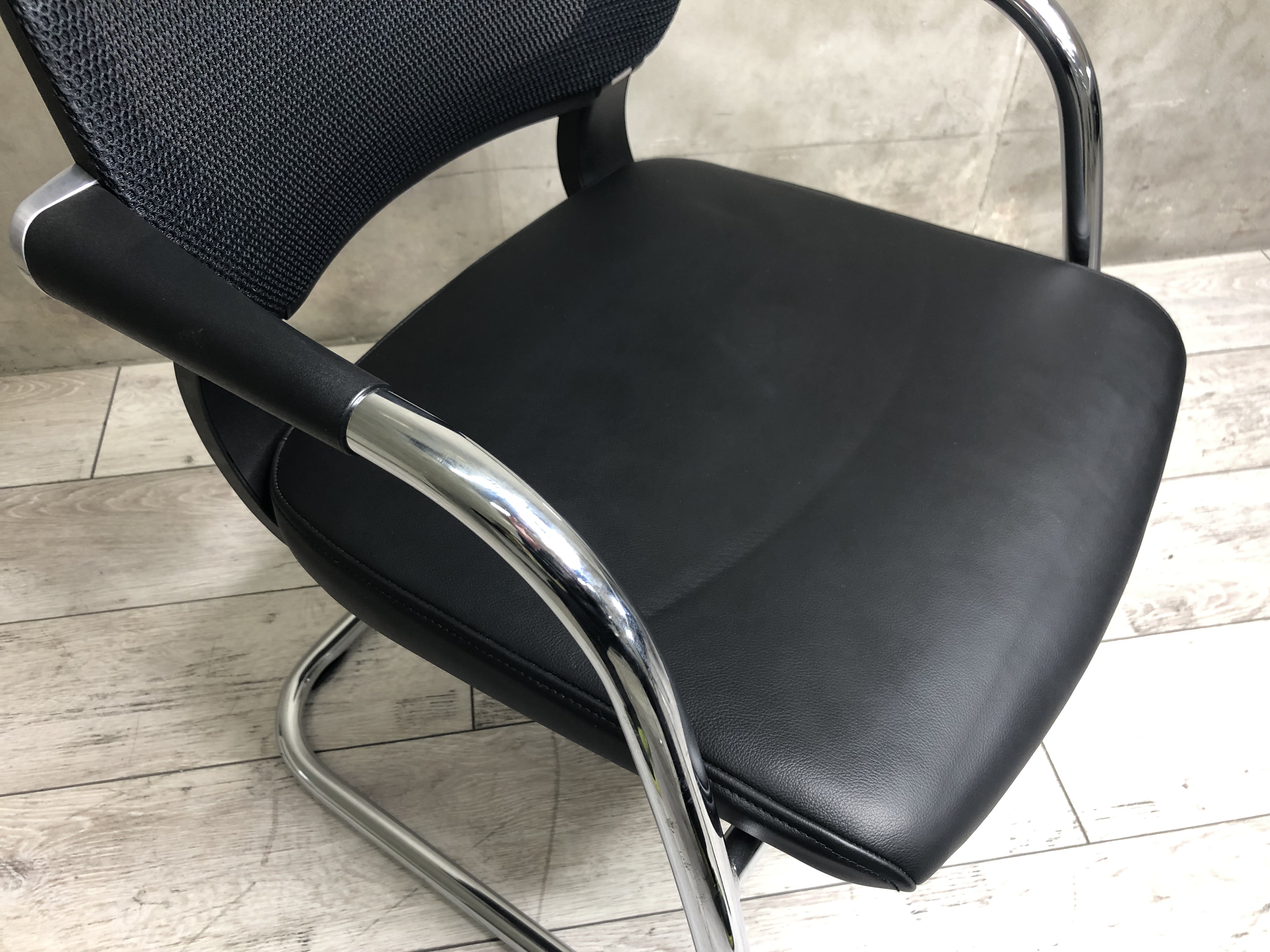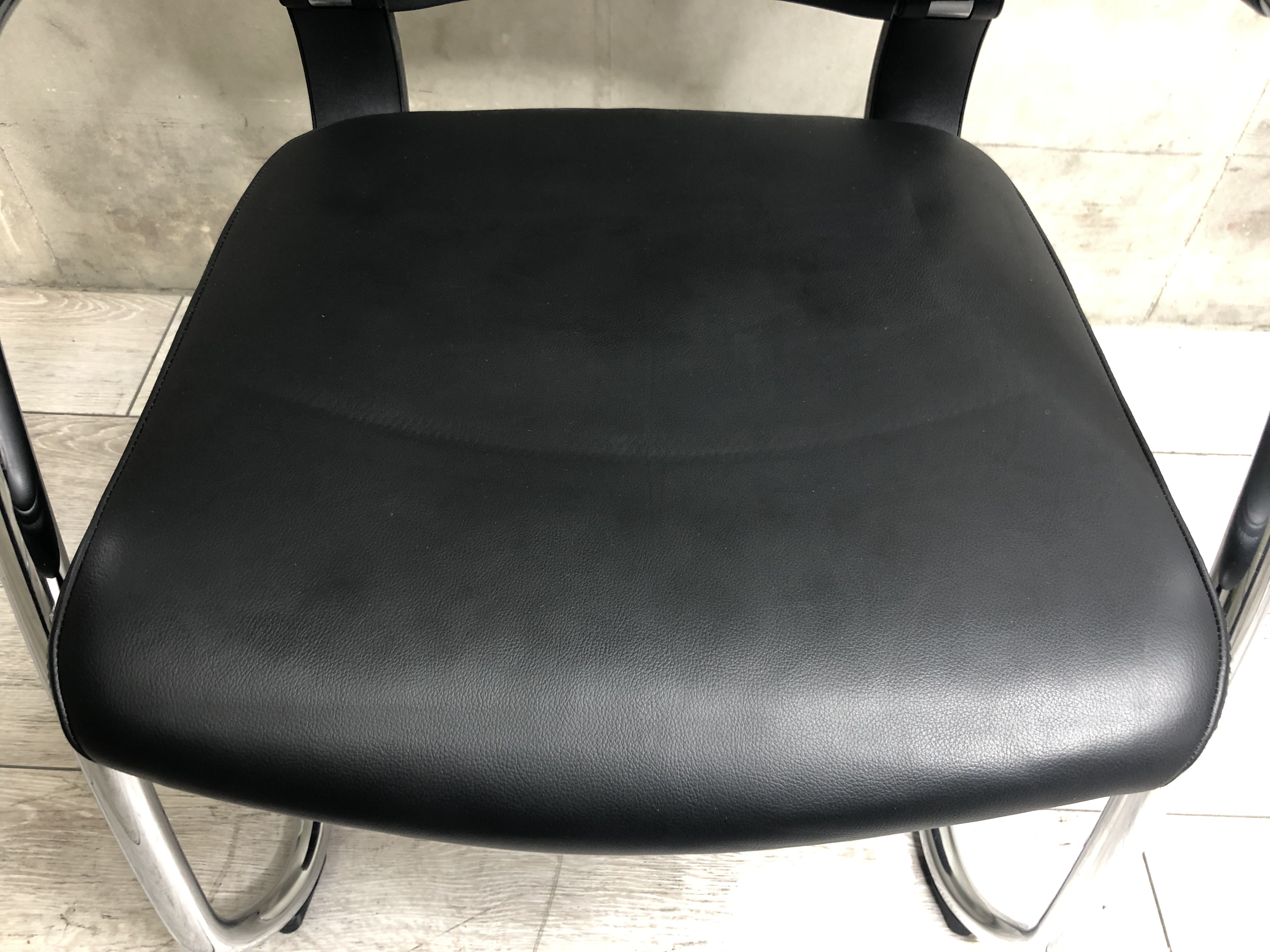 【関東倉庫在庫品】コクヨ製・『サテリテ』ミーティングチェア入荷!!高級感のあるデザインに座面はレザー生地使用。ブラックカラー基調の脚はメッキ仕様!来客用のチェアにオススメです!!弊社使用欄【A00866772】- 全店共通商品