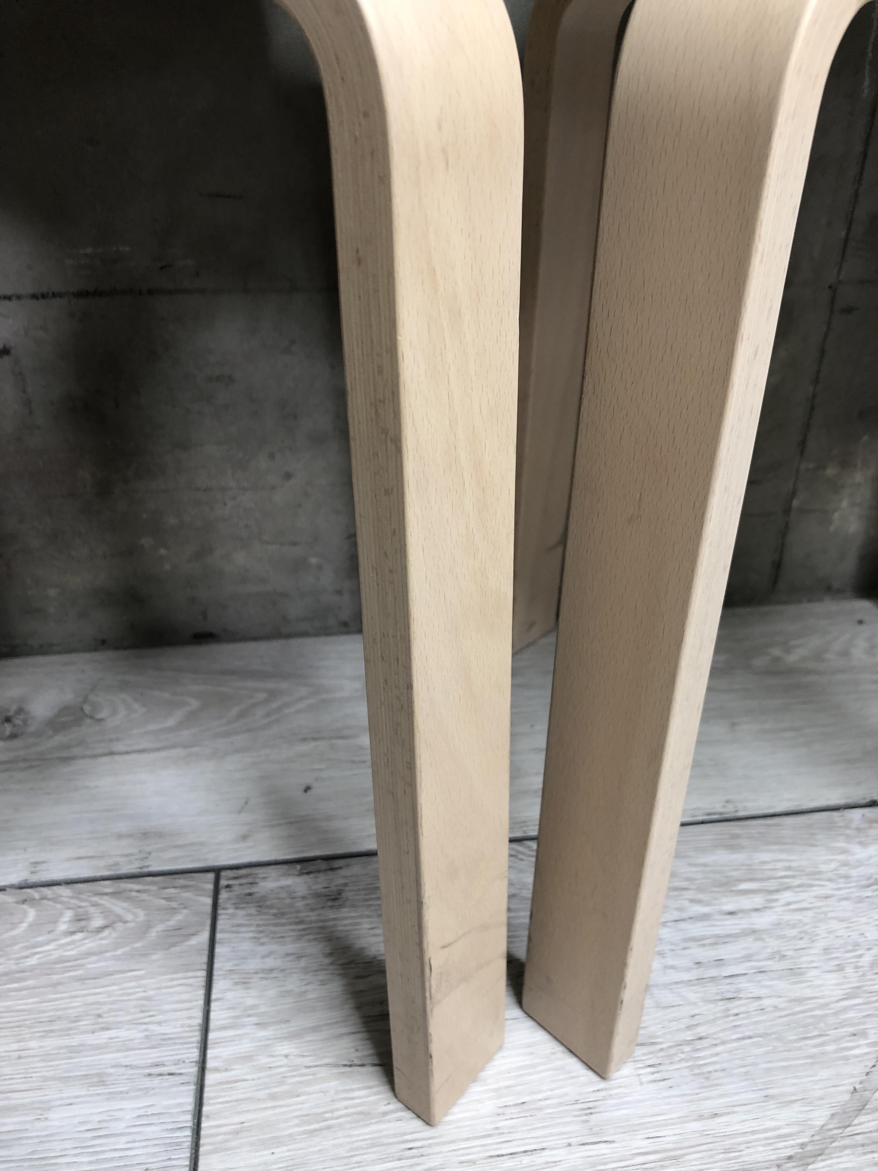 - かなり強い濃い黄ばみ・変色が商品全体にある。(例、座面・背もたれ、脚部等にある。)