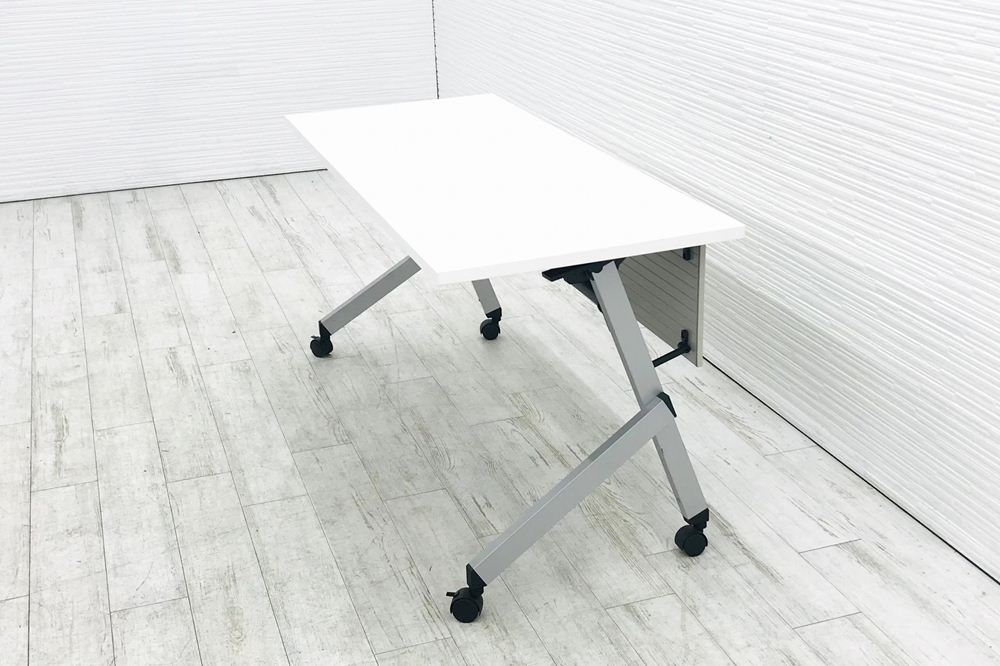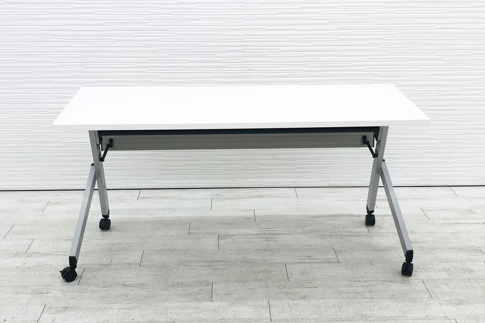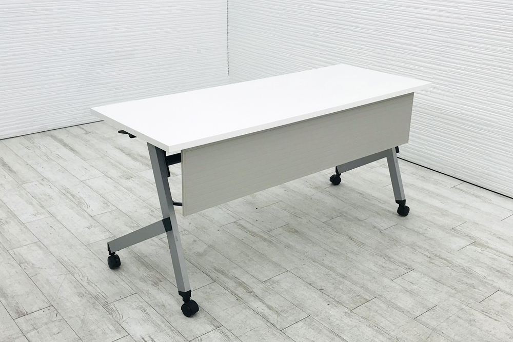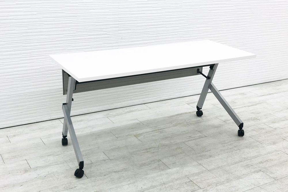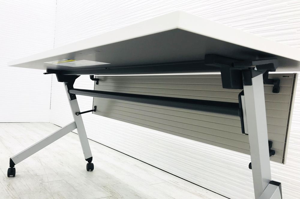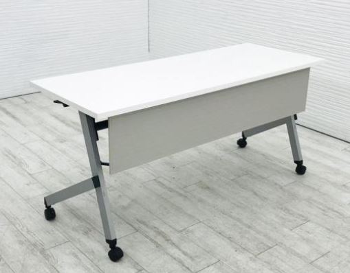 使い勝手抜群!天板を跳ね上げて収納ができるスタックテーブルが入荷!幕板付きで安心! ◆内田洋行/プラッテ(Platte)/ホワイト 横幅1500mm(奥行450mm)フラップテーブル