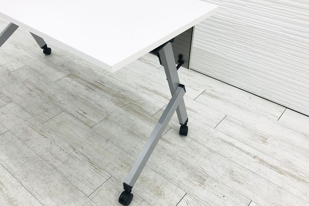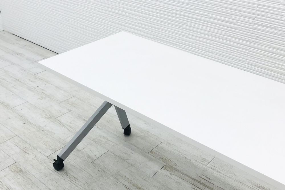 【折りたたみ収納が秀逸!スタイリッシュなデザインで高品質!】■ウチダ(UCHIDA)製 プラッテ(PLATTE)シリーズ サイドスタックテーブル W1500×D450㎜ ■キャスター付 ■ホワイト