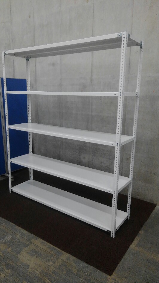 コクヨのホワイト色の中古ラックが1台入荷しました! 注1)呼称W1500/D450 実寸W1515/D465 注2)画像は幅1800ですが、実物は幅1500となりますので、ご注意下さい。 天地5段 耐荷重:段/100kg 上下六角ボルト式 ※マテハン本舗の中古商品は、千葉県柏市に在庫がございます。- マテハン本舗