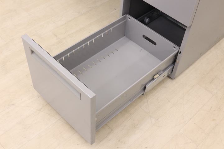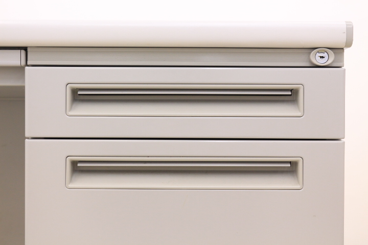- シンプルながらも使いやすい工夫があります。ロックは、一度の施錠ですべての引出しの鍵がかかるオールロック機構。